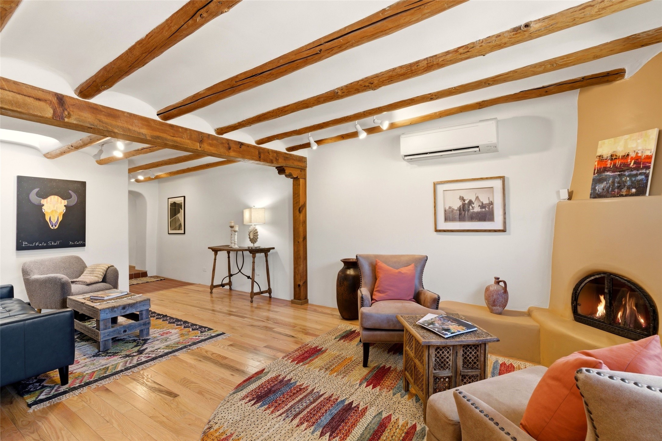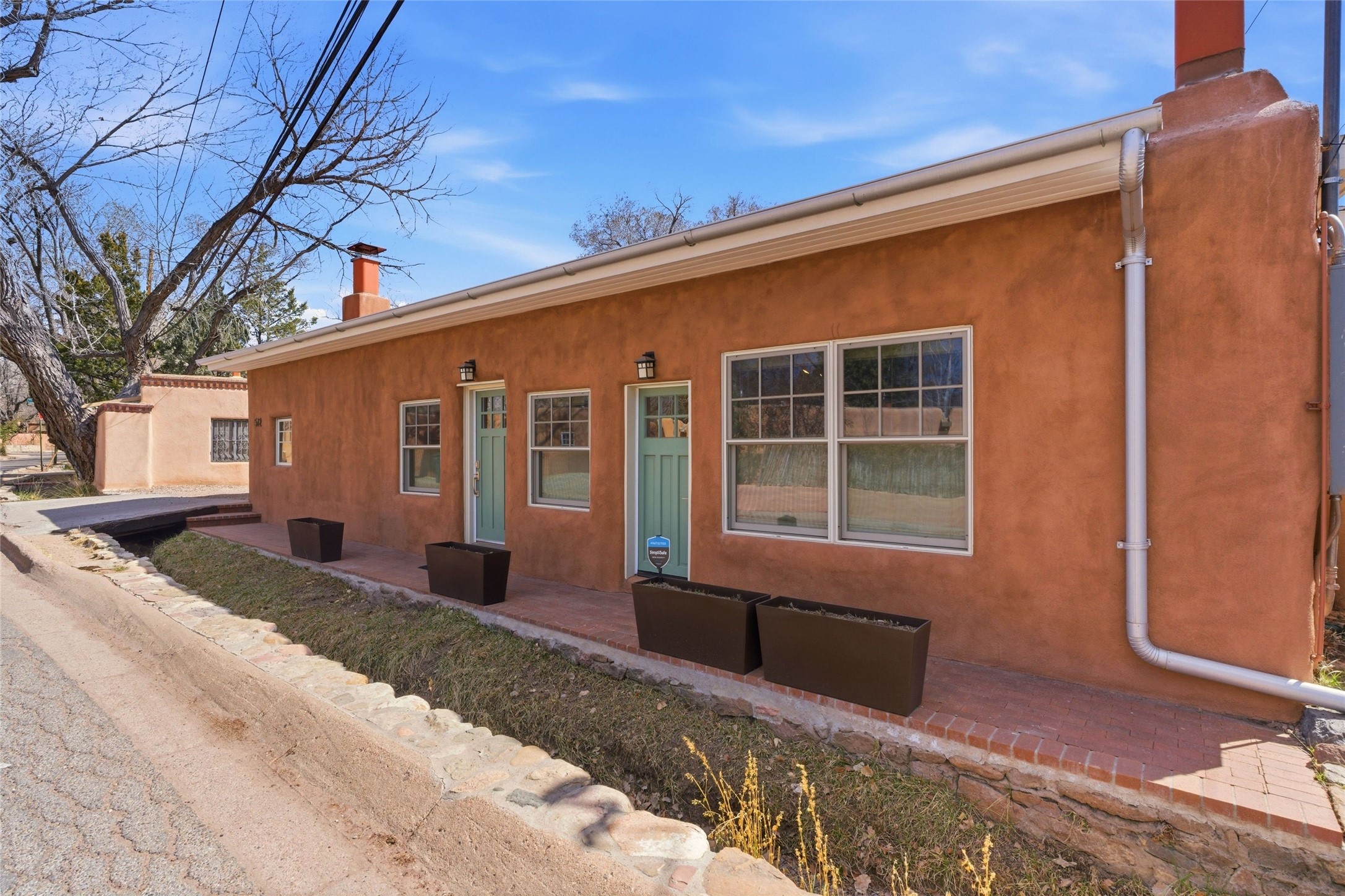 Put down your roots in the center of the historic Eastside of Santa Fe, where orchards once flourished and old-growth trees still dapple the sunlight. Cross over the famed Acequia Madre (Mother Irrigation Ditch), to a living history flowing past your residence, and walk only one block to restaurants and the world-renowned Canyon Road and the 80+ galleries. This charming adobe residence traces its roots to 1717 and was once a beloved general store that was a hub of the community. The property has been fully reimagined for modern living with an elegant fusion of heritage architecture and contemporary design. Extensively renovated and completed in 2023, the property boasts 2 bedrooms on the main level and 2 additional bedroom suites on the upper levels. The property is comprised of 2 condominiums that have been thoughtfully connected to live as a single residence. An easy modification to a single wall is all that would be needed to return the property to 2 separate residences. The property also includes a single vehicle garage. For the buyer who wants the charm and convenience of the historic Eastside and the benefits of a recently renovated property, this special property has it all. Unit A is approximately 2,000 sq. ft and Unit B is approximately 1,545 sq. ft.