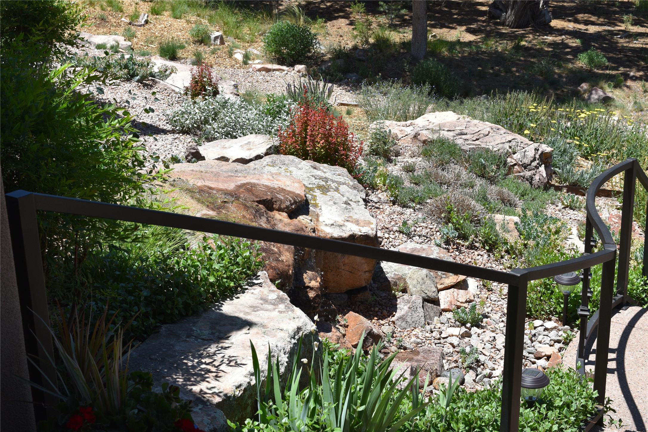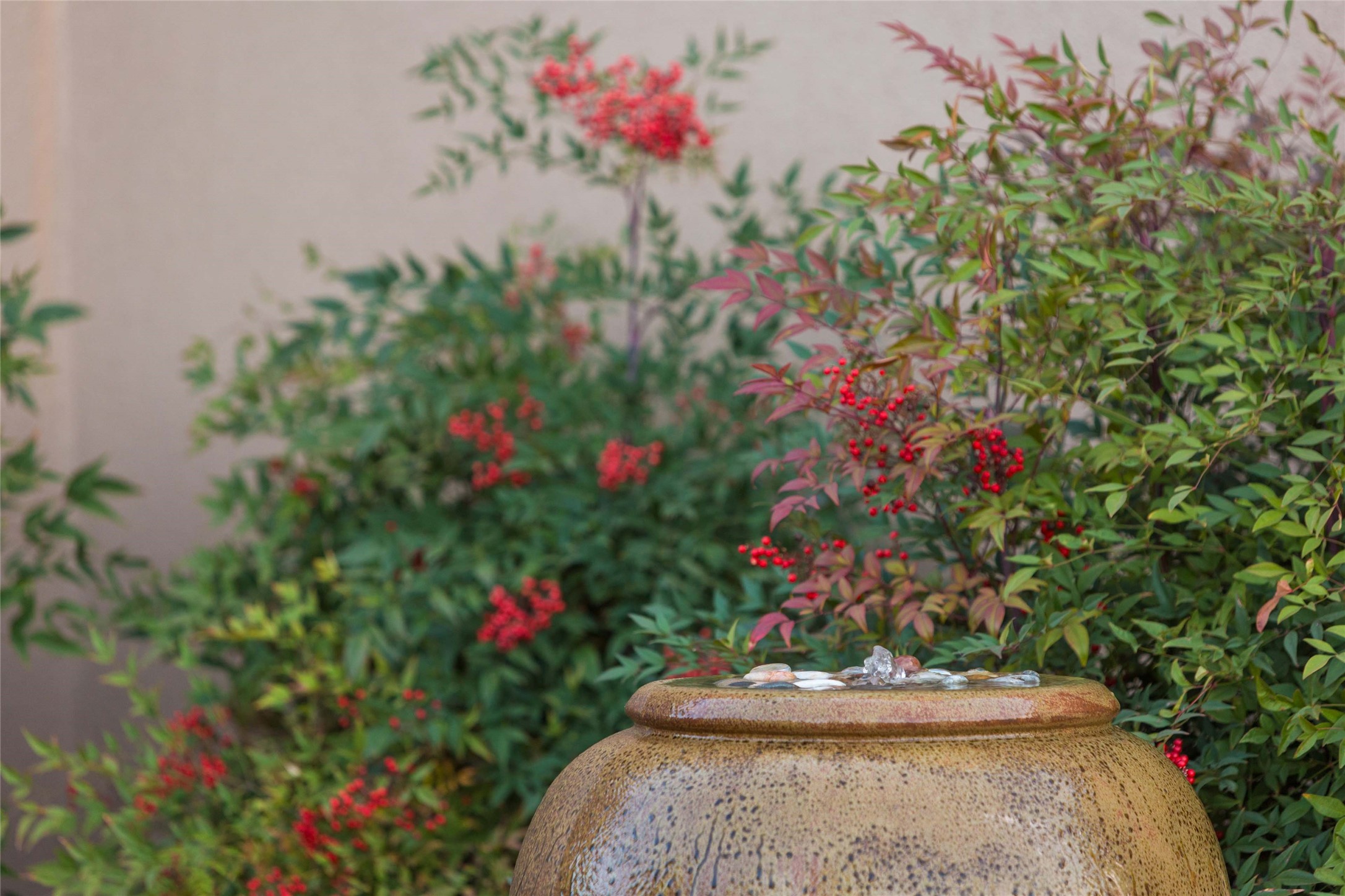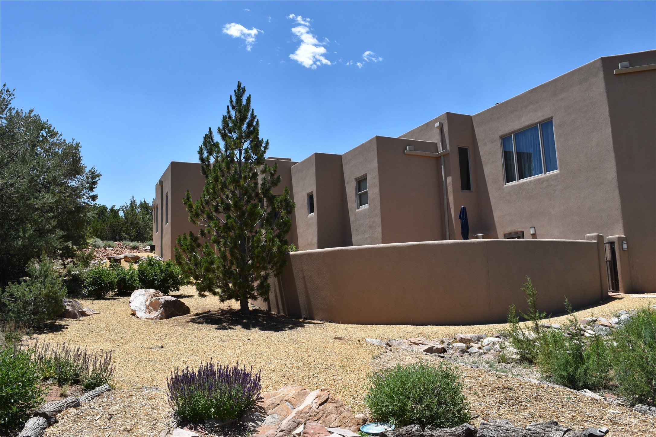 OPEN HOUSE 3-15 from 2-4pm. The outside and the inside meet in this superb warm Contemporary design. Wood, stone and glass elements and views from every room. Custom Harwell home; nestled in Paa-Ko with breathtaking Sandia and Placer Mountain views. Soaring ceilings with elegant wood beams, striking travertine accent walls, a multi-sided gas fireplace, and hand-scraped cherry hardwood floors. The gourmet kitchen boasts custom knotty alder cabinetry, and Wolf & Subzero pro-style appliances. Elegant dining room flanked by a fireplace one one side and large windows on the other is an inviting space and is separated from the kitchen by a convenient wet bar. Plush primary suite, in its own wing for ultimate privacy, offers a coffee bar, gas fireplace, sitting rm,spa-like bath, and private balcony. A gorgeous library features custom wood floor-to-ceiling shelving makes an excellent office. Two additional bedrooms on the opposite side of the home with a large full bath between. Enchanting outdoor spaces include a covered patio, courtyard, nature trail, and water features. Oversized 3-car garage. Owned Solar. The Paa-Ko community features a renowned golf course and a golf club with beautifully situated restaurant overlooking the course with the pond and mountains in the background. Additionally, there is a community pool, tennis courts and clubhouse. All of these amenities are within walking distance of the home. Living in this home is truly living New Mexico.