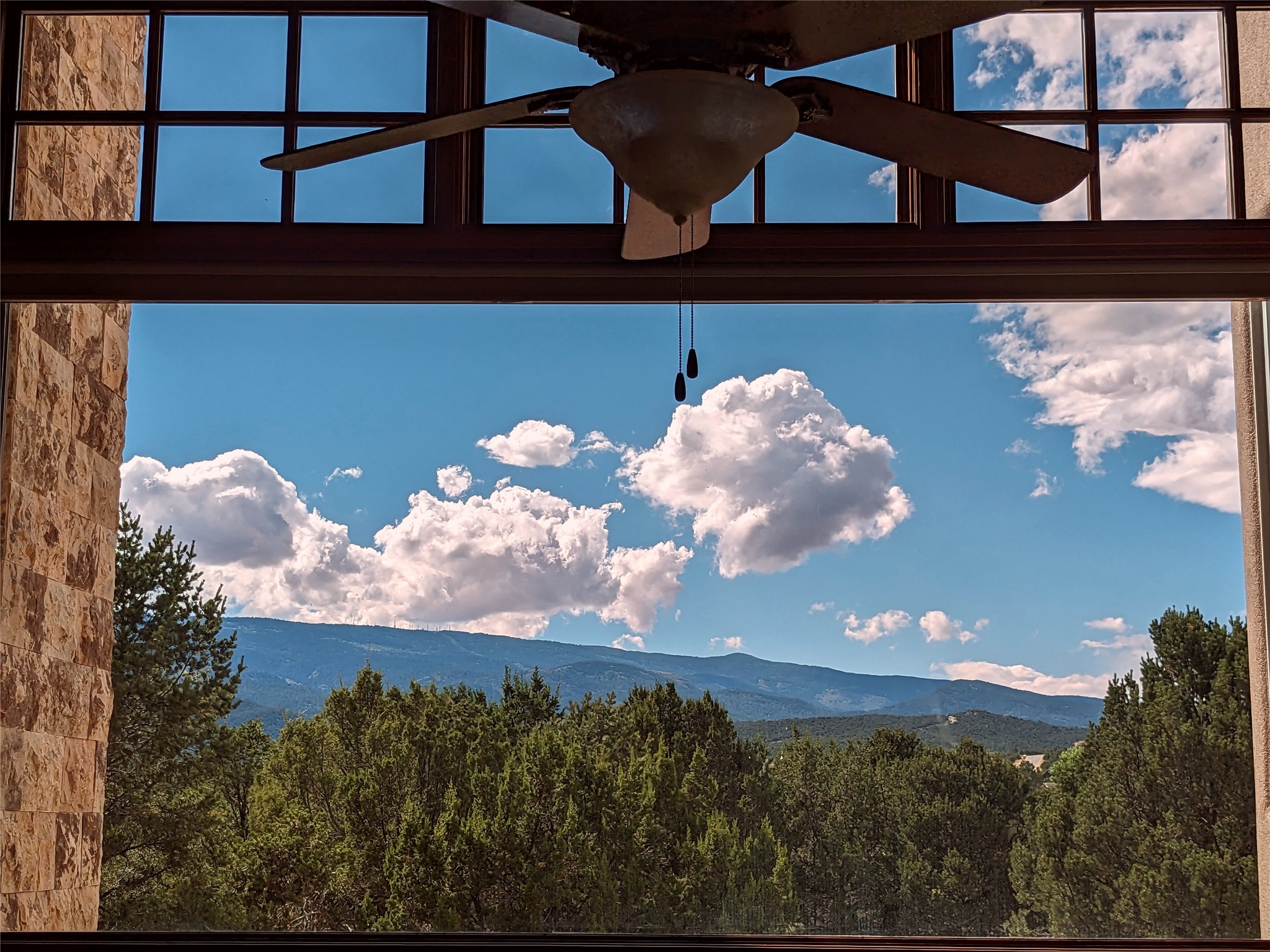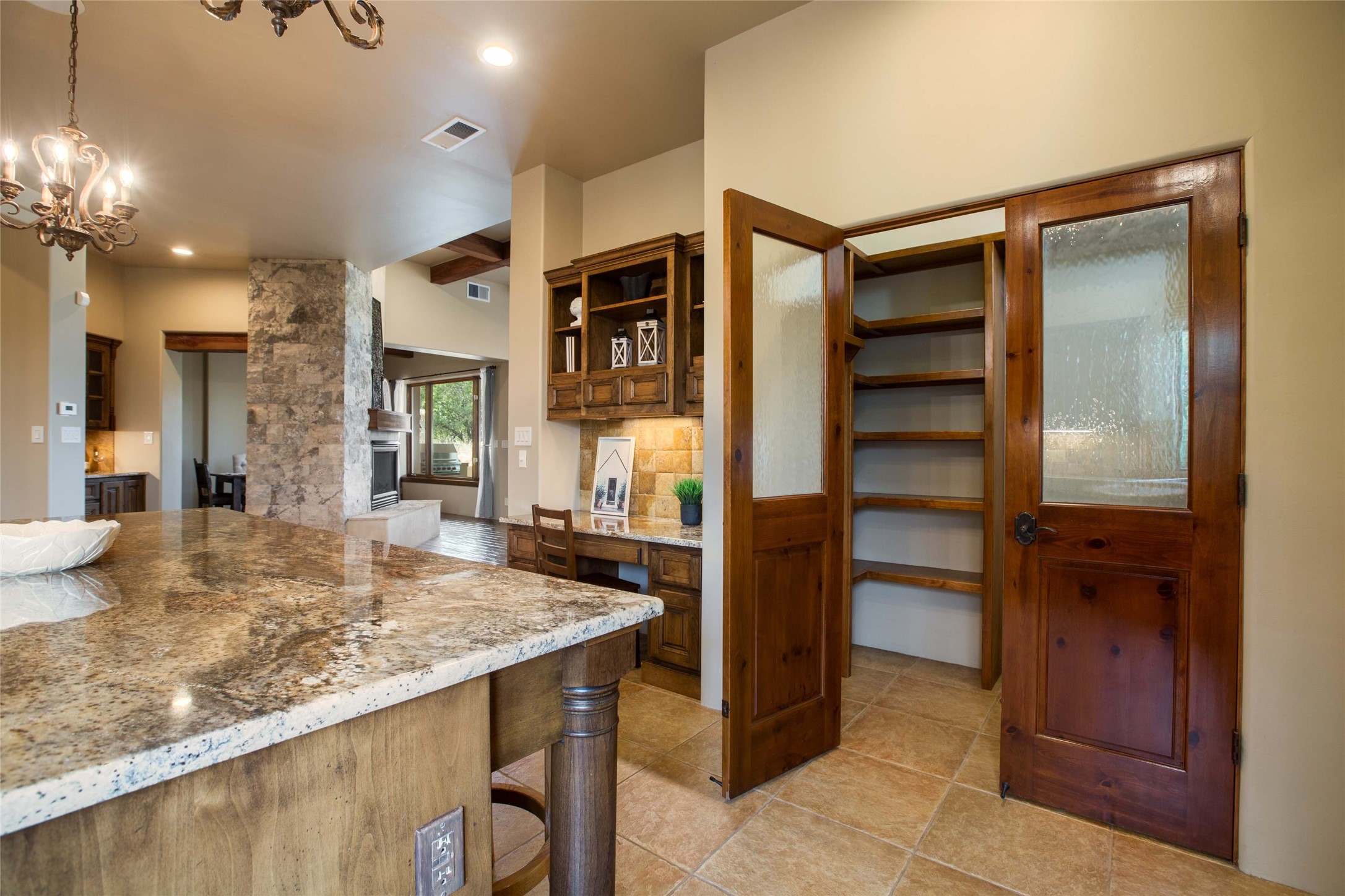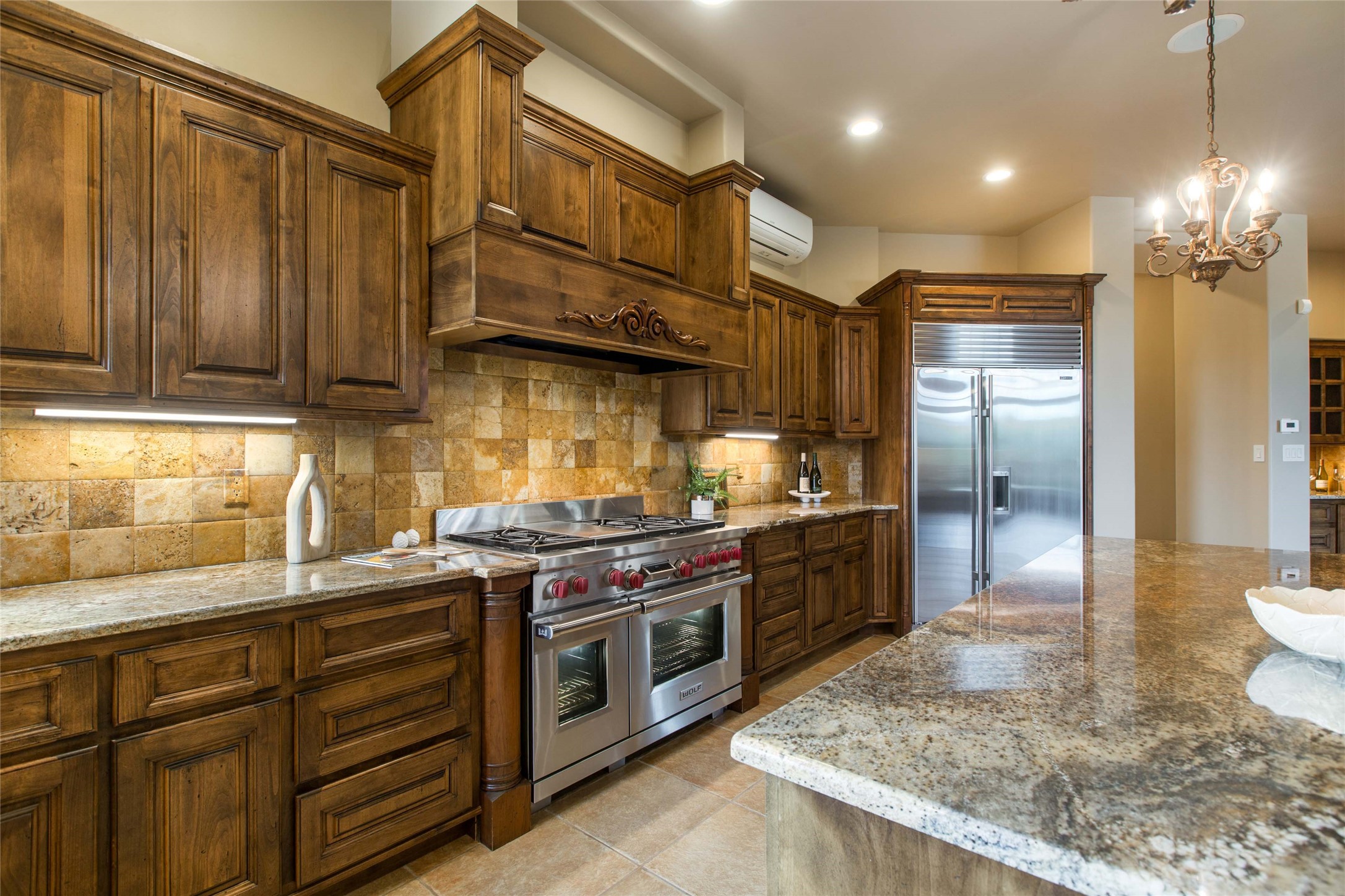 OPEN HOUSE 3-15 from 2-4pm. The outside and the inside meet in this superb warm Contemporary design. Wood, stone and glass elements and views from every room. Custom Harwell home; nestled in Paa-Ko with breathtaking Sandia and Placer Mountain views. Soaring ceilings with elegant wood beams, striking travertine accent walls, a multi-sided gas fireplace, and hand-scraped cherry hardwood floors. The gourmet kitchen boasts custom knotty alder cabinetry, and Wolf & Subzero pro-style appliances. Elegant dining room flanked by a fireplace one one side and large windows on the other is an inviting space and is separated from the kitchen by a convenient wet bar. Plush primary suite, in its own wing for ultimate privacy, offers a coffee bar, gas fireplace, sitting rm,spa-like bath, and private balcony. A gorgeous library features custom wood floor-to-ceiling shelving makes an excellent office. Two additional bedrooms on the opposite side of the home with a large full bath between. Enchanting outdoor spaces include a covered patio, courtyard, nature trail, and water features. Oversized 3-car garage. Owned Solar. The Paa-Ko community features a renowned golf course and a golf club with beautifully situated restaurant overlooking the course with the pond and mountains in the background. Additionally, there is a community pool, tennis courts and clubhouse. All of these amenities are within walking distance of the home. Living in this home is truly living New Mexico.