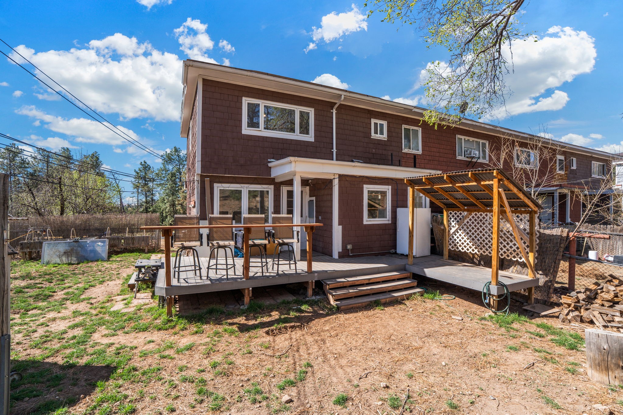 Located on a quiet cul-de-sac in Los Alamos, this end-unit quad offers a convenient location close to many local amenities. The home is situated approximately 2 miles from the LANL badge office and about 1 mile from the Los Alamos Golf Course, with Little Forest Playschool nearby.The property features a spacious fenced yard with fruit trees, providing outdoor space for gardening, relaxing, or entertaining. Inside, the kitchen has been expanded and updated, creating a more open and functional space. A half bath has been added off the kitchen, and the upstairs bathroom has been updated. The property also includes two off-street parking spaces. A great opportunity to enjoy comfortable living in a convenient Los Alamos location.