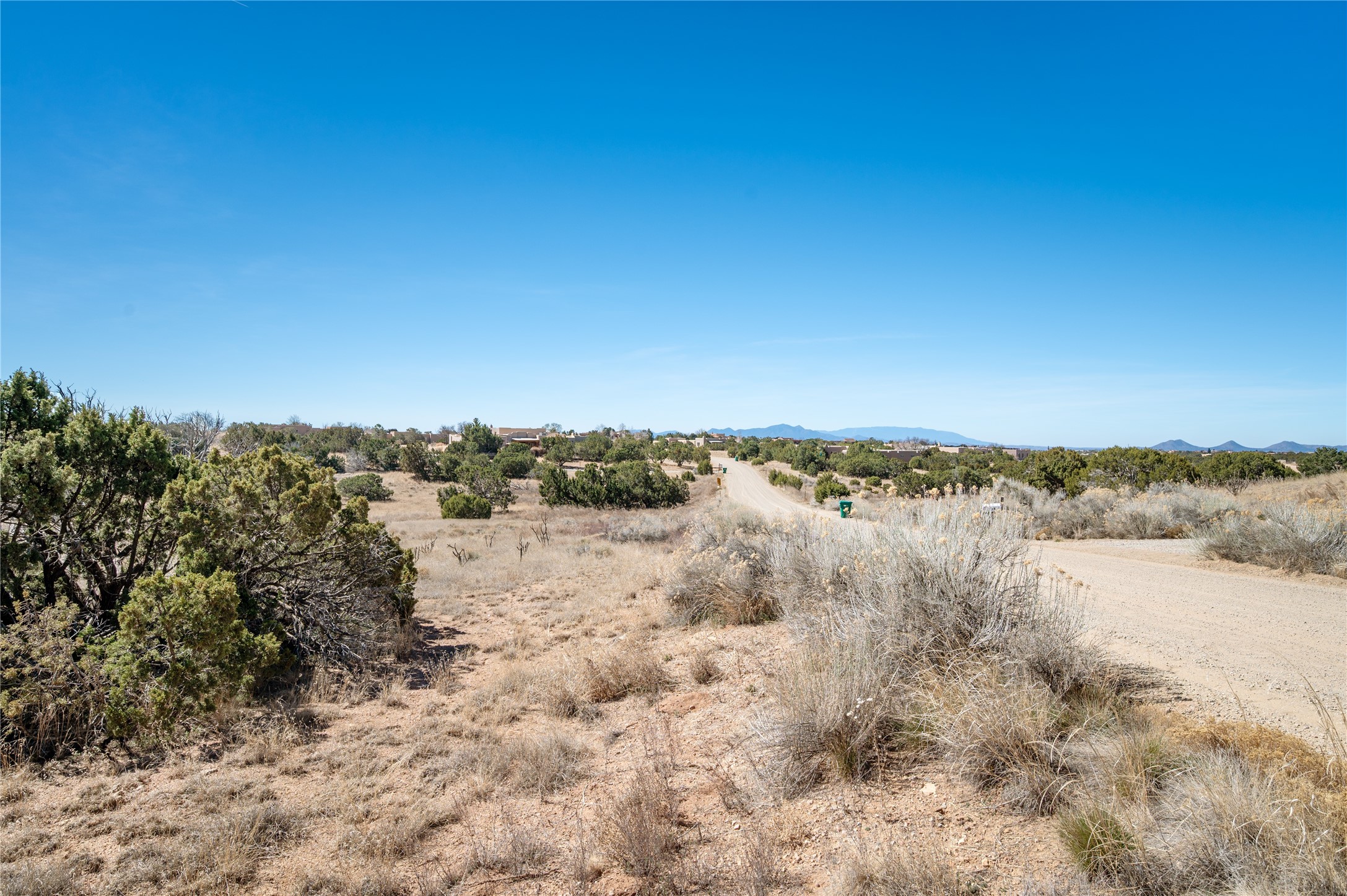 Southwestern mountain views and beautiful sunsets from this 1.22 acres on a dead end road. Stroll the adjoining green belt from the custom home you decide to build in this beloved community. There are few quality lots at this affordable price. Take advantage while you can. Seller will consider short term financing. Community water and natural gas available. The quaint and convenient Agora shopping center and La Tienda is a couple minutes away providing everything you need from soup to nuts. For small City excitement, Santa Fe is only 15 minutes away.