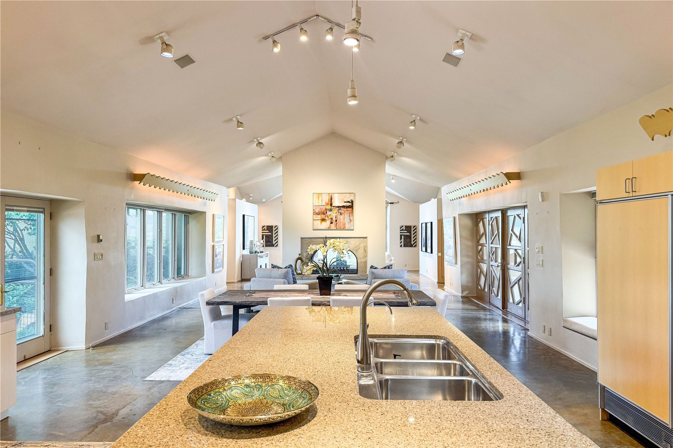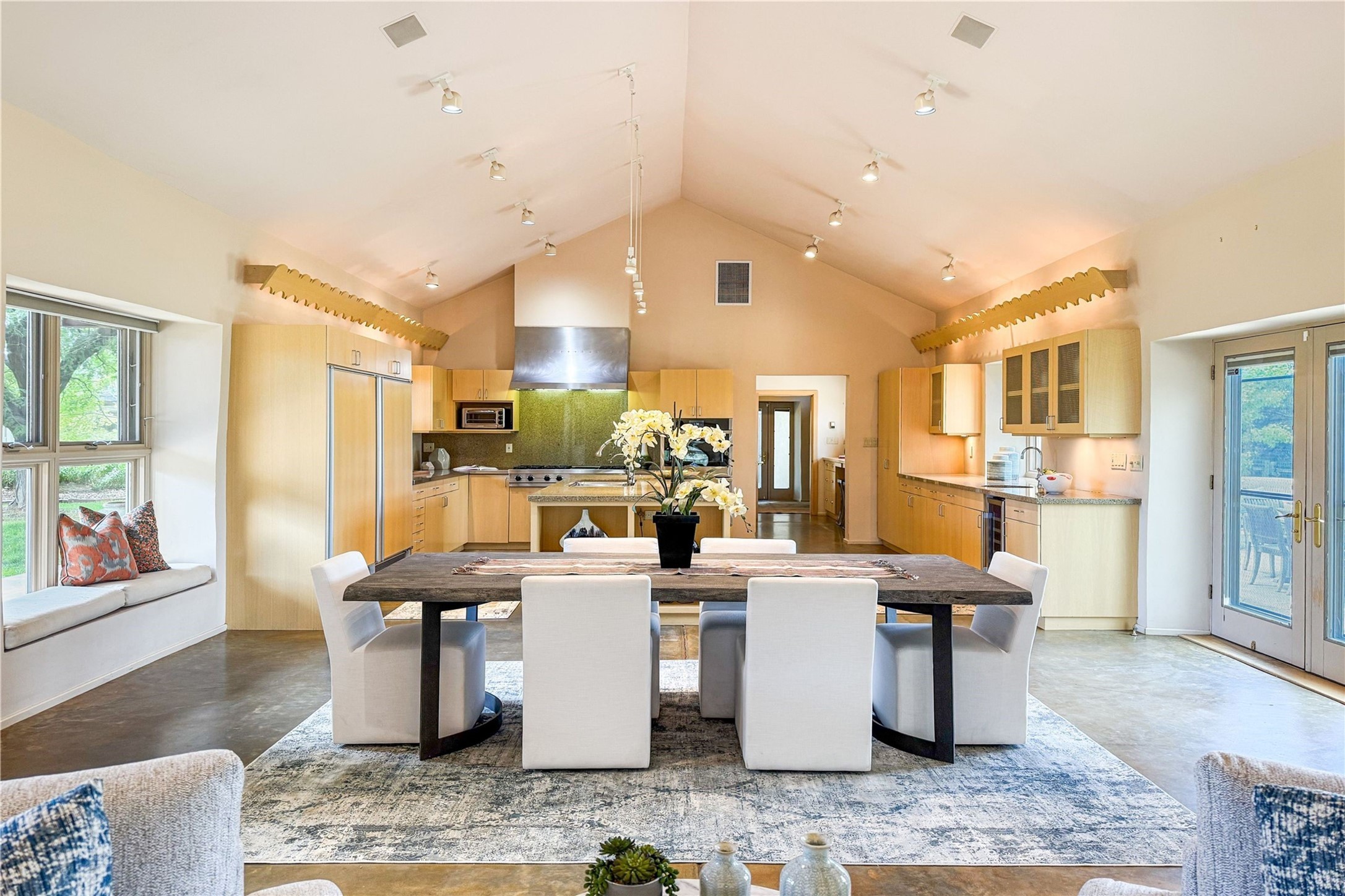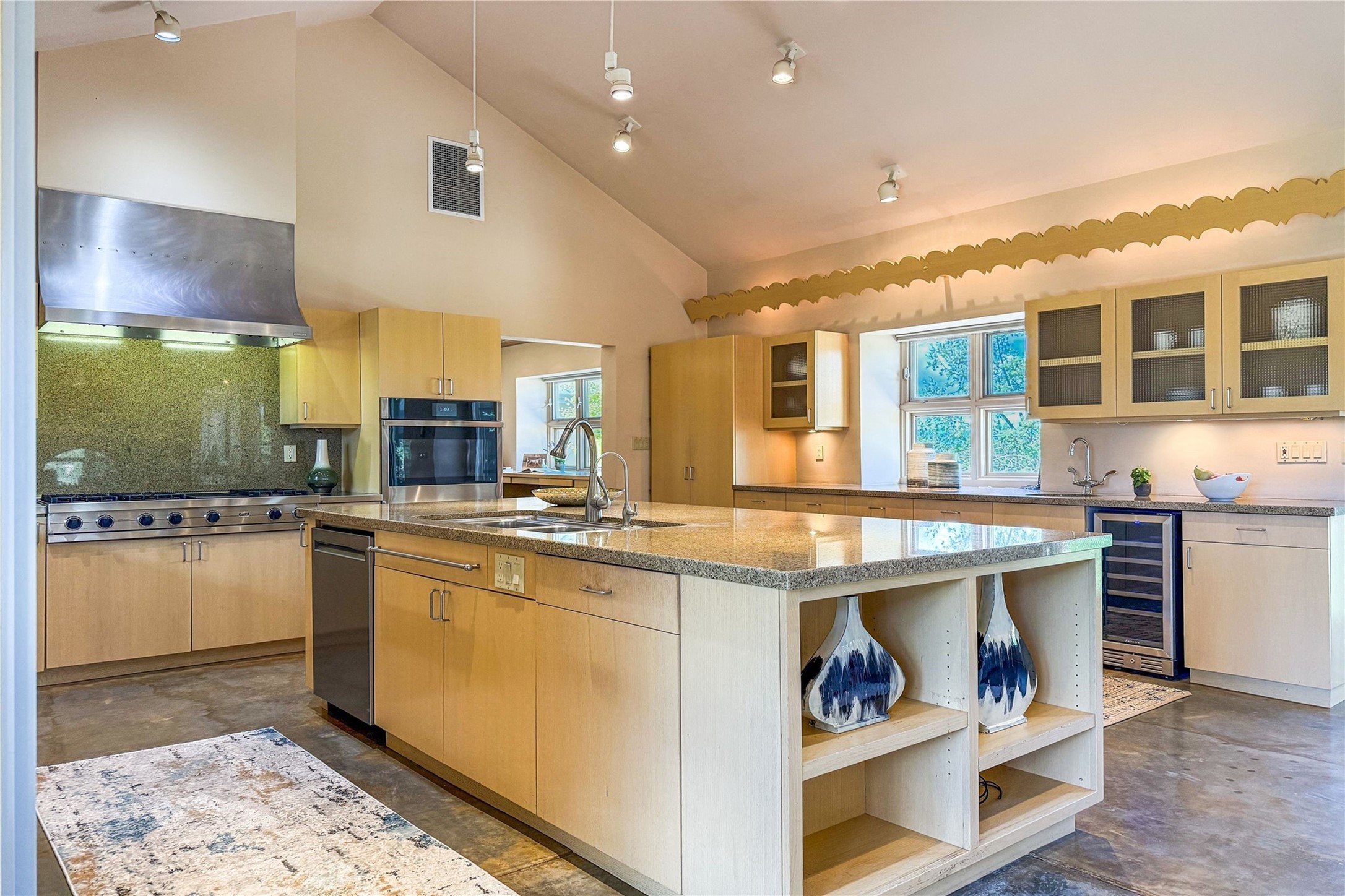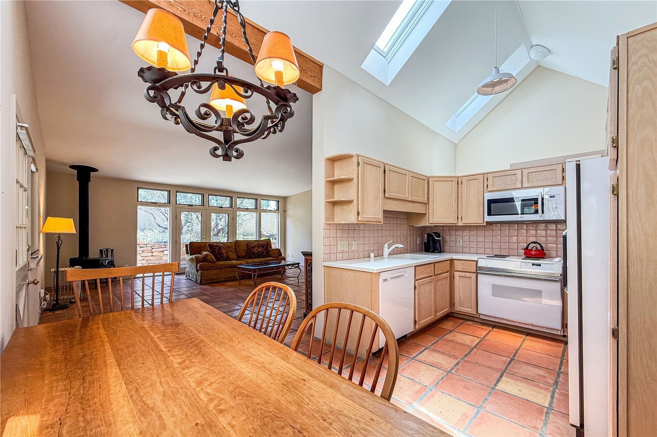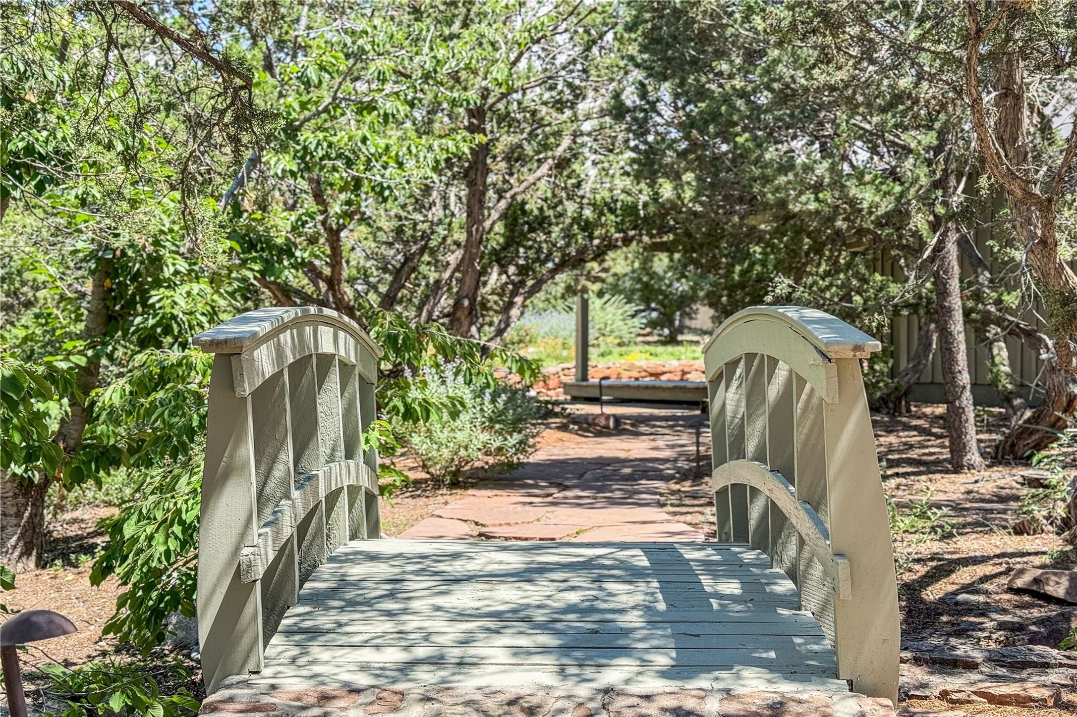 This serene La Tierra Nueva compound, with three distinct residences totaling 7,341 sq. feet of living space. Designed by renowned architect, Lila DeWindt, this lush oasis boasts mature landscaping in a serene, country-like setting with Sangre and Jemez mountain views, 11.85 acres, and vegetable and perennial gardens. The 3,982 sq. foot single level main residence features a blend of timeless Northern NM and modern design, a dramatic high-pitched roof, double-sided stone fireplace, copious natural light, and large windows that capture breathtaking Sangre views. With a casual sitting area open to the kitchen, a separate living room with a huge picture window facing the Sangres, a media room/library and bedrooms that also boast mountain views, this residence is truly stunning. The primary suite's tub overlooks a flower garden. An open-concept kitchen is centered around a large island, perfect for hosting. The home enjoys an expansive front portal and multiple patio spaces. The charming 1,334 sq. foot, two bedroom guest house includes a chef's kitchen, Saltillo tile flooring, a wood-burning stove, and wrap-around porch. The impressive 2,025 sq. foot modern 1-bedroom studio has an open living/dining/kitchen area, and portal. The adult rec-room, with built-in bar, is ideal as live/work space, artist studio/music room, car enthusiast or conversion to a barn, perfect for large gatherings and relaxing with sunset Jemez views. Beneath the studio, lays a remarkable walk-in wine cellar for approx. 5000 bottles with wine tasting area. The property also includes a generous fenced dog area and room for horses. A truly peaceful, secluded atmosphere just 18 minutes from the heart of Santa Fe or the airport, and 8 minutes to The Club at Las Campanas. La Tierra Nueva is a coveted, gated, equestrian-friendly community with access to over 60,000 acres BLM land, and tennis/pickleball court. Ideal for multigenerational living, wine lover, workshop, or patron of the arts. 7 Goodnight Trail West is a true hidden gem.