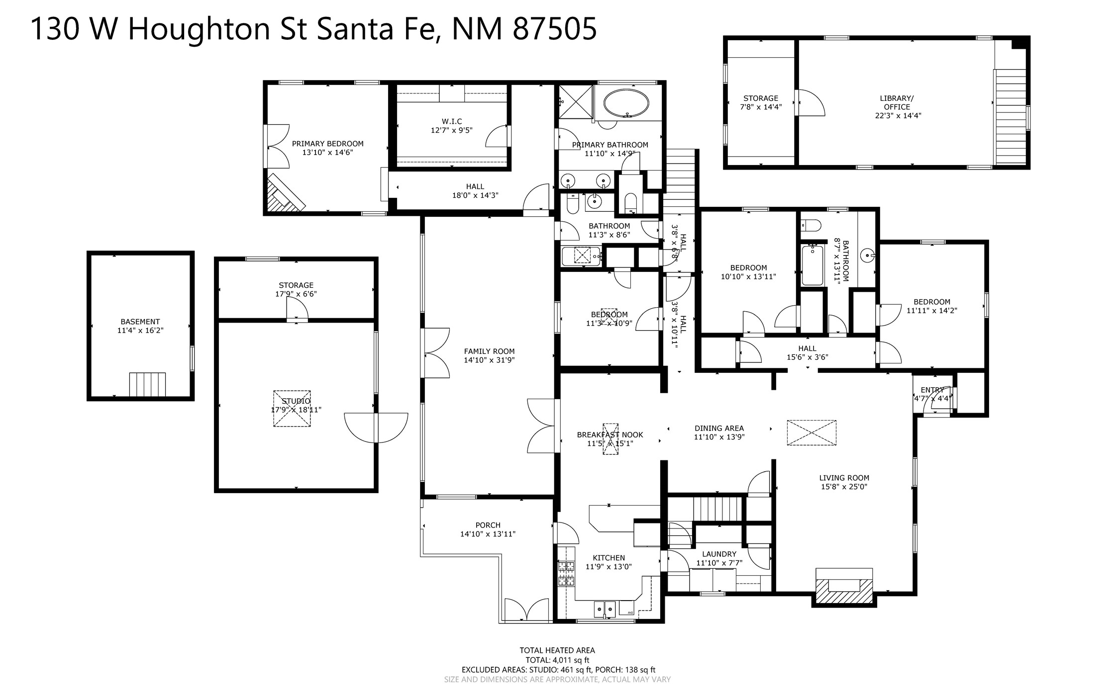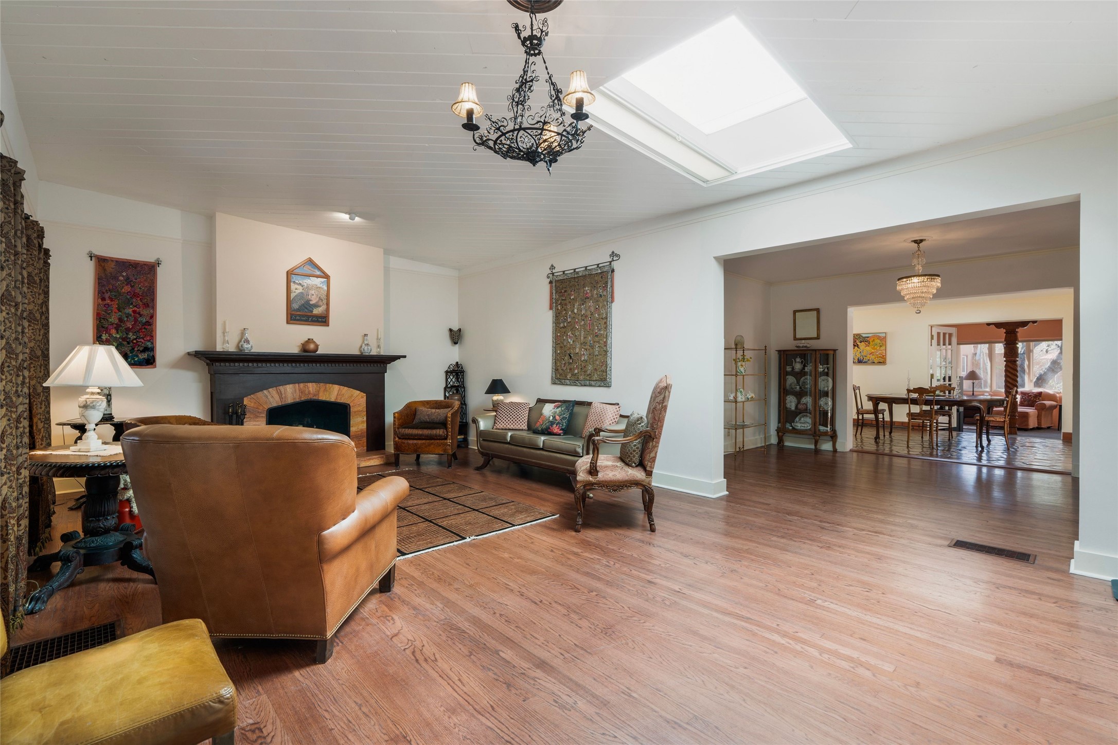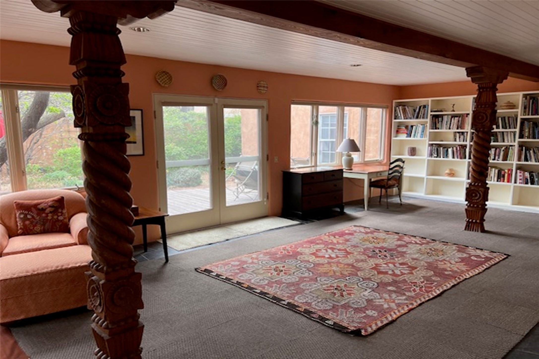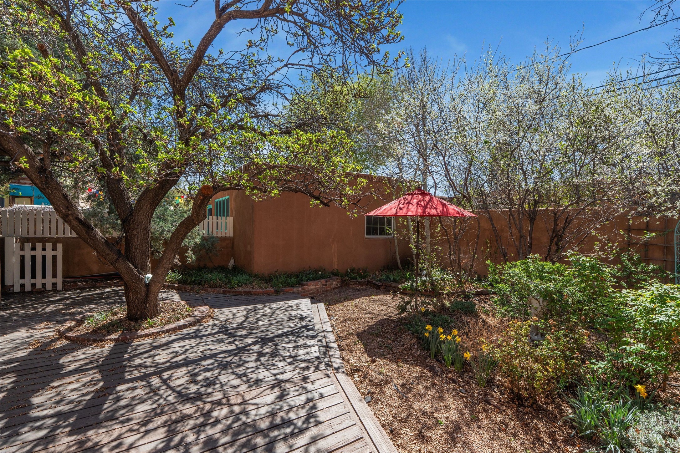 Extraordinary Territorial-style home with historic charm on a secluded street in the heart of South Capitol-less than a mile from the Santa Fe Plaza. Lovingly occupied by the same owners for 20 years, this sserene property offers approximately 3,800 sq. ft. of single-level living on a nearly .28-acre completely walled lot. The spacious primary level floor plan includes 4 bedrooms, 3 baths, two interior fireplaces, a large kitchen with separate breakfast room, family room, laundry, and abundant storage. An optional upstairs den/work space with a large storage closet provides flexible living arrangements. Three private patios and lush gardens-complete with lilac bushes, mature neighboring trees, and walking paths-surround the home. A detached studio with its own private garden sits at the rear of the property. Thoughtful upgrades include a newer roof (with warranty), central air plus three wall split AC/heating units, remodeled bathroom, newer water heater, copper water lines to the street and throughout the house, a new gas line, gutters and trim, and more. Located in the Wood Gormley school district. This property is a rare combination of historic character, privacy, and modern conveniences minutes from downtown Santa Fe.