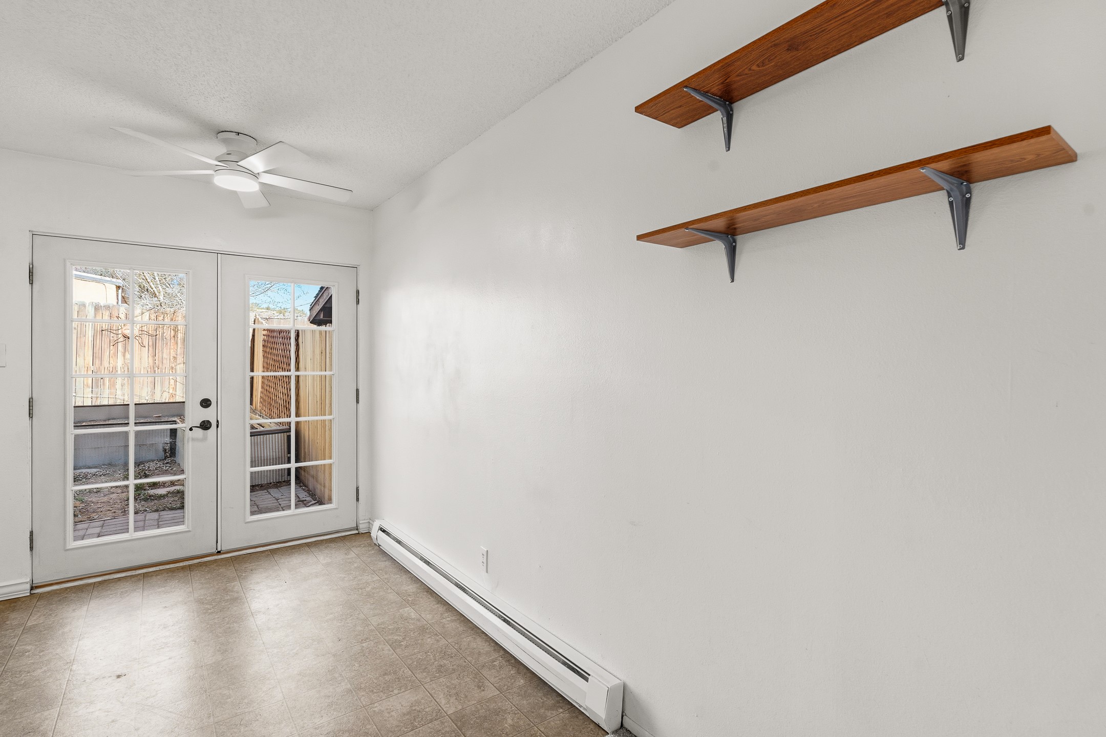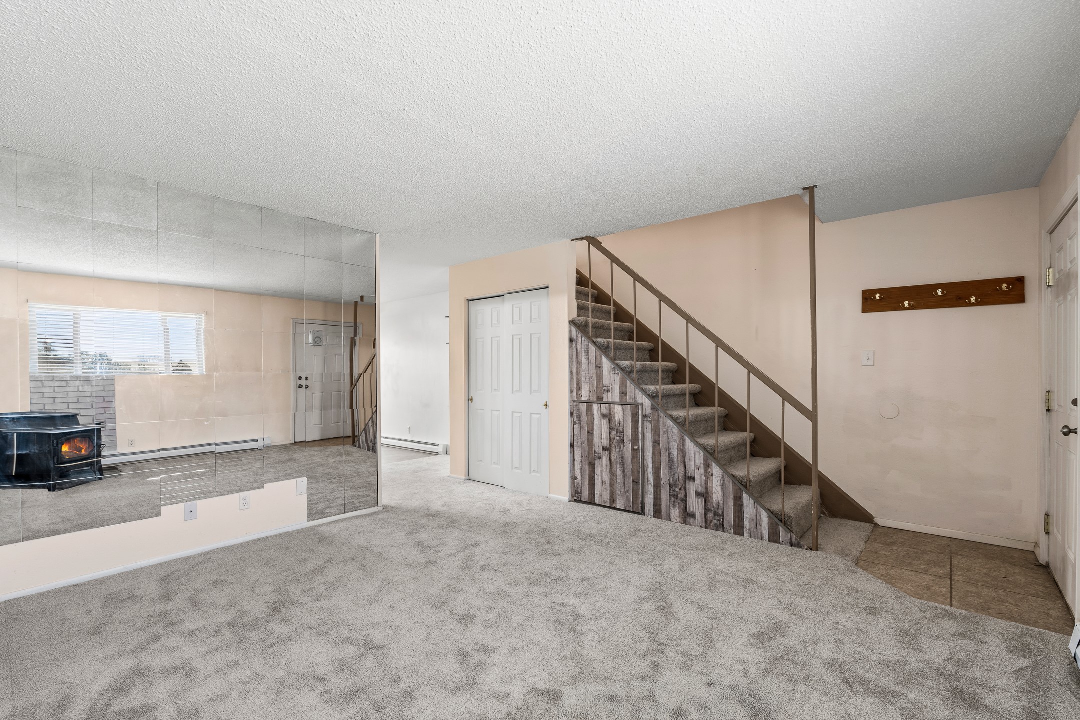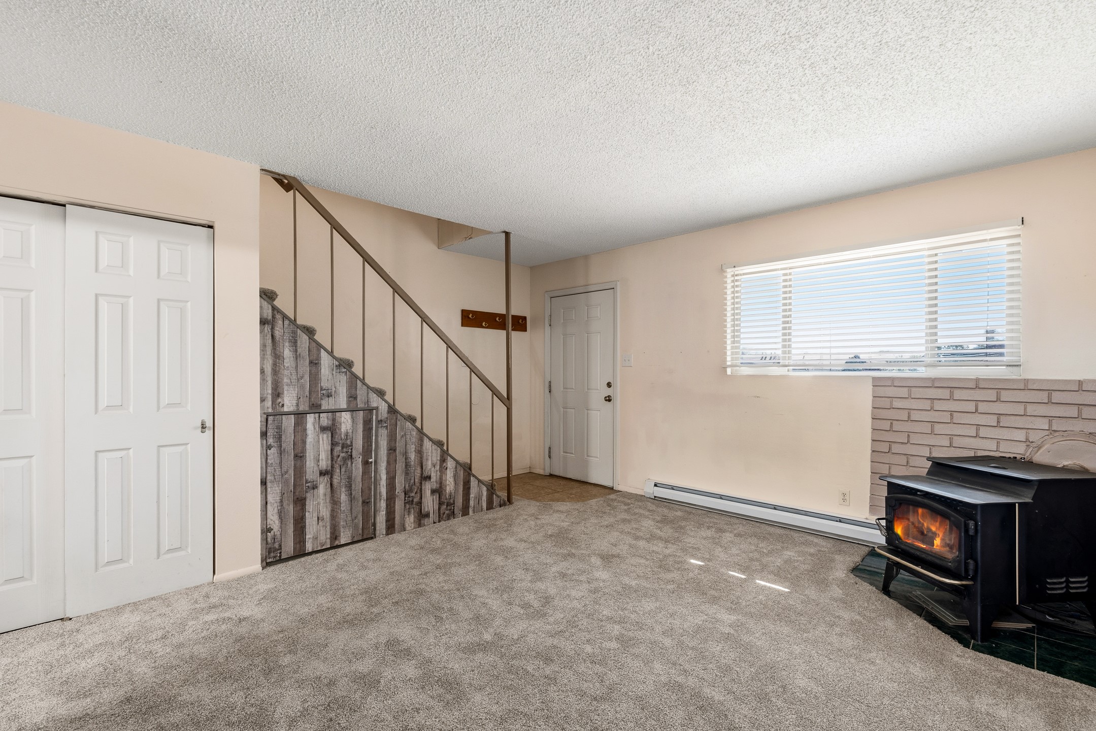 Two-bedroom condo with no neighbors above, offering comfortable living and thoughtful separation of spaces in desirable White Rock.The first floor features the main living areas, including the living room, dining room, kitchen, and a convenient half bath with in-unit laundry. The living room is warmed by a cozy pellet stove, creating a welcoming atmosphere during cooler months. The kitchen features white cabinetry and countertops that provide a light, bright feel, and the dining area opens directly onto the patio--perfect for outdoor relaxation. A private storage unit is also located on the patio for added convenience.Upstairs, both bedrooms offer privacy away from the main living spaces. The spacious primary bedroom features abundant natural light and a south-facing balcony, creating a sunny retreat. A full, updated bathroom is located on the upper level, along with the guest bedroom.Condo dues include exterior maintenance (including the roof), property taxes, water, sewer, refuse, and recycling--providing simplified and predictable ownership. Schedule your showing today and discover the comfort and convenience this White Rock condo has to offer!