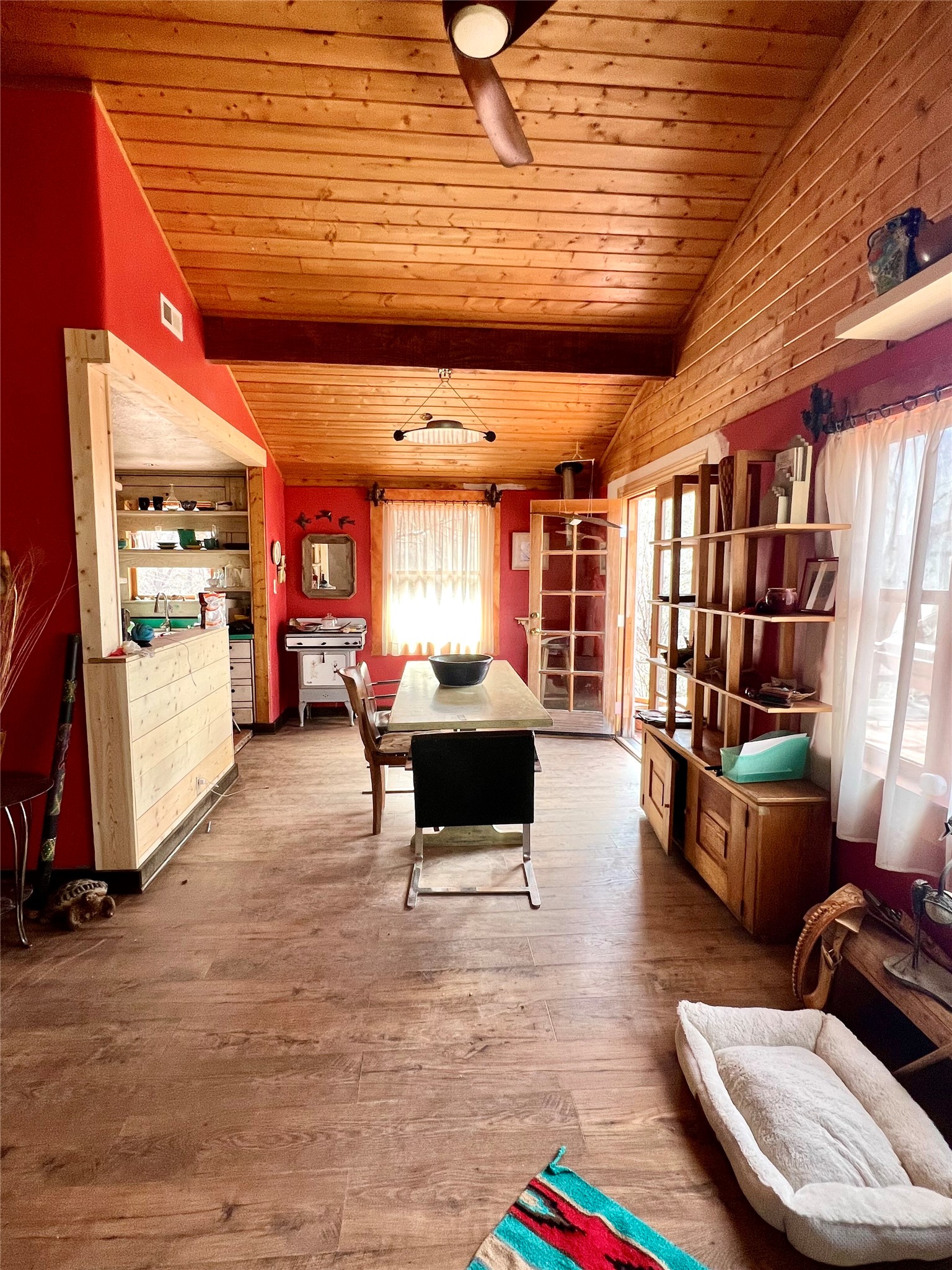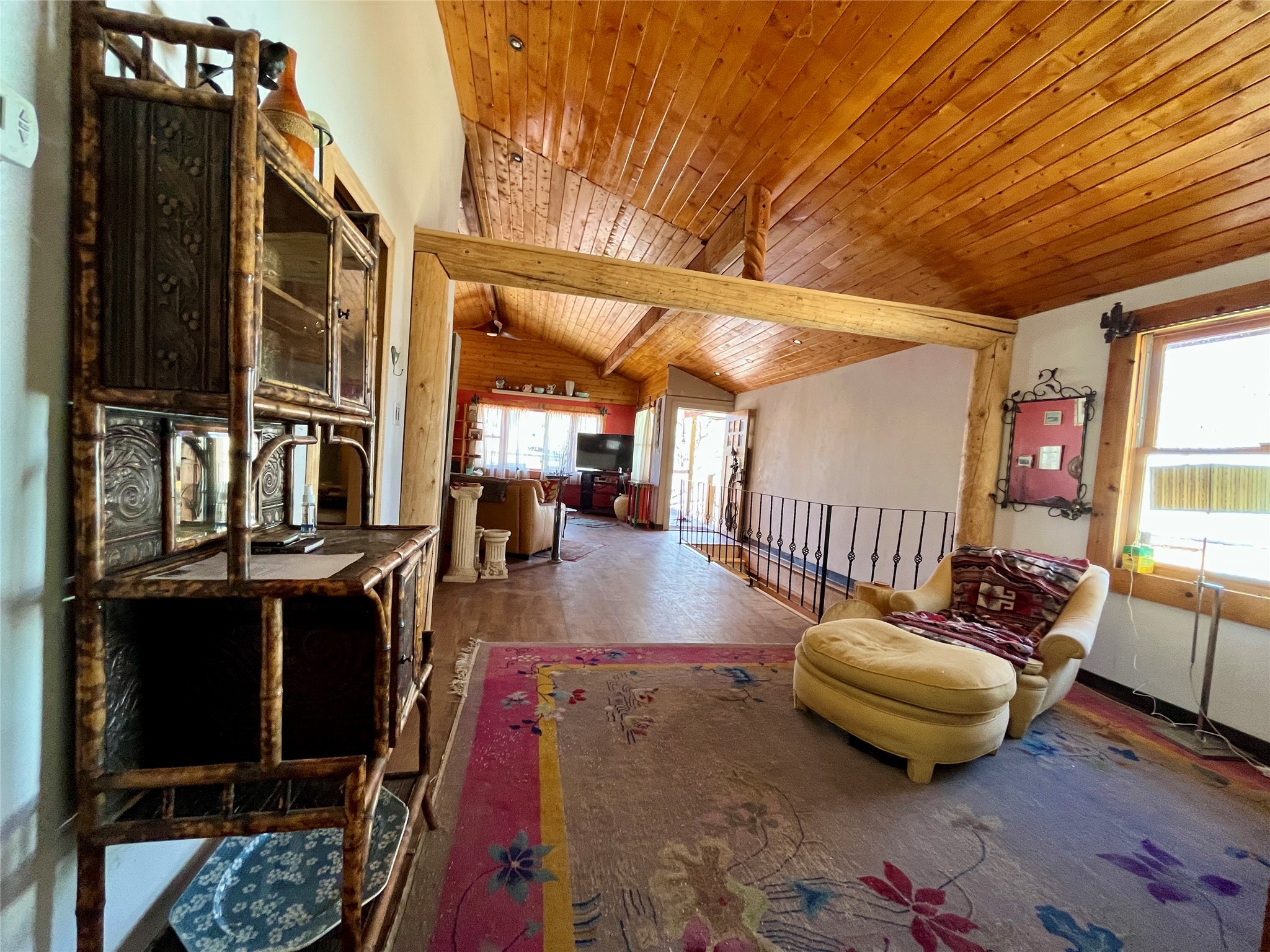 Log cabin retreat on one acre along the Rio Grande canyon just 20 minutes from Taos. Charming Rio Grande Canyon property located in Pilar, NM, about an hour from Santa Fe, offering privacy, natural beauty, and classic Northern New Mexico character. This 2-bedroom, 1-bath home features warm terracotta tile floors, a beautiful natural wood ceiling, and large windows that bring in abundant natural light and canyon views. The lower level includes a spacious bonus room currently used as a third bedroom with views toward the Rio Grande--ideal for an art studio, creative workspace, or guest area. Outside, enjoy a large deck overlooking the peaceful landscape with mature trees and open space under expansive New Mexico skies. The property also includes a separate casita, offering excellent potential for guest accommodations or rental income. Located near some of Northern New Mexico's best rafting, fly fishing, hiking, and outdoor recreation, this unique property offers a wonderful opportunity for a full-time residence, weekend getaway, or artist retreat in the Rio Grande corridor.