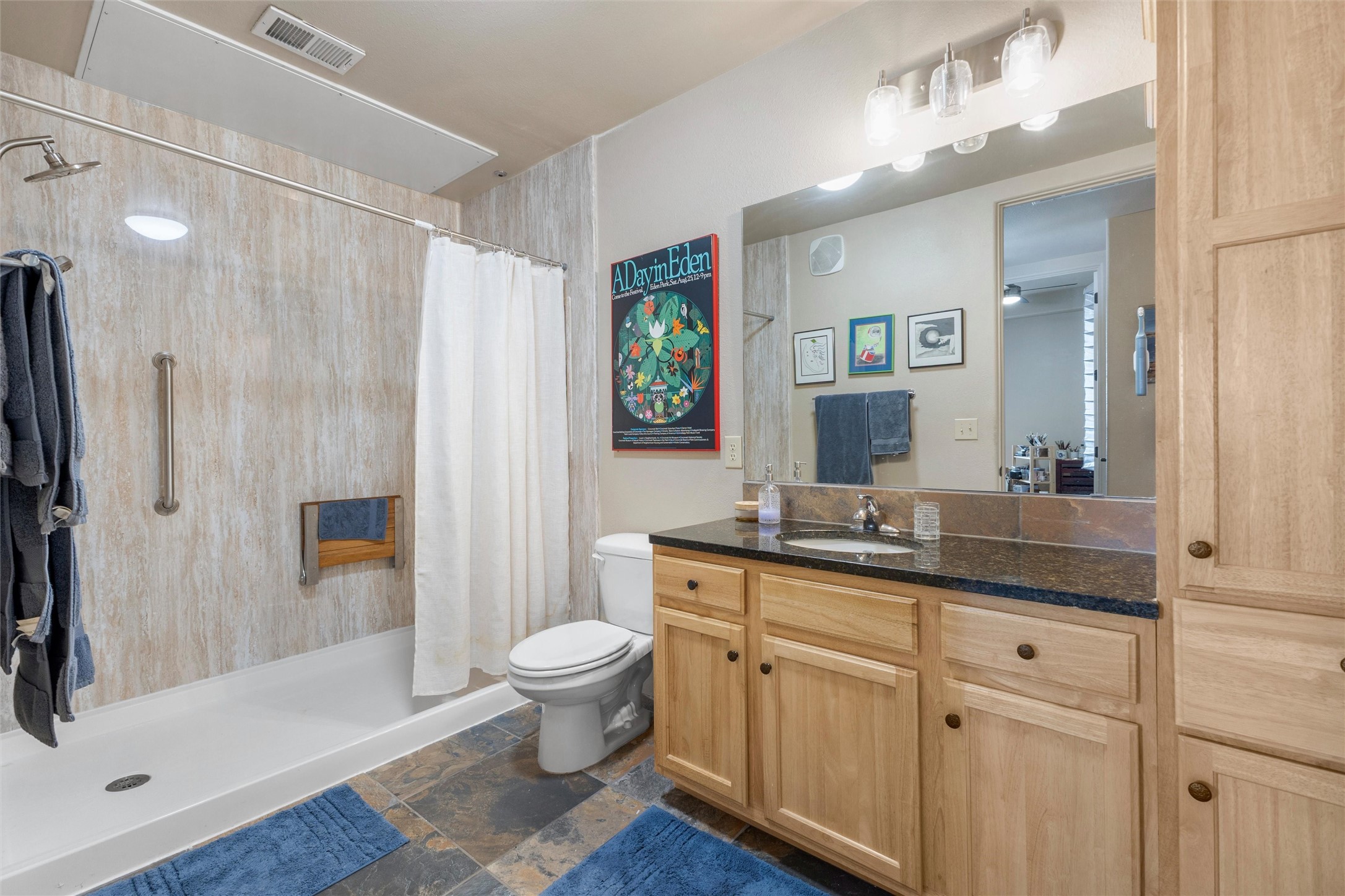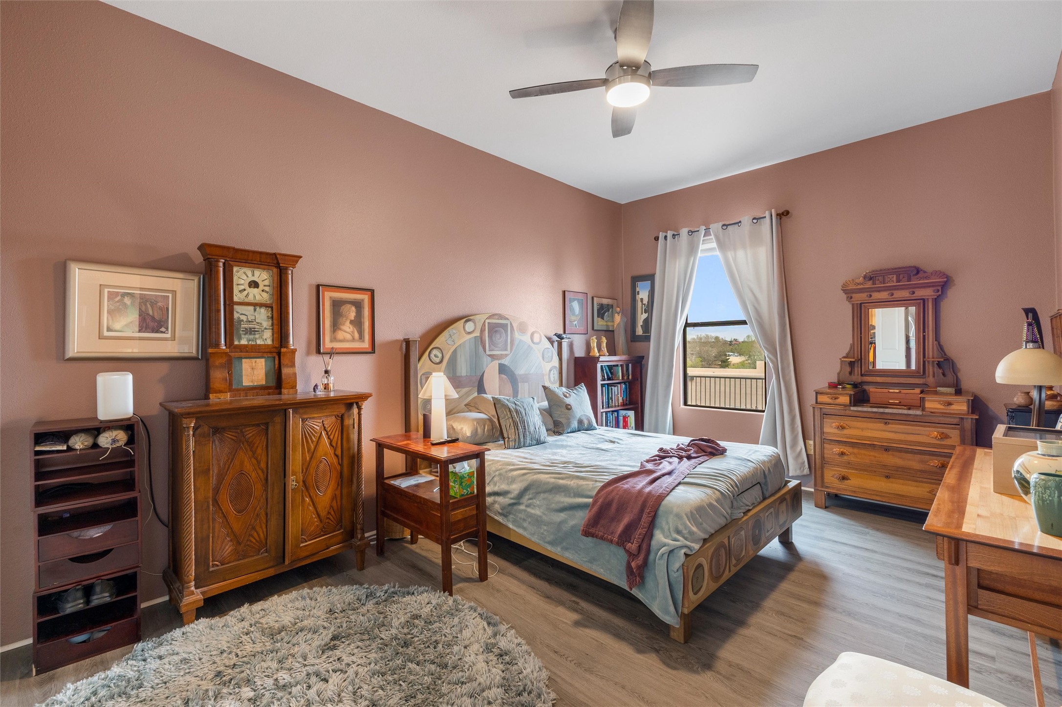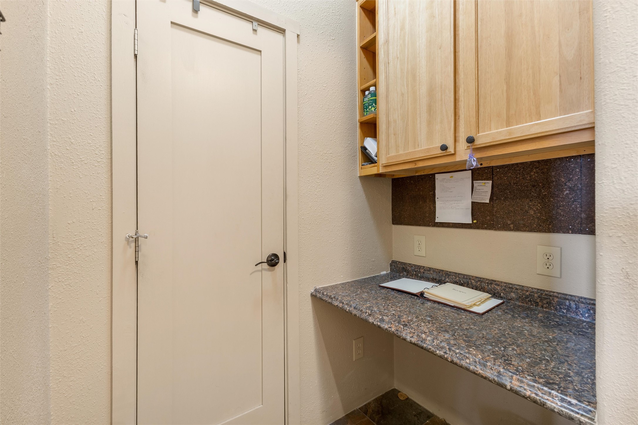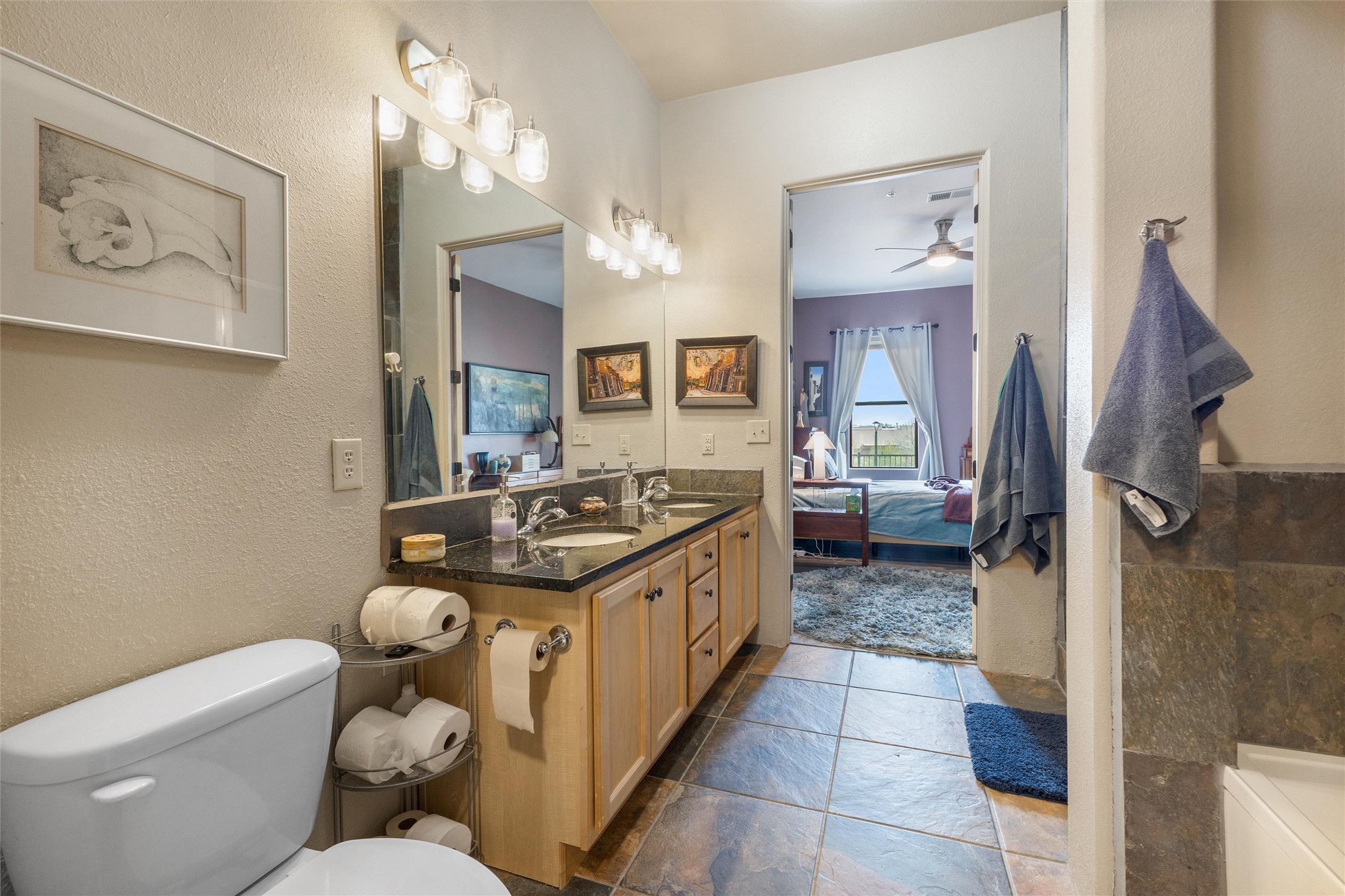 This corner, ground-floor condo at The Alameda offers a rare blend of privacy, natural light, and effortless living. Positioned at the edge of the building, the unit feels open and quiet, with a large, private, shaded balcony, creating a peaceful setting to relax, read, or work from home.Inside, the living space is warm and inviting, filled with soft natural light and centered around a gas kiva fireplace. French doors connect the indoor and outdoor spaces, while the updated kitchen features stainless steel appliances and granite countertops, designed for both everyday use and easy entertaining.The primary suite is well-appointed with California Closets for thoughtful organization, along with a soaking tub and separate shower. The second bedroom offers great light, a generous closet, and its own bathroom with a walk-in shower, providing comfort and separation for guests.A direct-entry storage unit accessed through the office nook adds a practical and hard-to-find convenience. The ground-floor location allows for easy access to parking.The Alameda is known for its well-maintained grounds and amenities, including gated parking, a pool, fitness center, BBQ areas, and a reservable community space for gatherings. A low-maintenance option that allows you to enjoy Santa Fe without the upkeep.