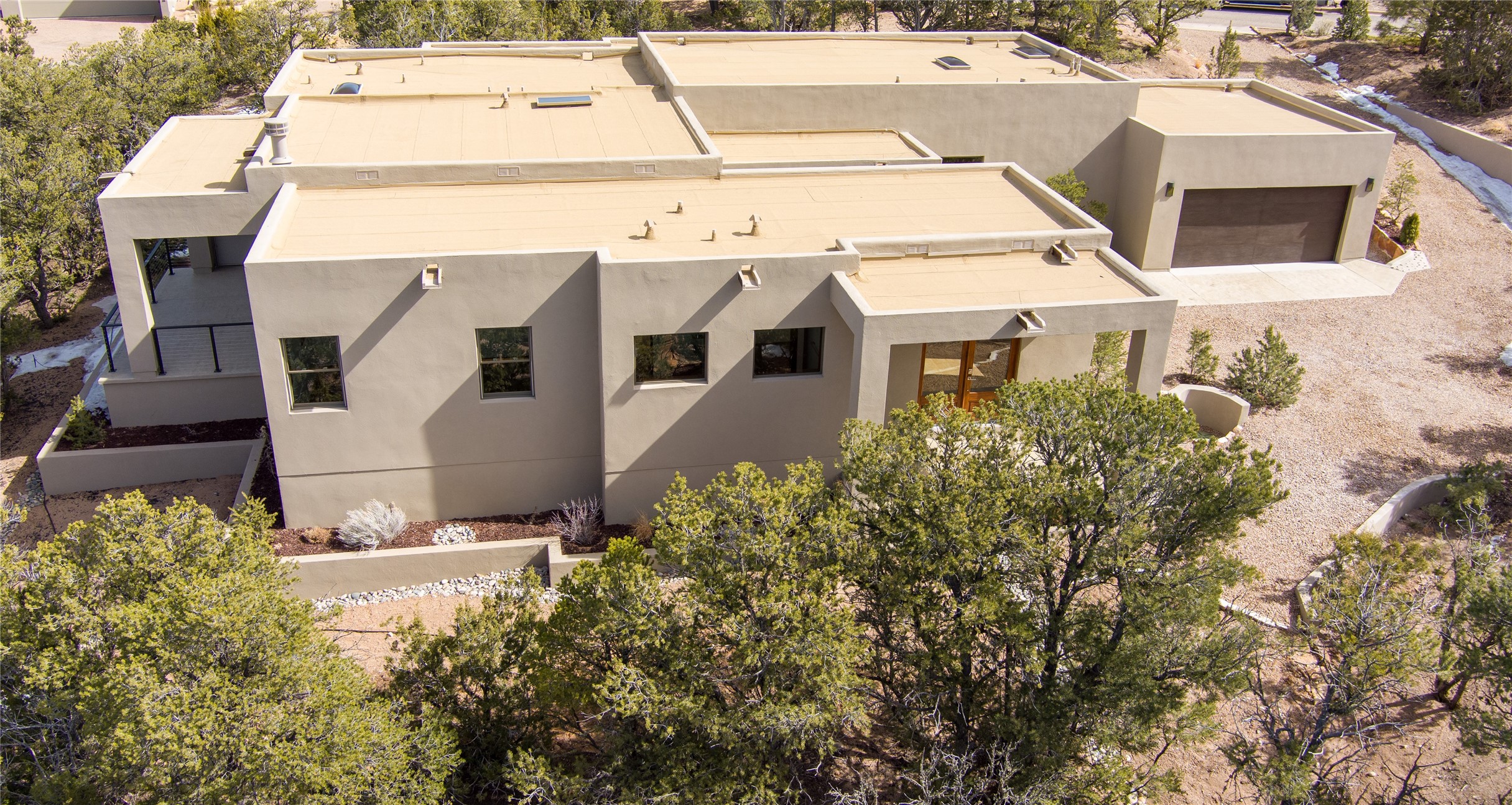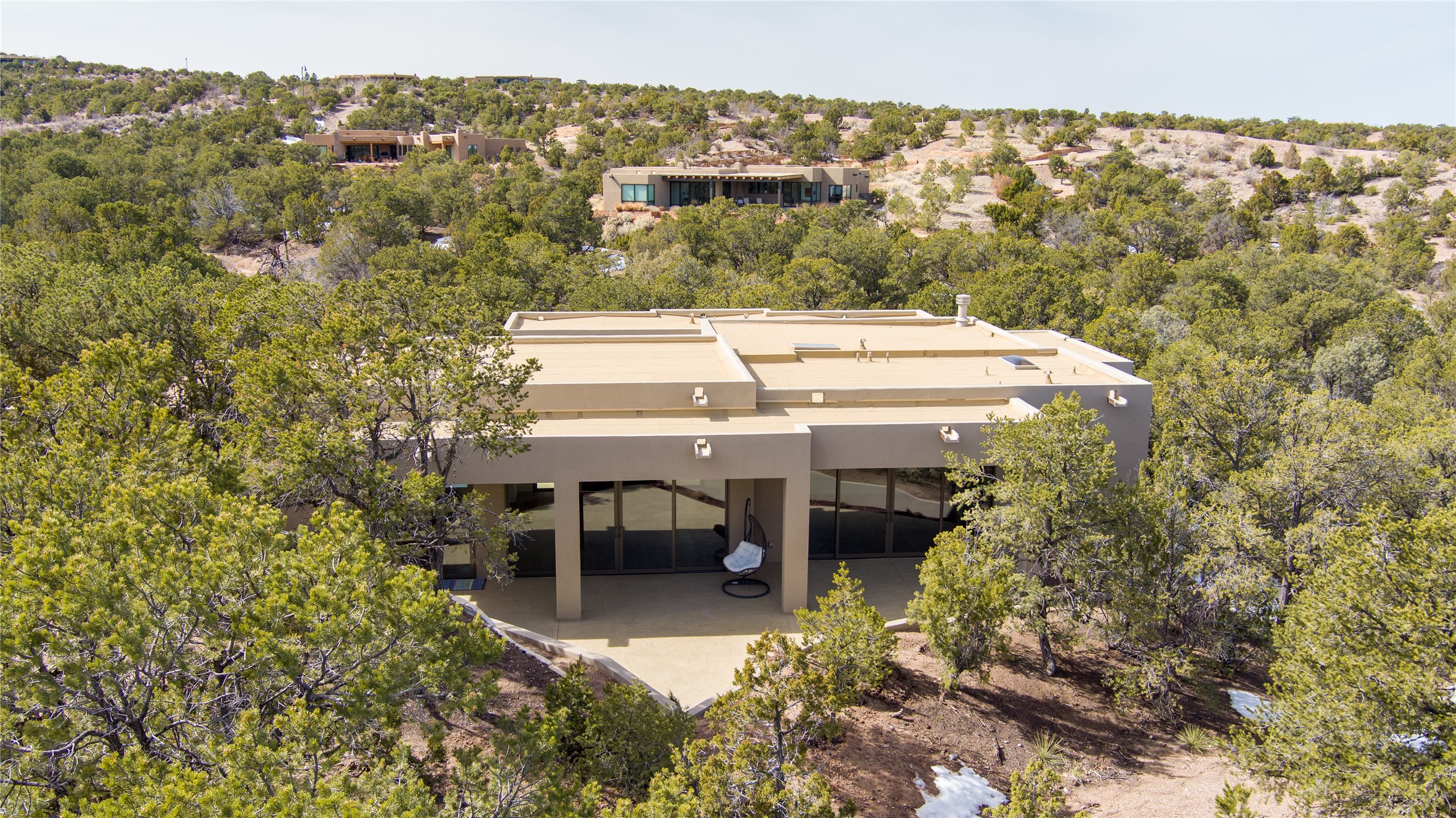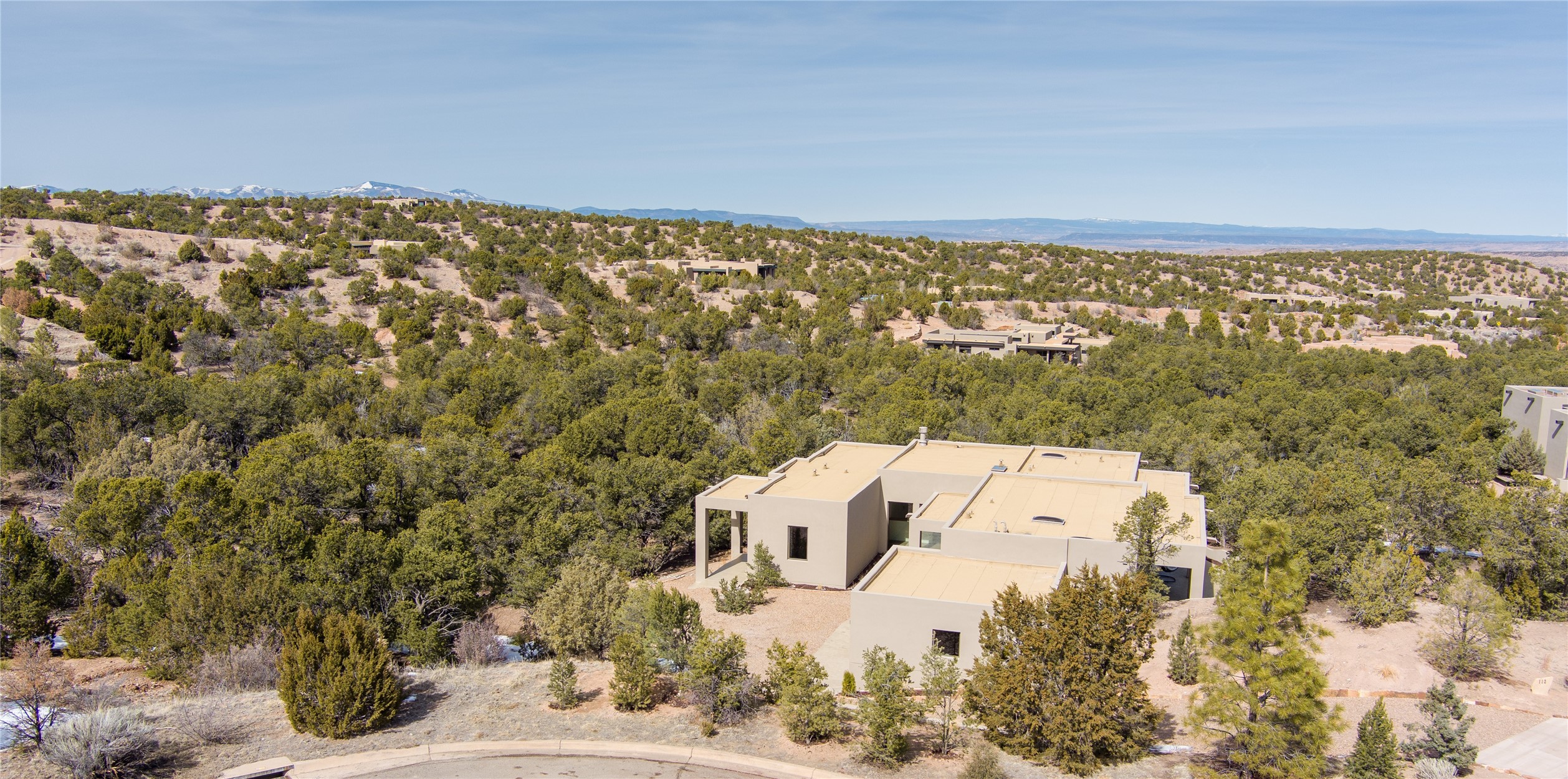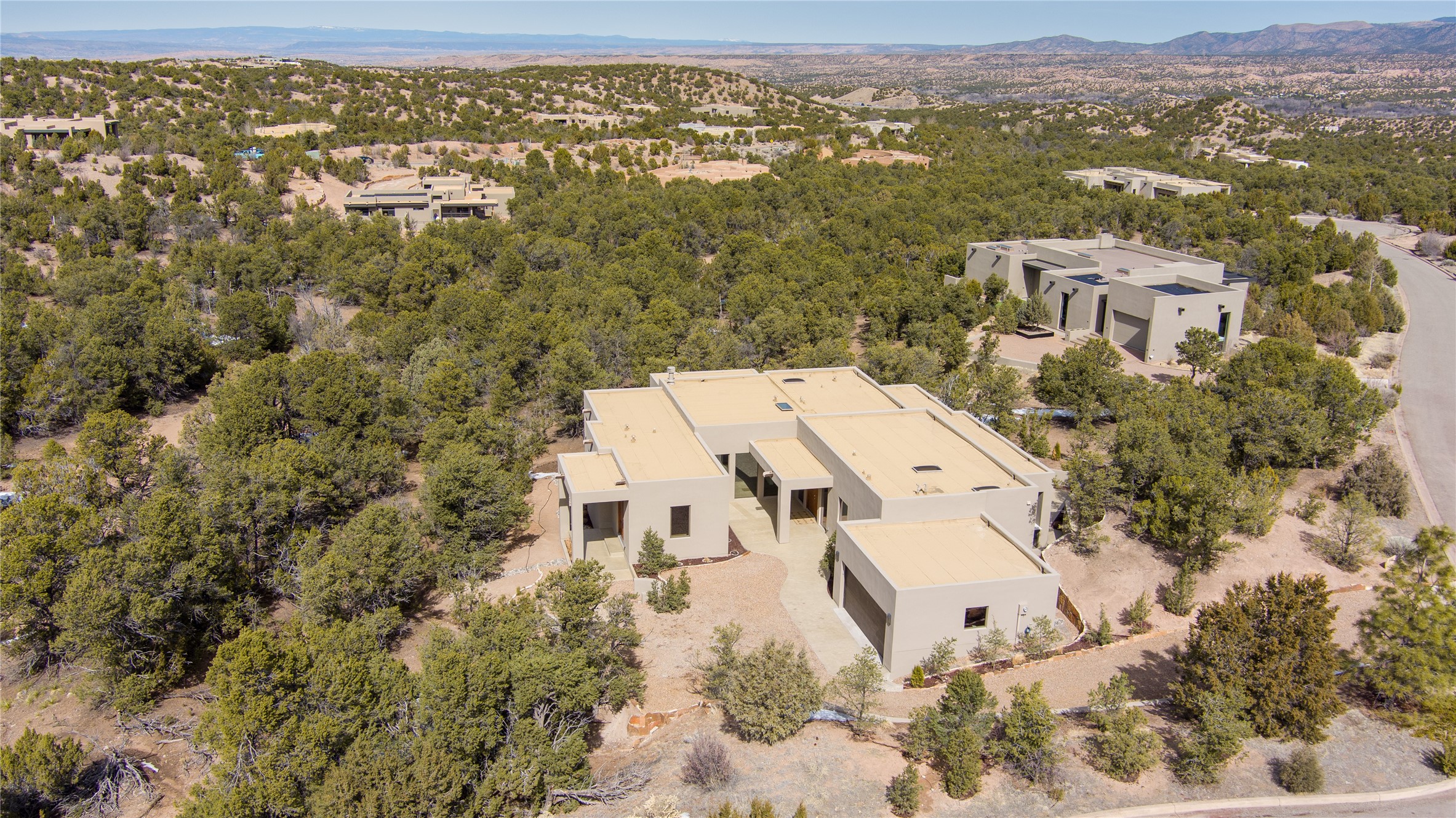 Elegant Living in Monte Sereno. Nestled just north of Santa Fe in the prestigious Monte Sereno subdivision, this brand-new home offers a rare blend of privacy, luxury, and modern convenience. Set on 1.4 acres, this thoughtfully designed residence provides a serene retreat while being just minutes from the best of Santa Fe, including renowned restaurants, the opera, shopping, and entertainment. Key Features: Single-Level Design with no interior steps. Spacious Layout, 3 bedrooms, 4 full bathrooms, 2 distinct living areas, and a 2-car garage. High ceilings, 8-foot solid walnut doors, Pella windows, marble bathrooms, quartz countertops, and radiant heating throughout. Walk-in closets, ductless AC, and an open-concept floor plan perfect for modern living. Step outside to expansive covered patios, complete with a bar and barbecue area, ideal for outdoor dining and entertaining. The professionally landscaped property showcases exquisite stonework and a drip irrigation system, enhancing its natural beauty. Why Monte Sereno? This exclusive location offers unparalleled peace and quiet while keeping you close to Santa Fe's cultural and recreational highlights. Whether you're savoring the breathtaking scenery or enjoying world-class dining and entertainment, this home promises an exceptional lifestyle.