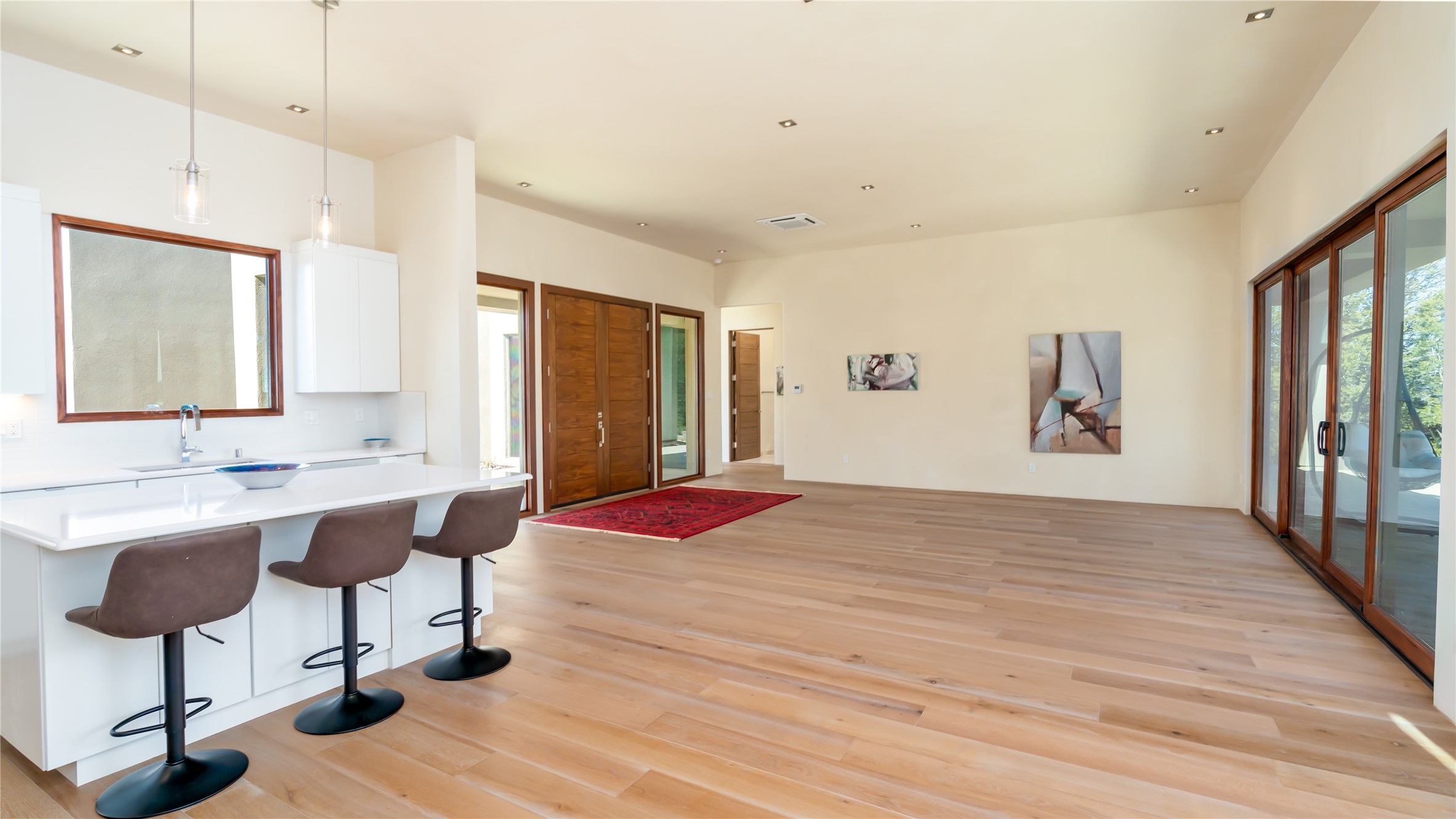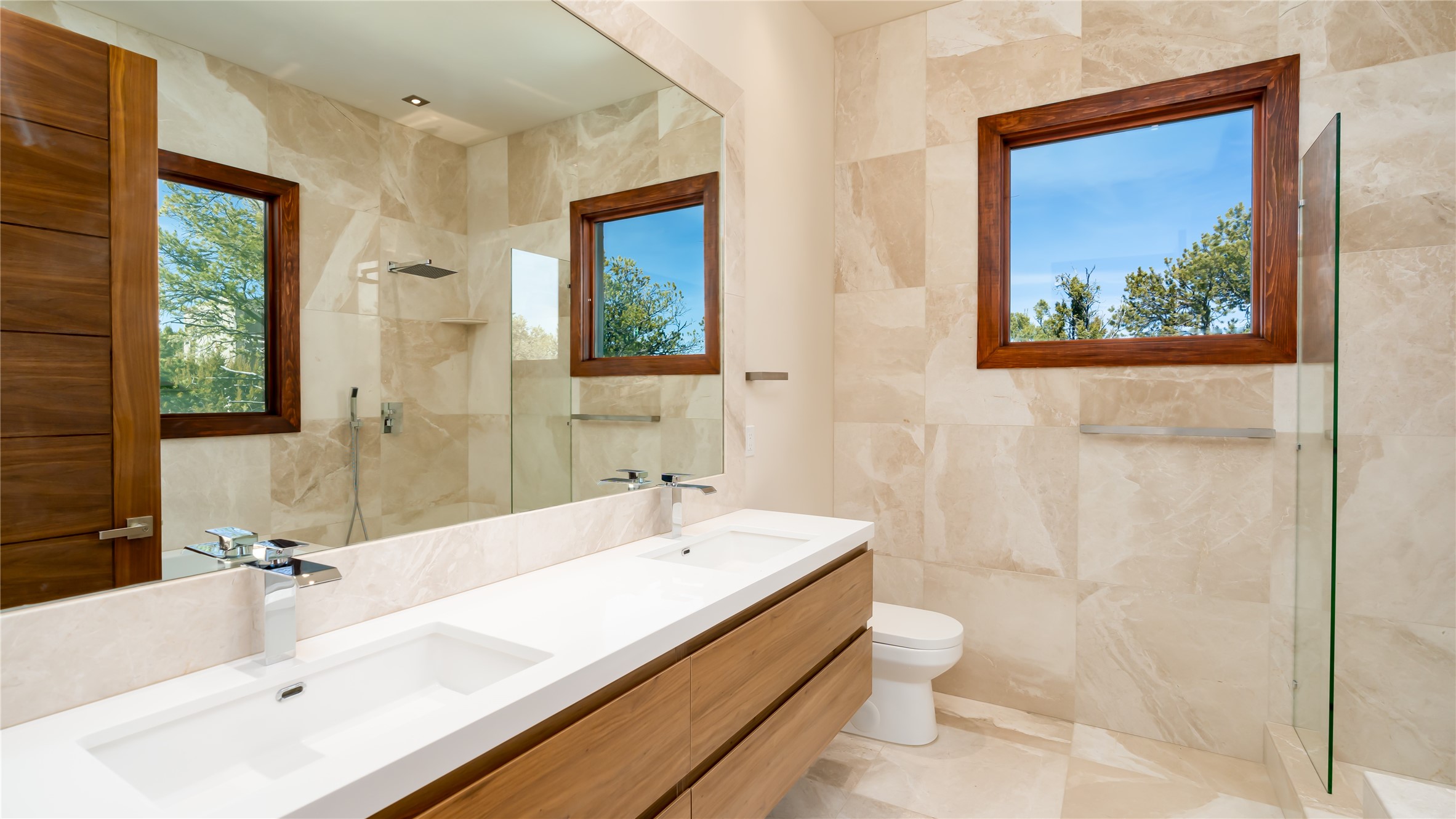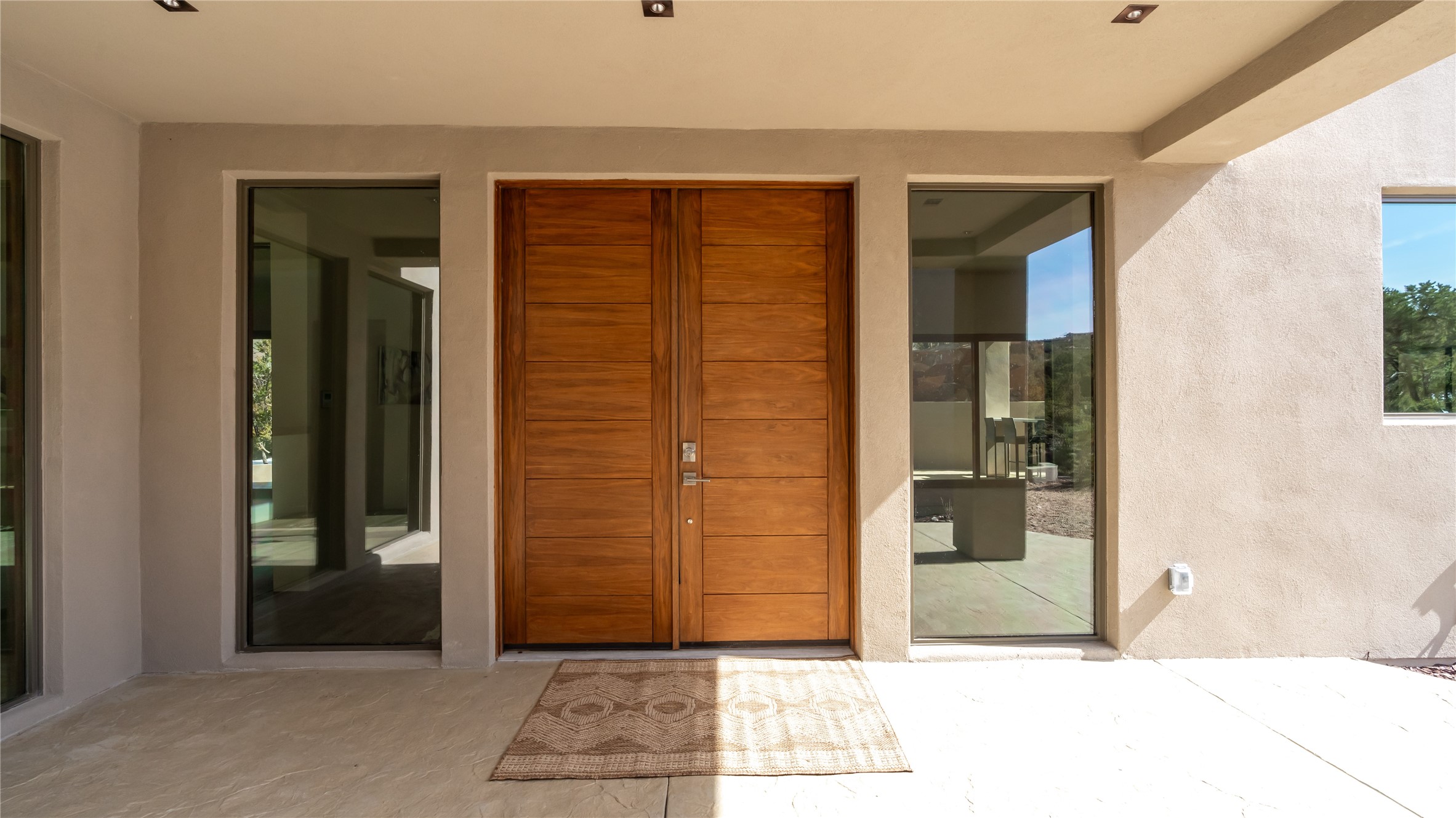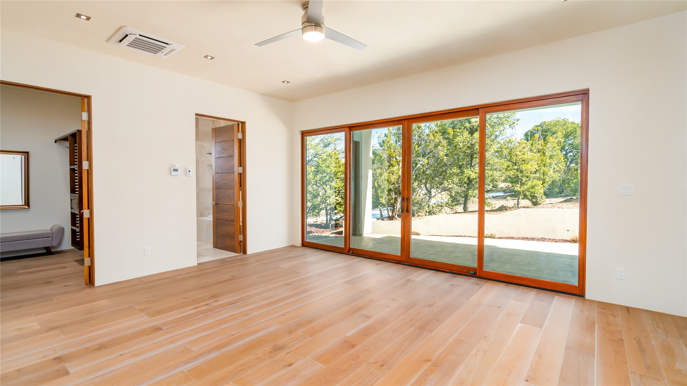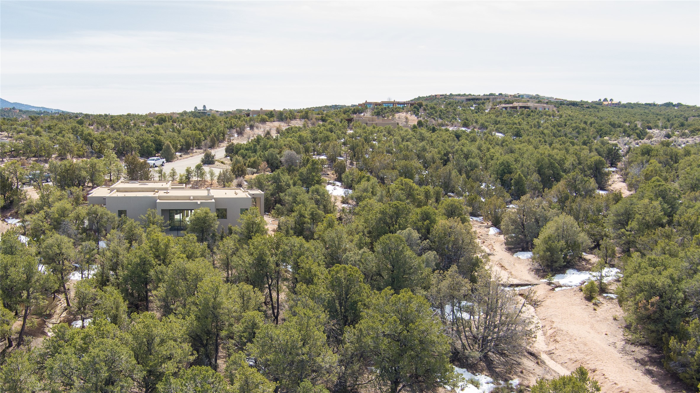 Elegant Living in Monte Sereno. Nestled just north of Santa Fe in the prestigious Monte Sereno subdivision, this brand-new home offers a rare blend of privacy, luxury, and modern convenience. Set on 1.4 acres, this thoughtfully designed residence provides a serene retreat while being just minutes from the best of Santa Fe, including renowned restaurants, the opera, shopping, and entertainment. Key Features: Single-Level Design with no interior steps. Spacious Layout, 3 bedrooms, 4 full bathrooms, 2 distinct living areas, and a 2-car garage. High ceilings, 8-foot solid walnut doors, Pella windows, marble bathrooms, quartz countertops, and radiant heating throughout. Walk-in closets, ductless AC, and an open-concept floor plan perfect for modern living. Step outside to expansive covered patios, complete with a bar and barbecue area, ideal for outdoor dining and entertaining. The professionally landscaped property showcases exquisite stonework and a drip irrigation system, enhancing its natural beauty. Why Monte Sereno? This exclusive location offers unparalleled peace and quiet while keeping you close to Santa Fe's cultural and recreational highlights. Whether you're savoring the breathtaking scenery or enjoying world-class dining and entertainment, this home promises an exceptional lifestyle.