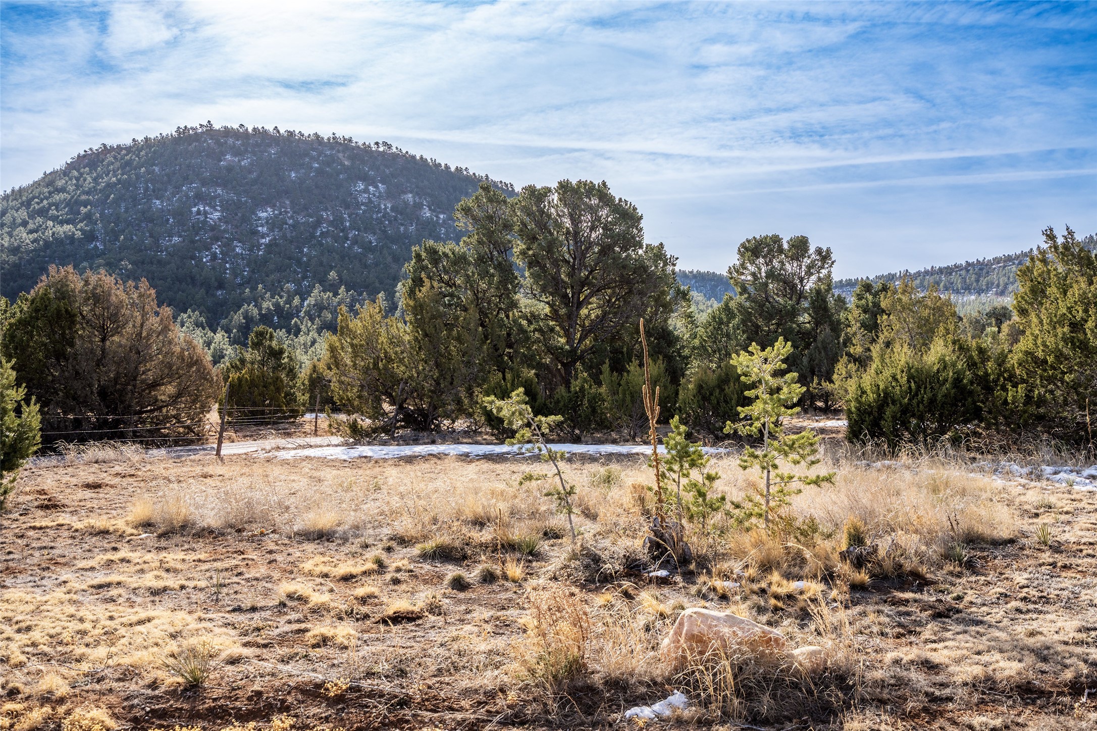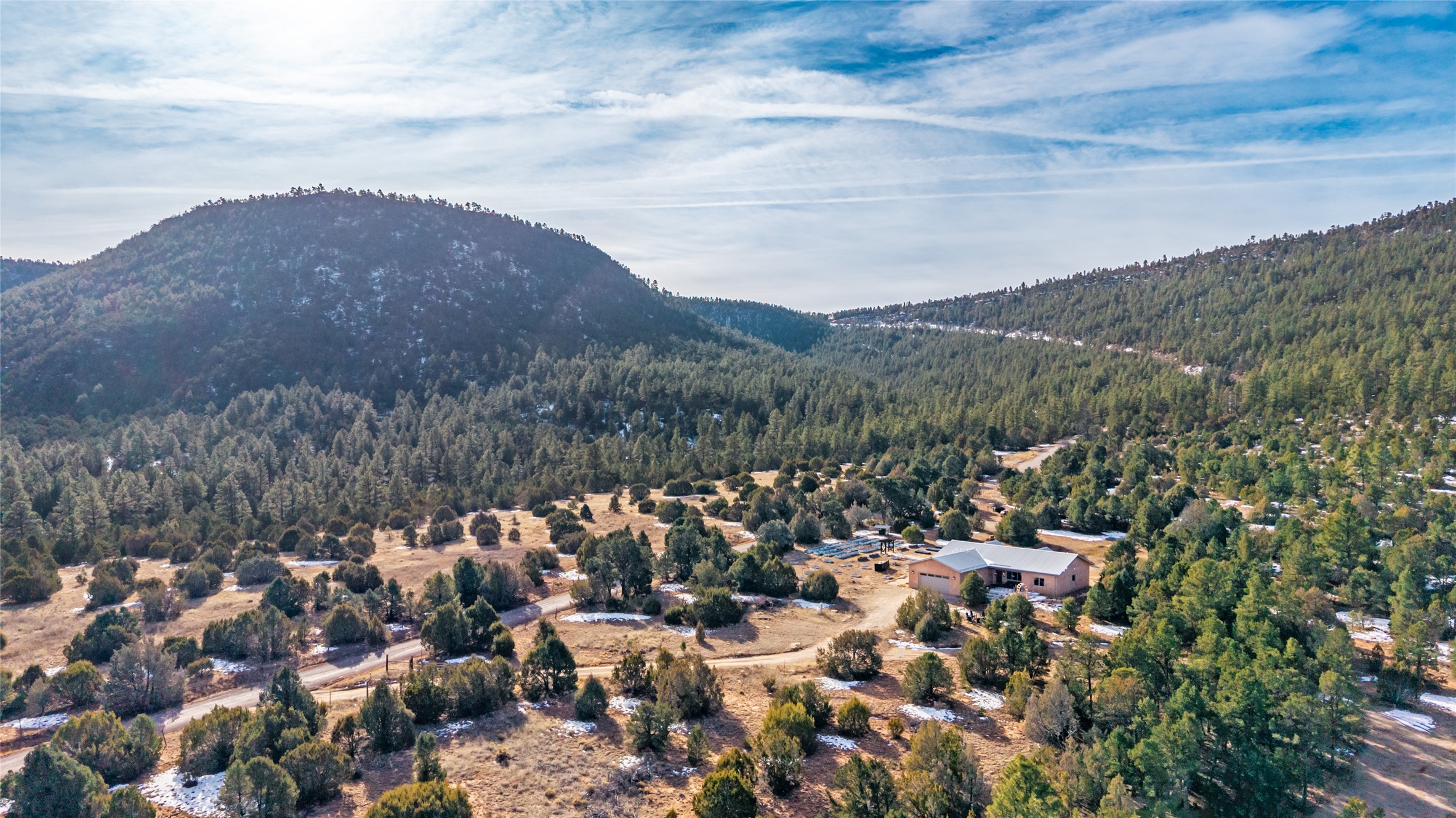 Freshly prepared for spring, this well-maintained property has been thoughtfully refreshed and is move-in ready. Recent updates include fresh interior paint, a newly installed septic system (March 2026) with a two-year warranty, deep-cleaned carpets, cleared personal property, and spruced raised garden beds. The sellers have recently moved out and are presenting a timely opportunity for the next owner. Located at the base of Rowe Mesa, this ranch-style home sits on approximately 3.7 acres of mostly level, usable land, offering expansive skies, mountain views, and a sense of rural privacy--all within an approximate 30-minute drive to Santa Fe. Built in 2021, the custom home features a modern ranch aesthetic with a pitched propanel roof, stucco exterior, and natural finishes throughout. The open-concept living and kitchen area includes island seating, a pantry, and access to the attached two-car garage. Interior details include brick flooring, wood cabinetry, subway tile accents, and wood-planked ceilings. The home offers three bedrooms and two bathrooms, providing flexible living options. Radiant in-floor heating and mini-split systems support year-round comfort. Exterior features include mature fruit trees and established raised garden beds. The property borders public lands associated with the Santa Fe National Forest, offering nearby access to outdoor recreation. This property presents a rare combination of newer construction, usable acreage, and a beautiful high-desert setting.