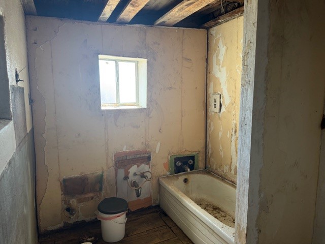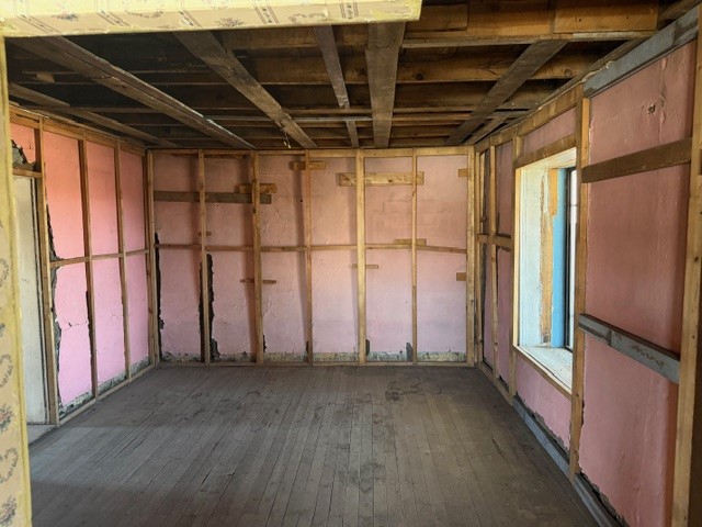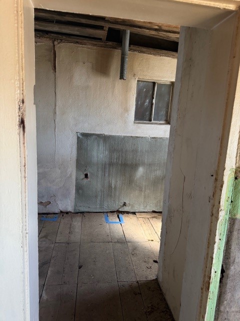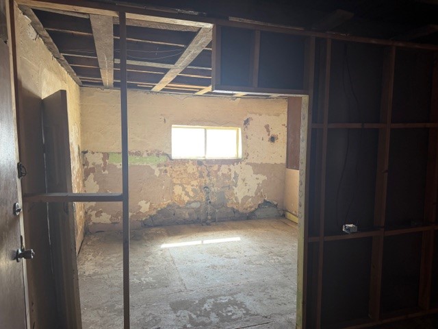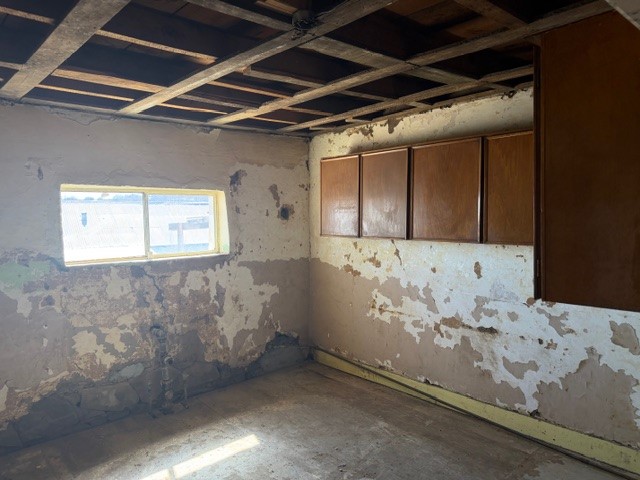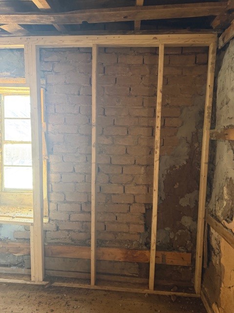 This cute adobe is up on a hill on the west side of Las Vegas, with a view over the town to the plains. Living room, kitchen,two bedrooms, one bathroom, and a shed addition give plenty of space to call home. The interior has been stripped and is ready for renovation.