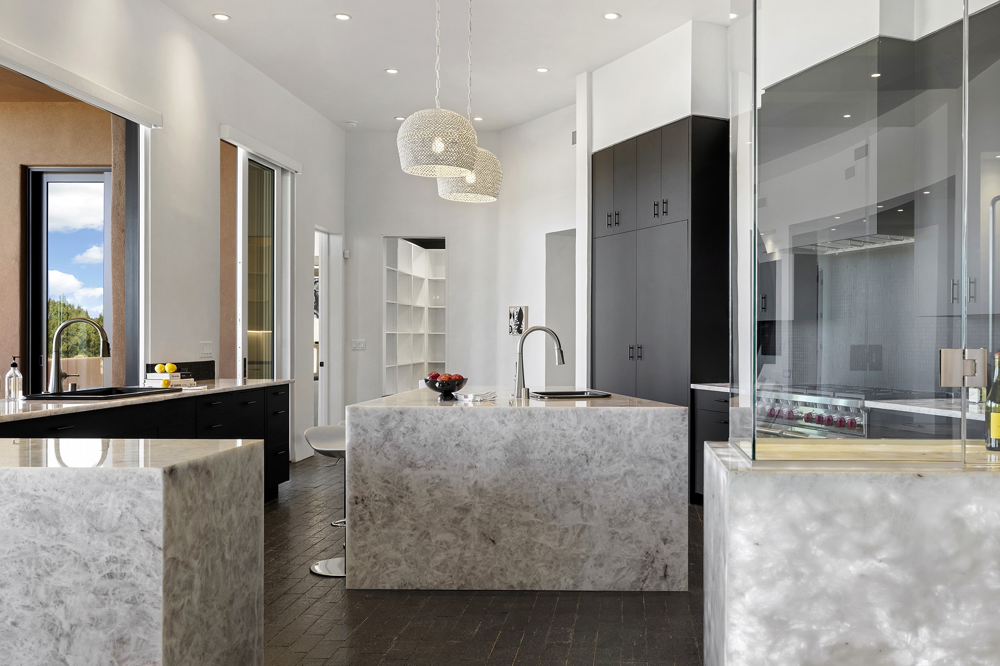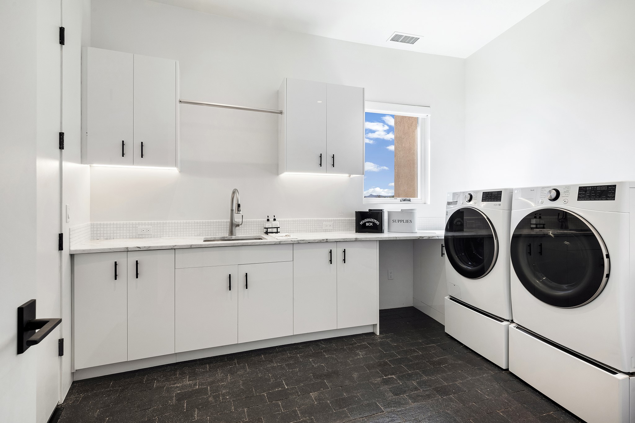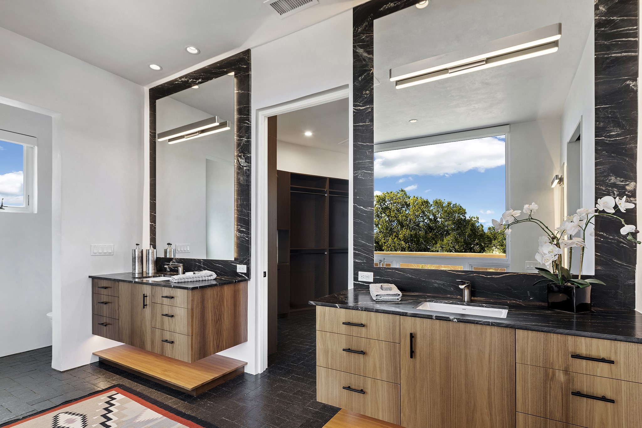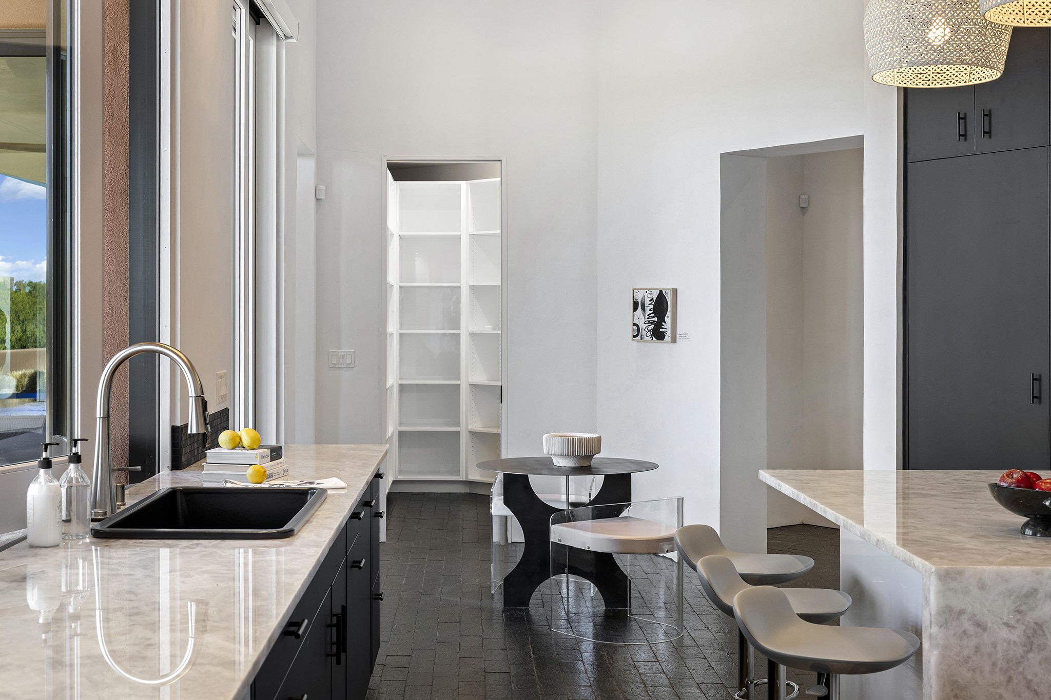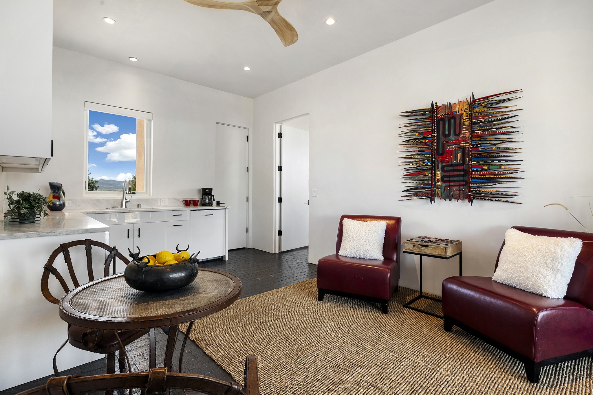 An experience with no parallel - relaxed but elegant living at its best. Unstoppable sunrise and sunset views stretch across the Sangre de Cristo and Jemez Mountains, uninterrupted and ever-changing, with no distractions to take away from privacy, the exclusivity, and the quality of this property. 17 Hacienda Vaquero is a Contemporary Pueblo by Native Son Builders, set within the Estancias of Las Campanas. More than 4,200 square feet of refined interior space pairs with over 1,600 square feet of outdoor living, where covered portals, a kiva fireplace, and an in ground spa with waterfall--and infinity edge--create a seamless connection to the landscape. The great room centers on a custom gas fireplace and opens effortlessly through motorized sliding walls to brick floors that continue outdoors, blurring the line between inside and out. The kitchen is appointed with Wolf appliances, a Sub-Zero refrigerator and freezer, two Asko dishwashers, a walk-in pantry, and a refrigerated wine display. A mudroom and laundry area sit just off the three-car garage, while a porte-cochere offers covered arrival. A private attached casita includes a kitchenette, living area, and its own portal, ideal for guests or extended stays. Just minutes from downtown Santa Fe this home is set in the exclusive Estancias area of Las Campanas, a private club offering two Jack Nicklaus golf courses, a world-class equestrian center, fitness center, and spa. Optional membership provides access to dining, pools, racquet sports, and more, along with 24-hour security and on-site paramedics and EMTs.