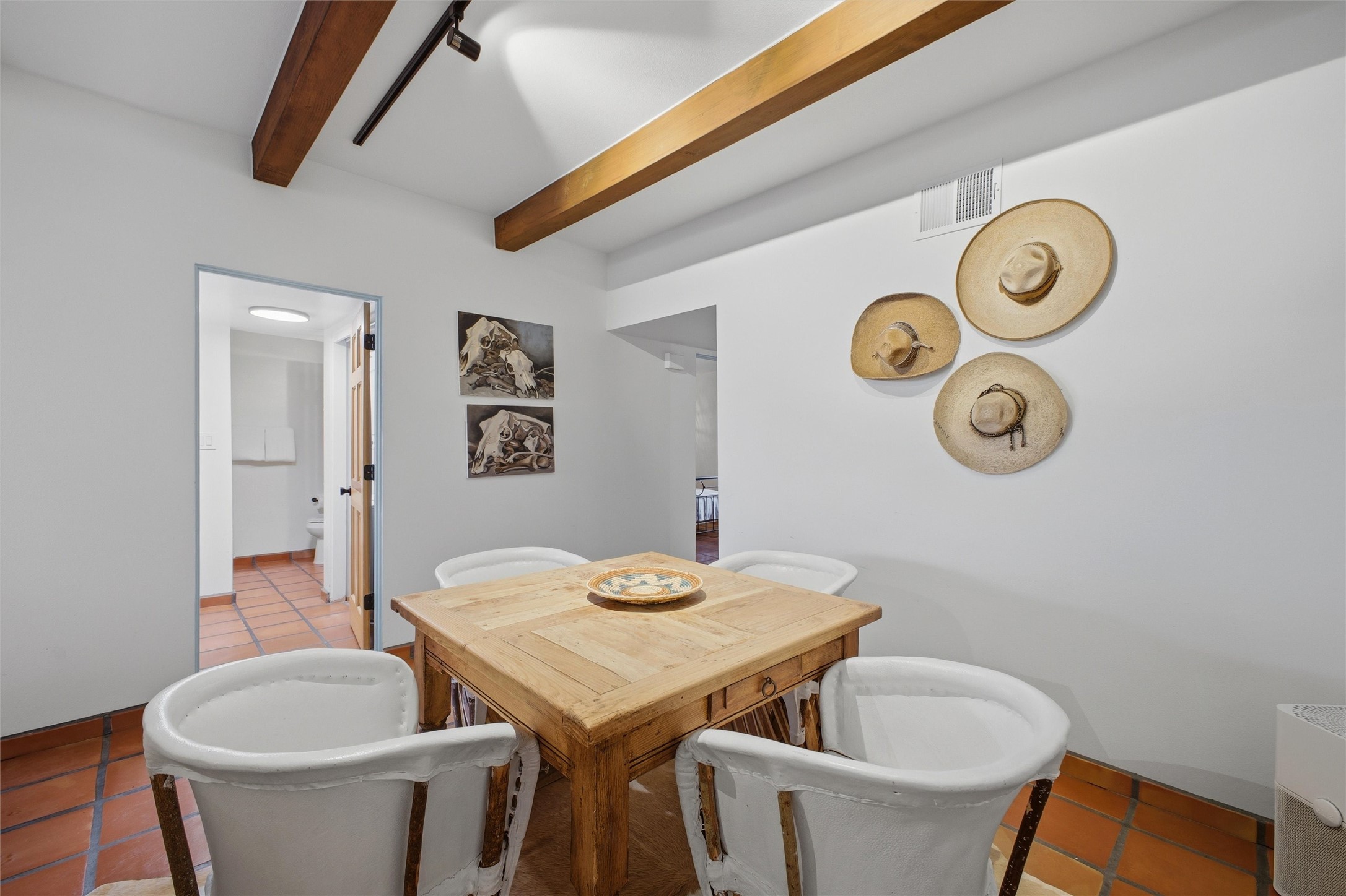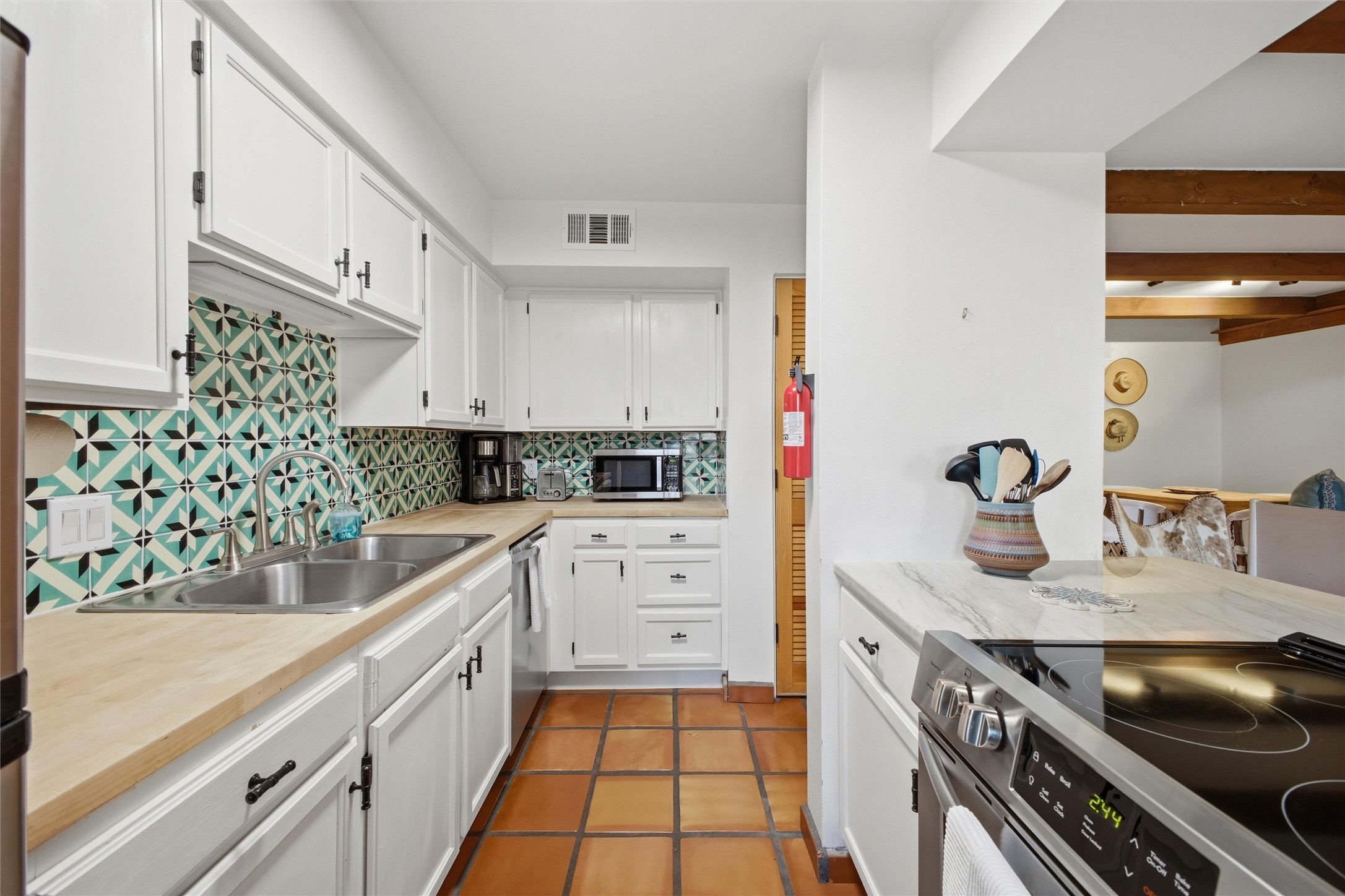 Welcome to this charming condo located on the northside, conveninetly located within close proximity to downtown & the Plaza. This wonderful property has been used as a furnished short term rental, and features saltillo tile flooring, vigas, solid wood doors, and more. Furnace & AC unit, as well as the water heater were all replaced in 2024. Kitchen features newer stainless steel appliances as well as a tiled backsplash. Newer vanities in both bathrooms, this one is turn-key. Available fully furnished if desired, you can continue to run this as an Airbnb with 2025 gross revenue of approximately $50,000. This complex is STR friendly. Come see it today.
