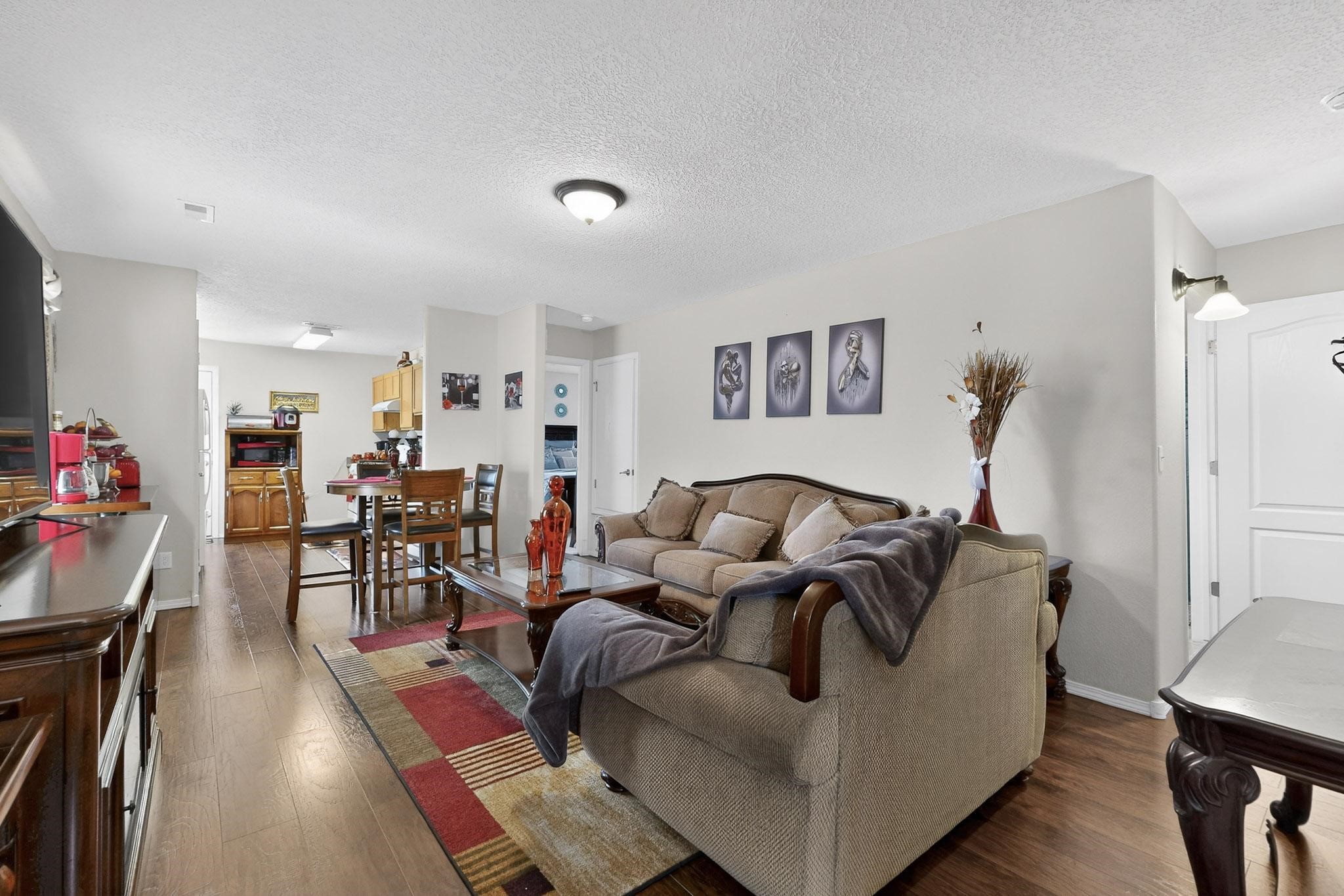 Welcome to this charming single-story home located in the desirable Colores del Sol community of Santa Fe. Built in 2013, this well-maintained residence offers a comfortable and functional layout with approximately 1,125 square feet of living space on a low-maintenance lot.Step inside to an inviting open-concept floor plan featuring a spacious great room that flows seamlessly into the dining area and kitchen, perfect for both everyday living and entertaining. The home offers three bedrooms, including a private primary suite complete with its own bath and a generous walk-in closet. Additional bedrooms are thoughtfully separated and also feature ample storage. Outside, enjoy a manageable yard ideal for relaxing or customizing to your taste. The property's convenient location provides easy access to shopping, dining, schools, and major commuter routes, making daily life effortless.Whether you're a first-time buyer, downsizing, or looking for an investment opportunity, this home delivers comfort, convenience, and value in one of Santa Fe's growing areas.