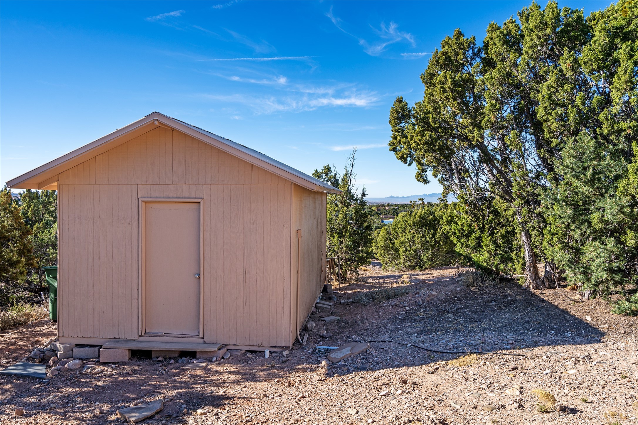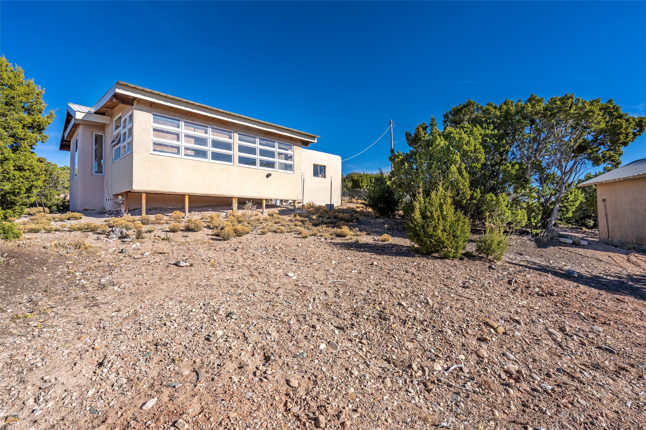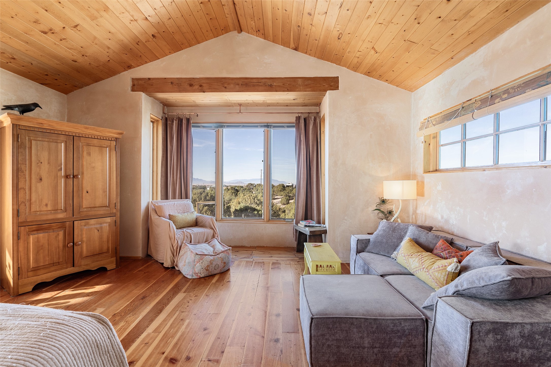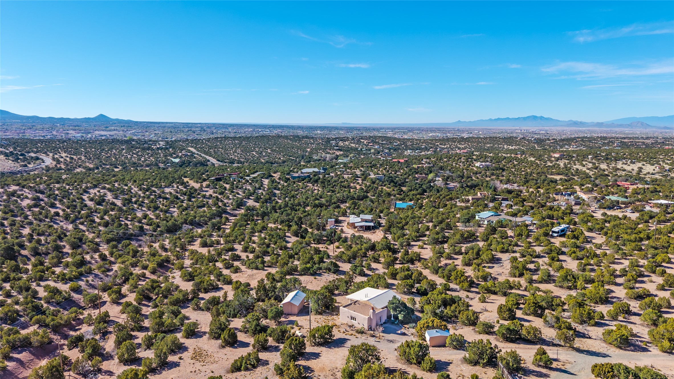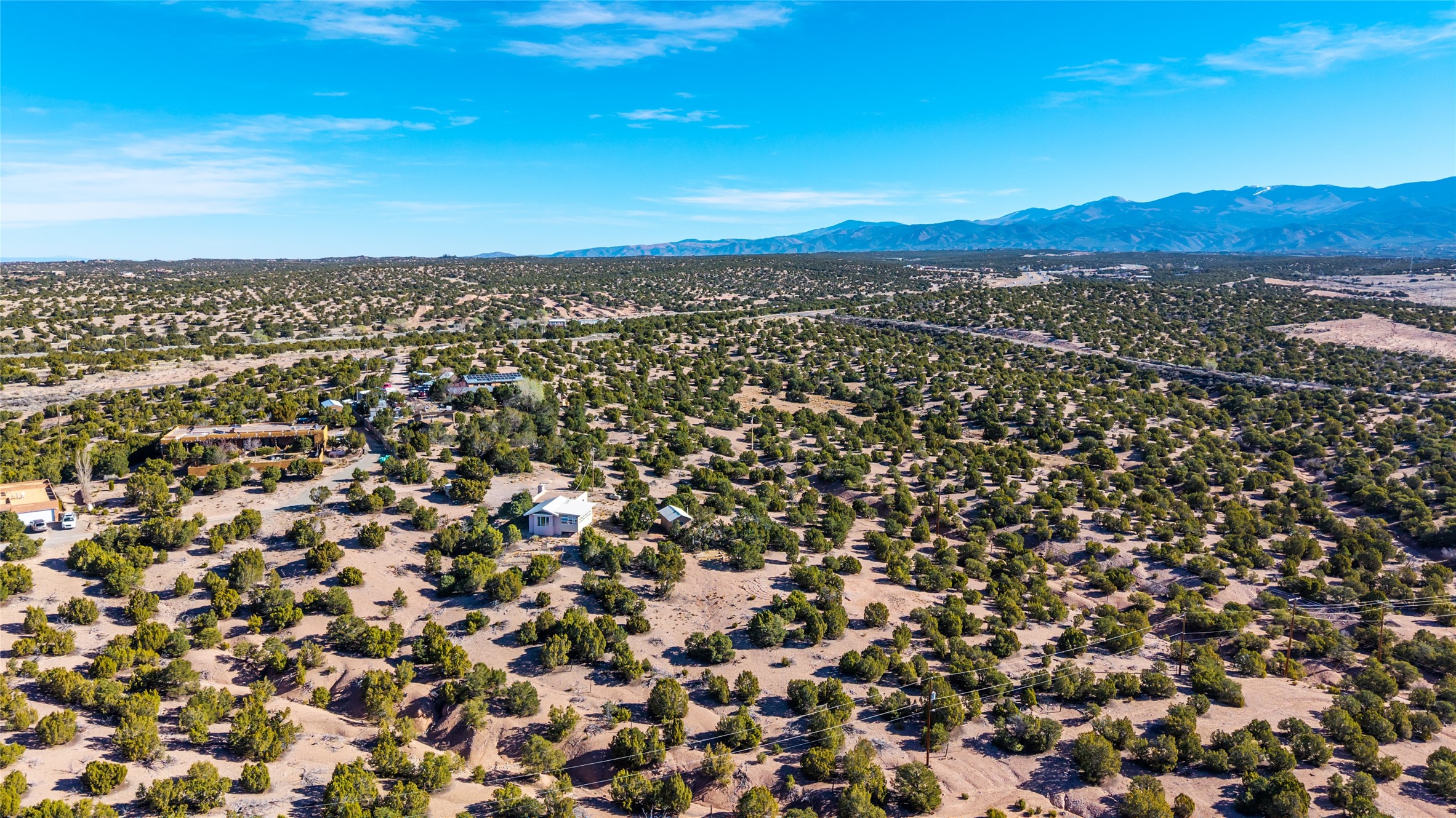 Set on 2.3 acres, this charming 1-bedroom, 1-bathroom home offers privacy, space, and sweeping views. With 1,294 square feet, the property features an open living and dining area with a wood-burning fireplace, creating a warm gathering space. The spacious primary bedroom includes soaring ceilings, wood flooring, a large walk-in closet, and radiant heat for added comfort. Just off the bedroom, a sunroom provides a bright and relaxing space to take in the surrounding landscape, with gorgeous views of the Sangre de Cristo Mountains and Sandia Mountains. The property is being sold with a separately deeded, adjacent lot, offering the opportunity to build, ideal for future development, investment potential, or added privacy. A unique opportunity for those seeking a serene setting with room to expand or personalize. The home is currently occupied-- do not enter or drive onto the property without a confirmed appointment.