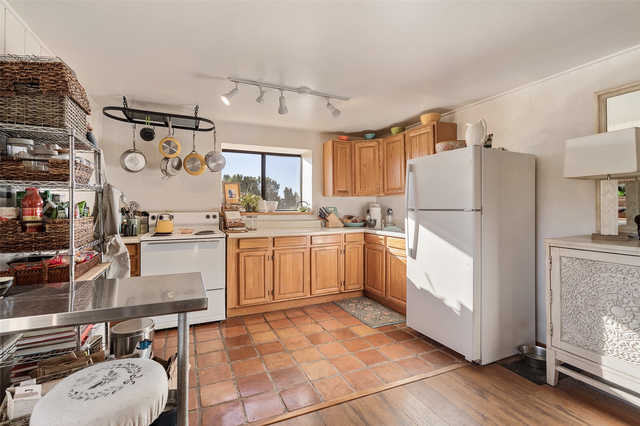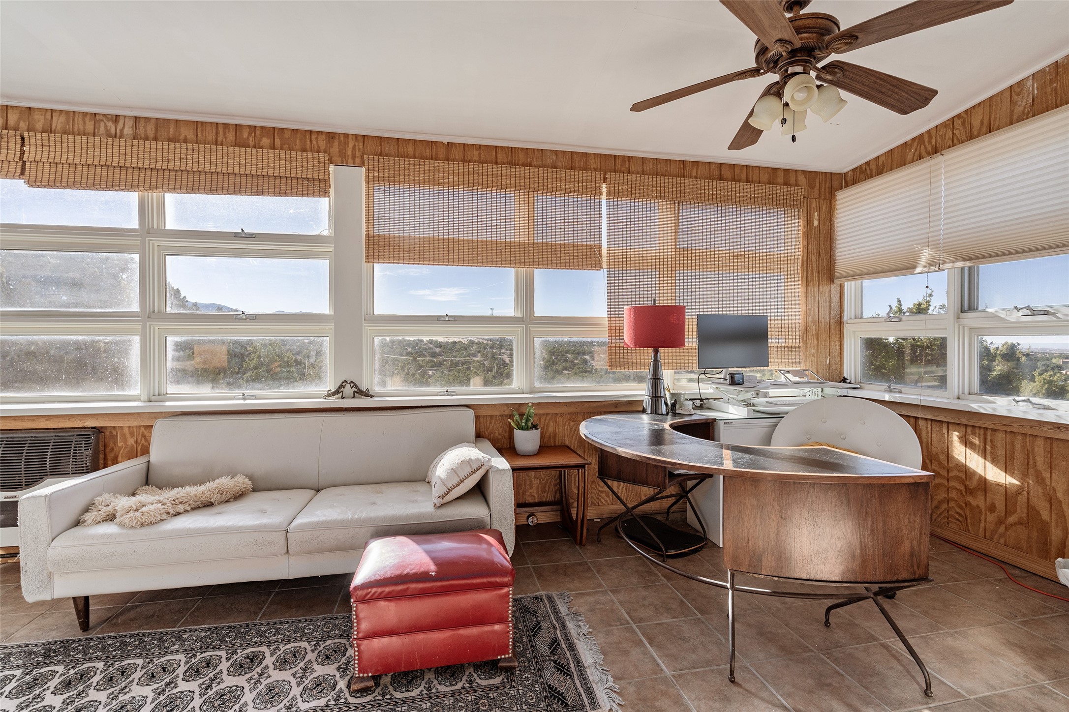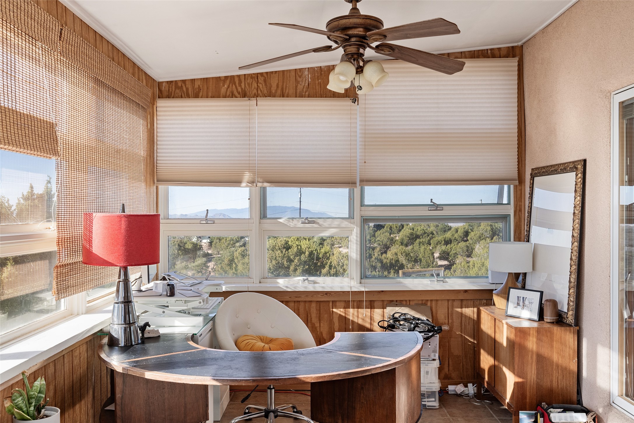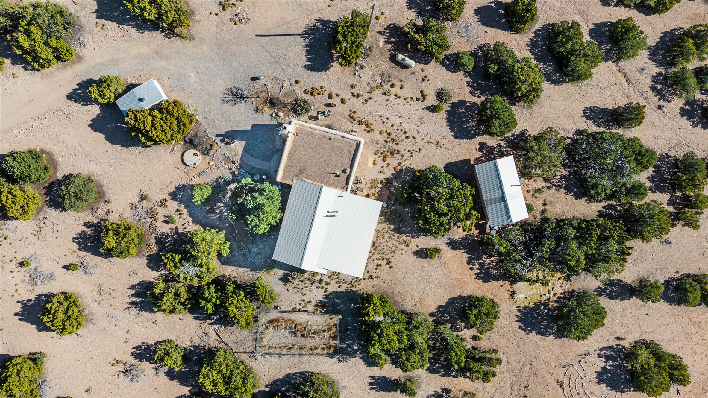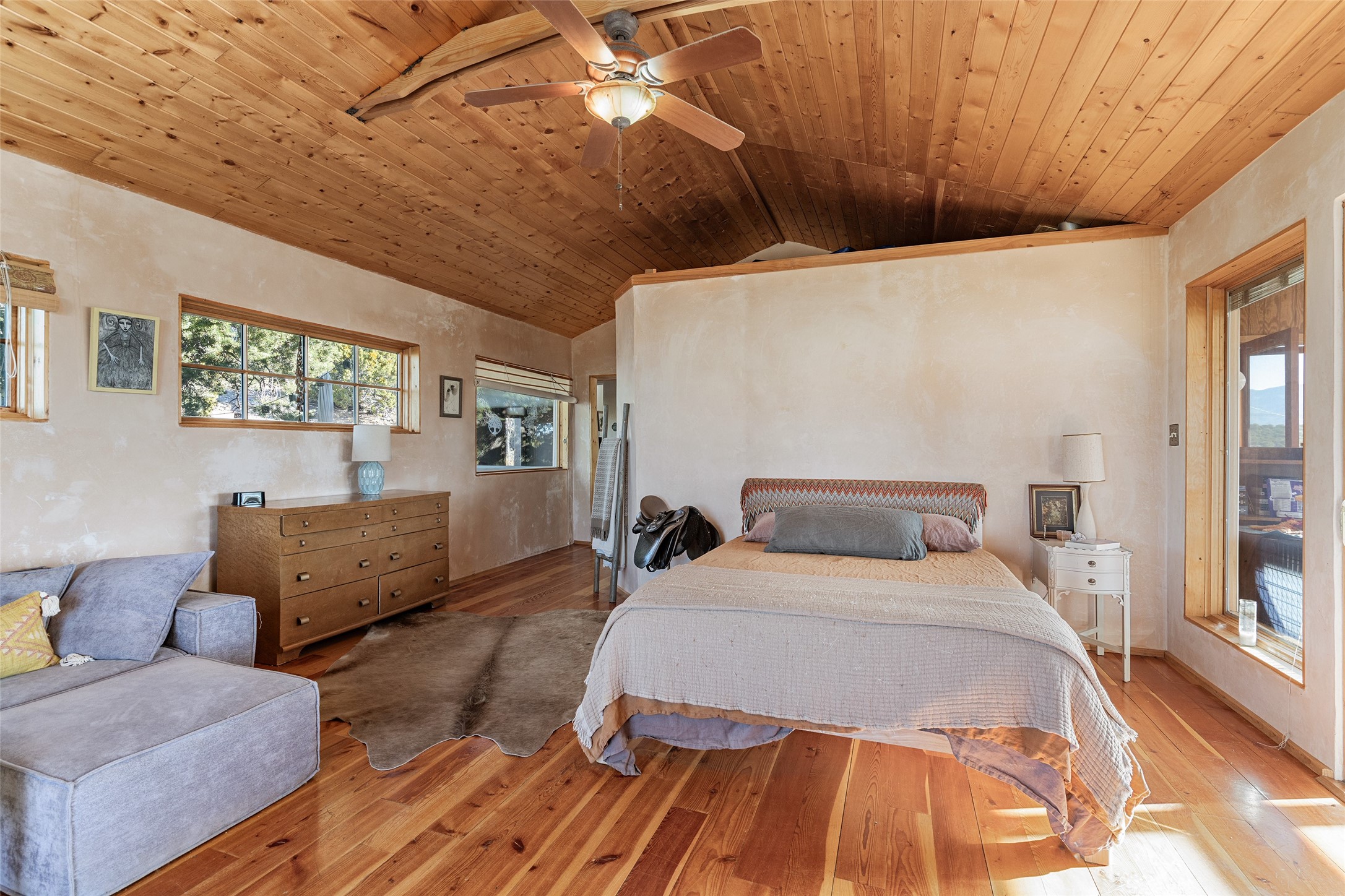 Set on 2.3 acres, this charming 1-bedroom, 1-bathroom home offers privacy, space, and sweeping views. With 1,294 square feet, the property features an open living and dining area with a wood-burning fireplace, creating a warm gathering space. The spacious primary bedroom includes soaring ceilings, wood flooring, a large walk-in closet, and radiant heat for added comfort. Just off the bedroom, a sunroom provides a bright and relaxing space to take in the surrounding landscape, with gorgeous views of the Sangre de Cristo Mountains and Sandia Mountains. The property is being sold with a separately deeded, adjacent lot, offering the opportunity to build, ideal for future development, investment potential, or added privacy. A unique opportunity for those seeking a serene setting with room to expand or personalize. The home is currently occupied-- do not enter or drive onto the property without a confirmed appointment.