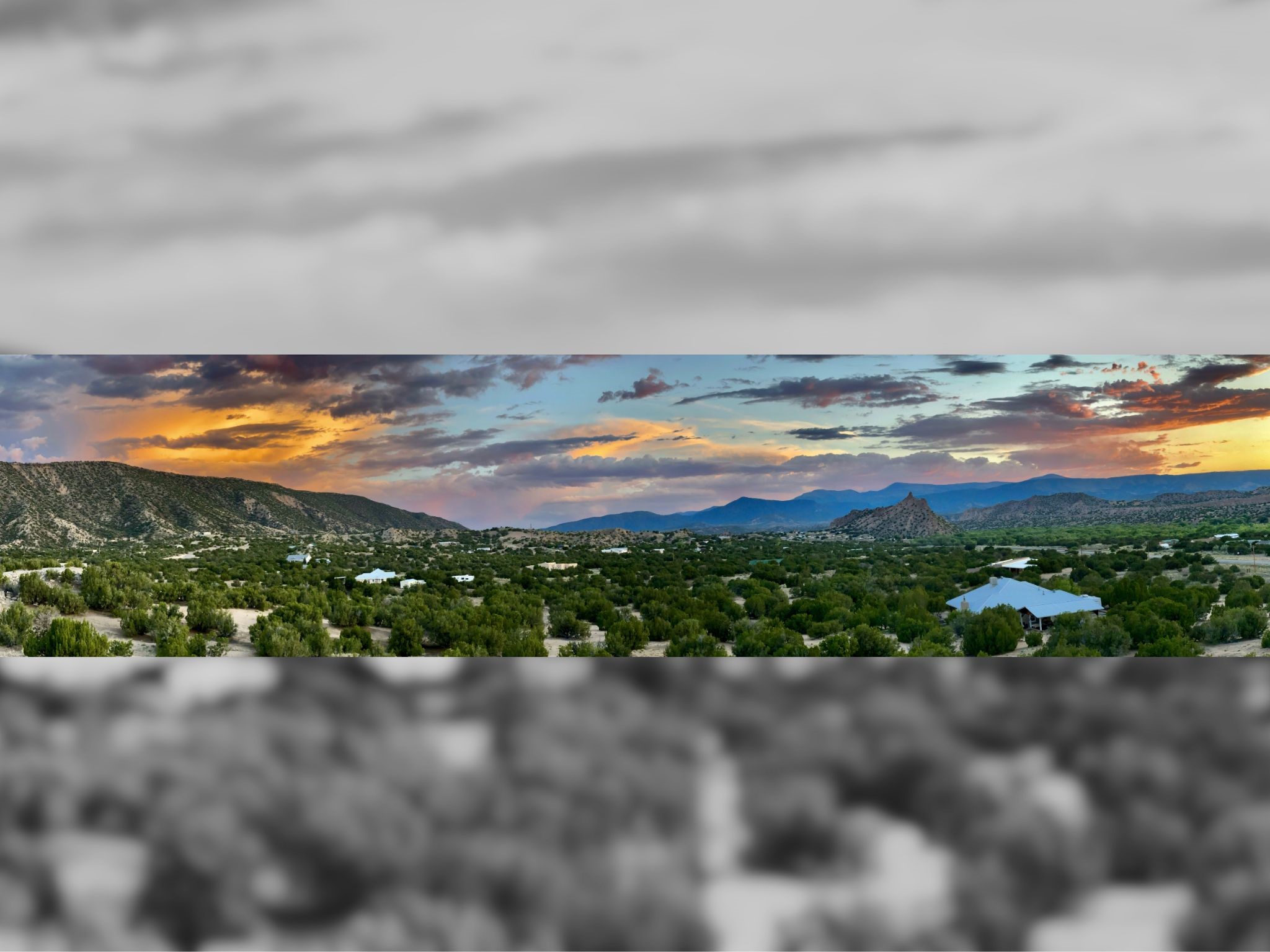 Heart-stopping views and truly astonishing vistas define this exceptional 2007 custom home set on 5+ private acres, including its own hoodoo rock formation. Built with highly insulated R-32 Rastra construction, this residence offers a rare blend of efficiency, comfort, and luxury just 13 minutes south of Ojo Caliente Hot Springs, 35 minutes to Los Alamos, 45 minutes to the Santa Fe Plaza, and an hour to Taos. A 5-zone ductless mini-split system added in 2024 provides year-round comfort.Located within the gated community of Rio Ojo Caliente, this home welcomes you with a covered portal entry and a hand-carved arched door. Inside, the grand living room features diamond-finish plaster walls, exposed wooden beams, and distinctive architectural details. The home has also benefited from recent stucco maintenance, full canales repair, sealing, and repainting, a freshly re-sealed roof in 2026 with warranty, and septic system servicing completed.Designed for comfort and privacy, the home offers excellent bedroom separation. The spacious primary suite opens to a wraparound covered composite deck portal with sweeping views of the Ojo Caliente River Valley, cottonwoods, Sierra Negra, Black Mesa, and the Pajarito ski area. The en-suite bath includes dual walk-in closets, soaking tub, and walk-in shower.The kitchen flows to the rear portal through French doors, ideal for entertaining or enjoying New Mexico sunsets. Both front and rear portals feature metal roofing added in 2023, offering 815 square feet of covered outdoor living.Additional highlights include 2 living areas, a formal dining room, oversized heated garage with two storage closets, and a 30-amp RV connection. The driveway was improved with new base course and grading in 2025.Private and quiet yet less than an hour from the restaurants, galleries, and culture of Santa Fe and Taos, with nearby hiking, biking, fishing, rafting and wildlife viewing.