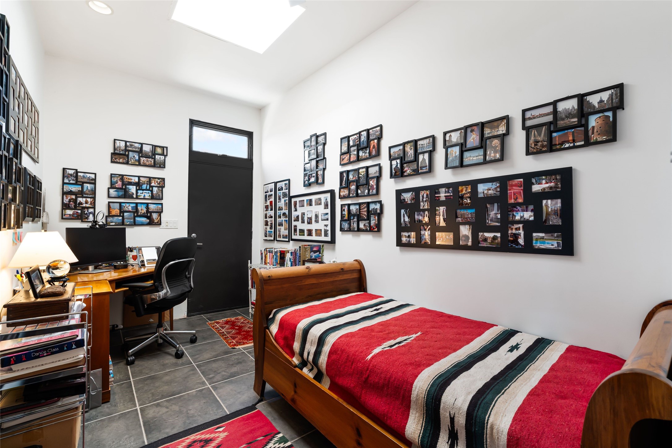 Located in the desirable Heartstone community, only a ten-minute drive to the center of Santa Fe, this Santa Fean Magazine award-winning, charming and unique 3-bedroom, 3.5-bath soft contemporary home and guesthouse offers breathtaking mountain views. Single level; no interior stairs. High end architectural design with warm wood beams, plentiful built-ins and Venetian plaster. Spacious living room and library/study with 14 ft. ceilings, stately fireplace and access to outdoor portals for expanded entertaining. Chef's kitchen is appointed with double oven, 6-burner gas range, wine cooler, double sink and center island with prep sink and eating counter. Off the kitchen is a separate dining area with a wood-burning fireplace and secondary living/media room with a built-in desk area and wood burning stove--an ideal place to huddle on wintry nights. Public and private spaces radiate from the entry hall and are separated by a an Asian-inspired atrium and waterfall pond. The 898 sq. ft. guesthouse features a living/dining area, kitchen, bedroom, full bath, an office and a sizable flex space now being used as an art studio. Oversized 2-car heated garage. Newer furnace, hot water heater and roof. A spectacular, low maintenance, designer landscaped backyard includes a water feature. Heartstone is characterized by half-acre lots, thoughtfully arranged around a shared meadow and many acres of permanently dedicated open space, fostering a connection to nature and tranquility. For those who enjoy an active lifestyle, the community is surrounded by a network of trails, granting access to the La Tierra Trails--a multi-use system featuring 25 miles of paths designed for hikers, cyclists, and equestrians alike. The community house serves as a venue for social gatherings and activities, complemented by an exercise room, guest bedroom/bathroom, large dining room and media room. Located in the desirable Tano Road area, this residence provides easy access to the vibrant Santa Fe Plaza, the artistic charm of Canyon Road, the Santa Fe's Farmer's Market, and the renowned Santa Fe Opera.