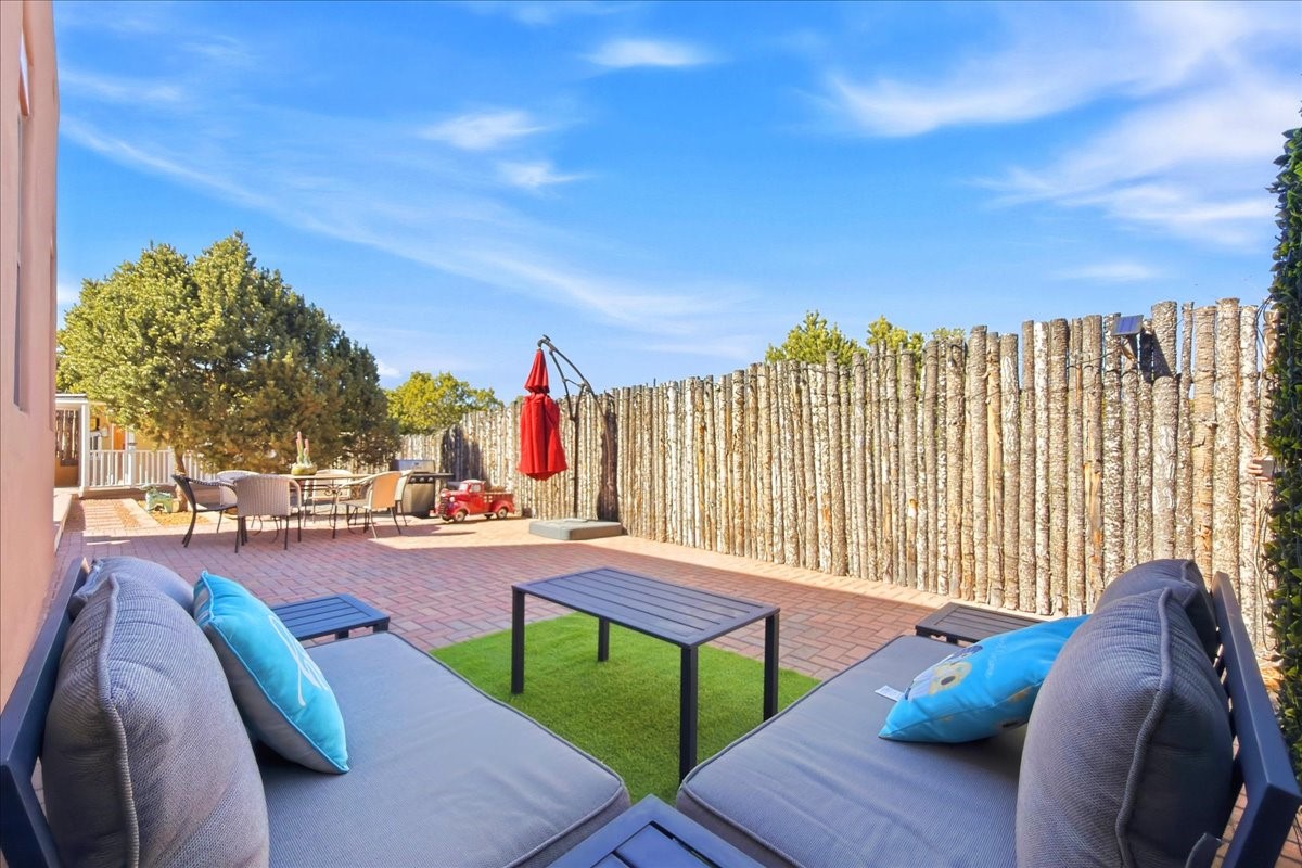Nestled in the foothills in the highly desirable Las Estrellas neighborhood on Santa Fe's Northside, this thoughtfully designed single-level home combines modern comfort, amazing mountain views, and a prime location just minutes from the Plaza and the Santa Fe Opera with easy access to 599 and Los Alamos. This amazing property has an abundance of outdoor space with beautiful landscaping offering the perfect setting to relax, take in stunning views of the Sangre De Cristo Mountains, and entertain your guests. The large yard includes a nice portal sitting area along with turf and a playhouse/storage. Easy access to nearby walking trails. Open, inviting, light and bright floorplan flows perfectly. Beautifully maintained living space, the home exudes warmth and functionality. Has radiant floor heat. Come see for yourself why this home is one of the great values available in today's marketplace in Santa Fe!