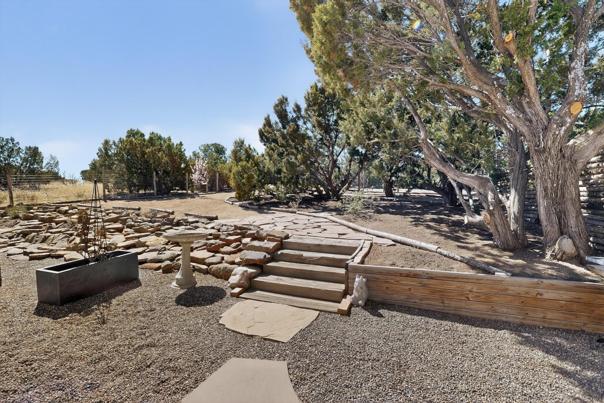 Welcome home to the Jewel of Eldorado with incredible VIEWS and privacy at the end of a long driveway. Imagine sitting on your private portal enjoying a glass of wine and taking in the beautiful mountain sunsets. This home has a split floor plan providing 2 primary suites all on one level! Enjoy and relax in your screened in back porch accessed from the house! The exterior boasts a newer roof, newer stucco (with warranties). The interior has been re-imagined while maintaining its character and has been lovingly maintained - all bathrooms, kitchen and laundry room countertops are soapstone. Original Tile de Santa Fe Flooring, solid wood beams and tongue and groove ceilings, and Talavera tile accents in all baths. 4 newer ductless mini splits, newer kitchen appliances, laundry room with additional floor to ceiling cabinetry, landscaping has enhanced hardscaping and planted trees, newer exterior gates and to top it off ... finished garage has a new ductless mini-split for studio or workshop comfort! Exterior shed, located at the end of a cul-de-sac and greenbelt, walled front courtyard patio. Property is elevated for privacy and views. No carpet, no laminate. Call listing broker for complete list of enhancements! The home is truly a gem rarely found and literally move-in ready!