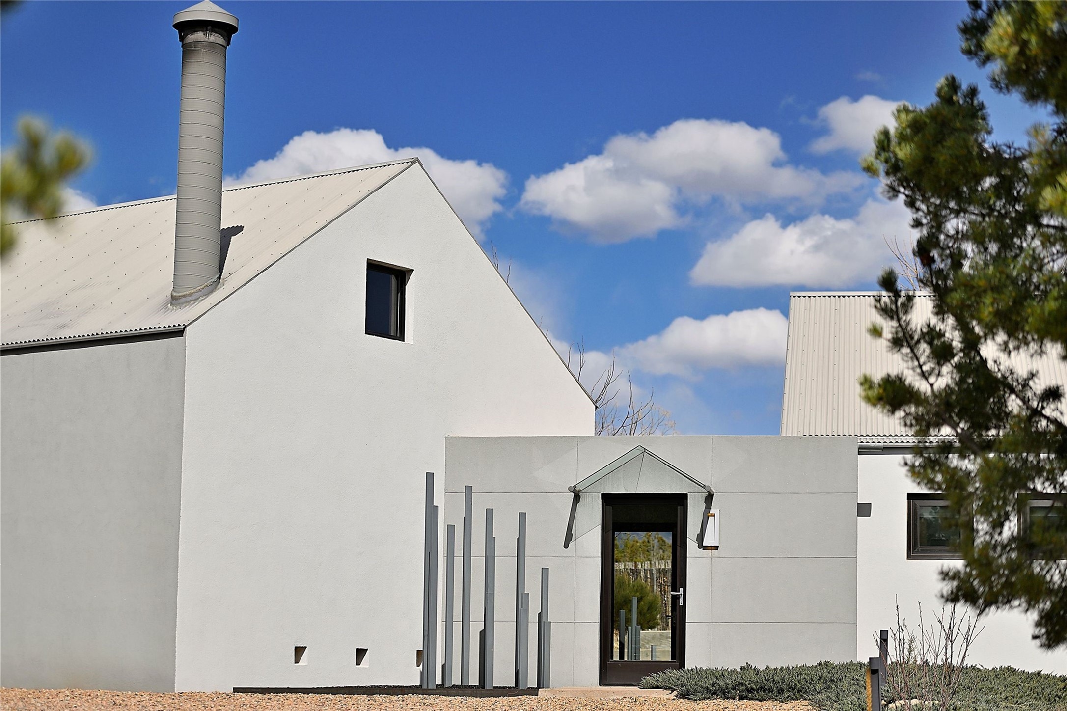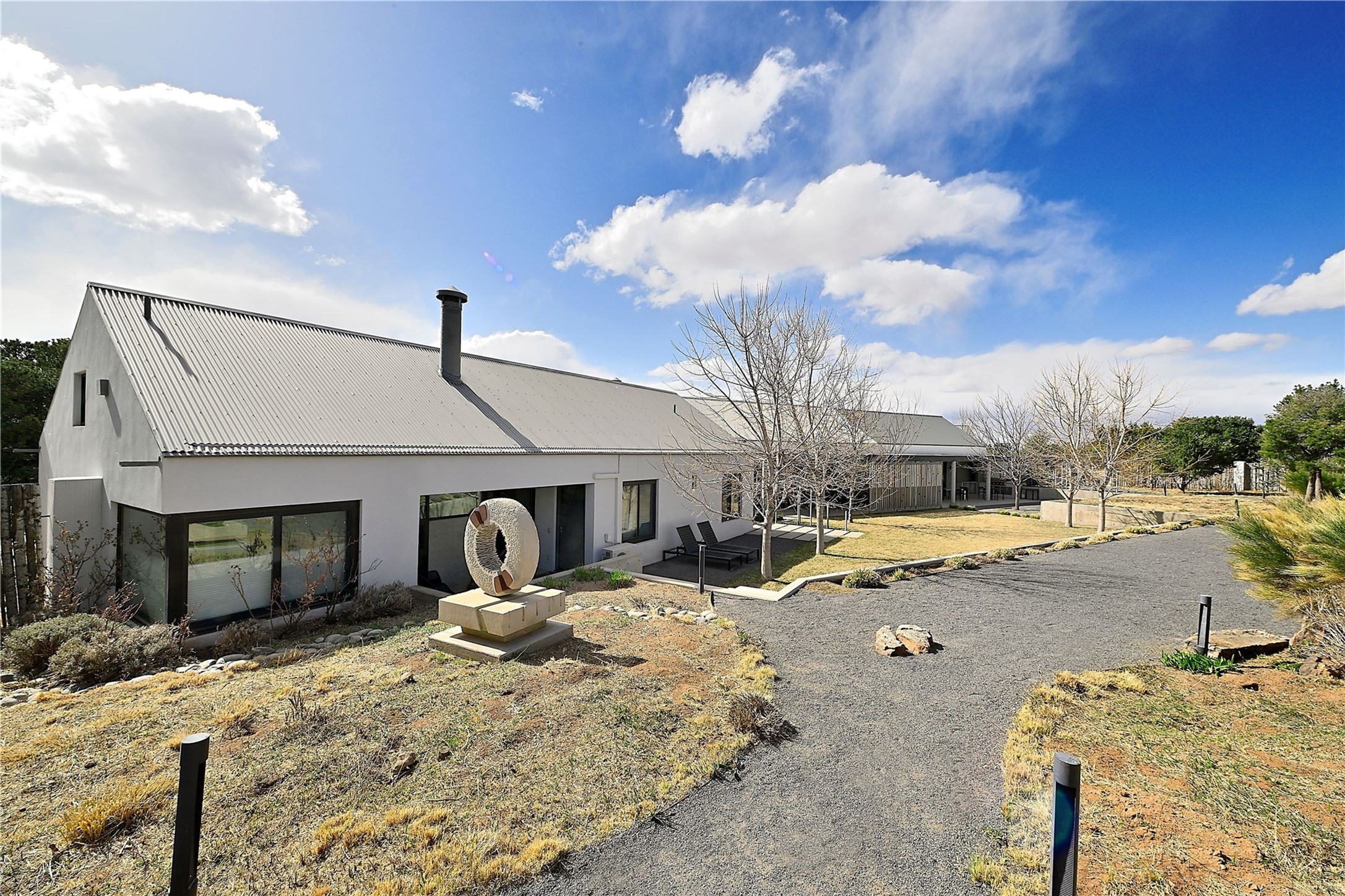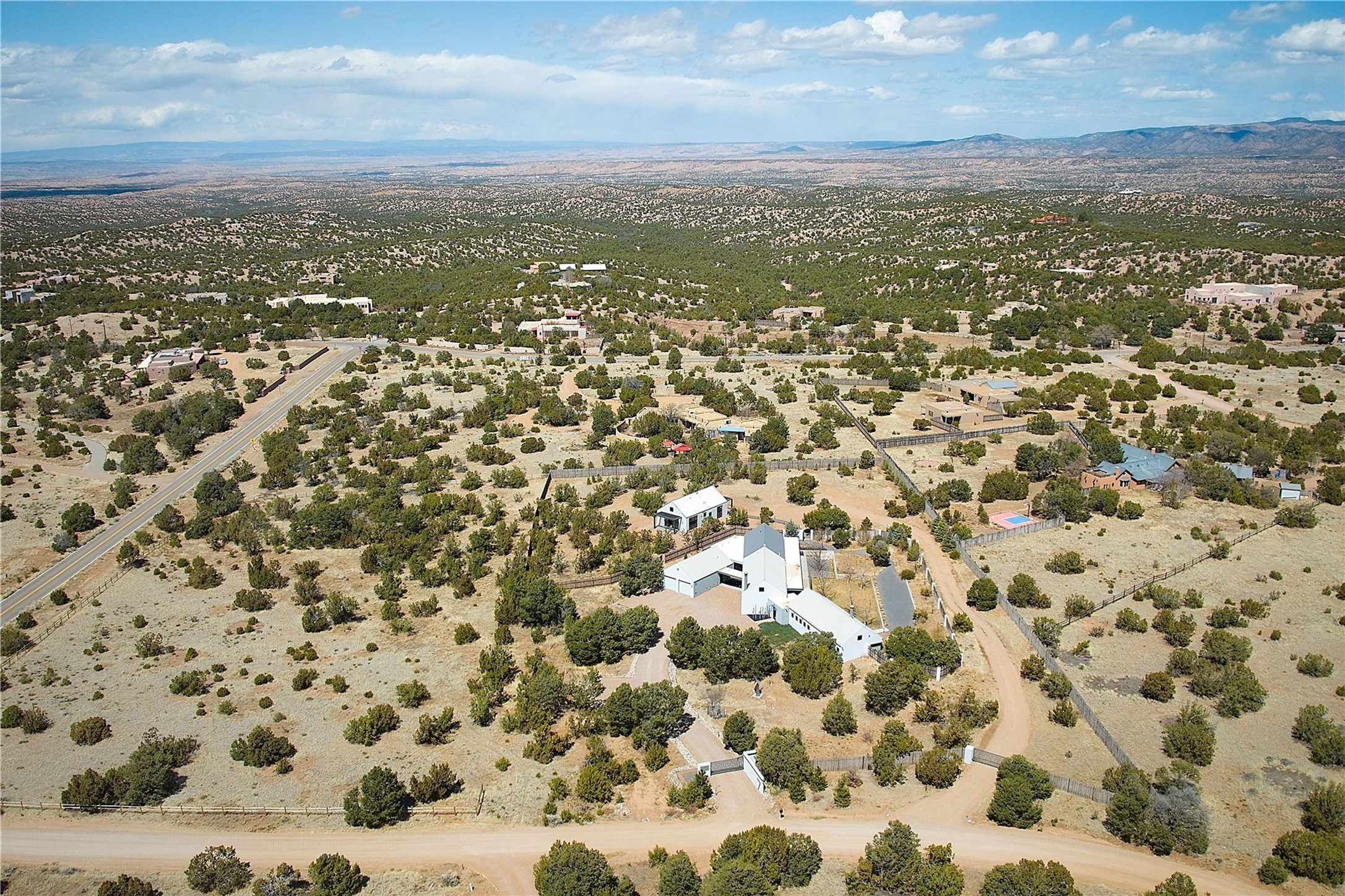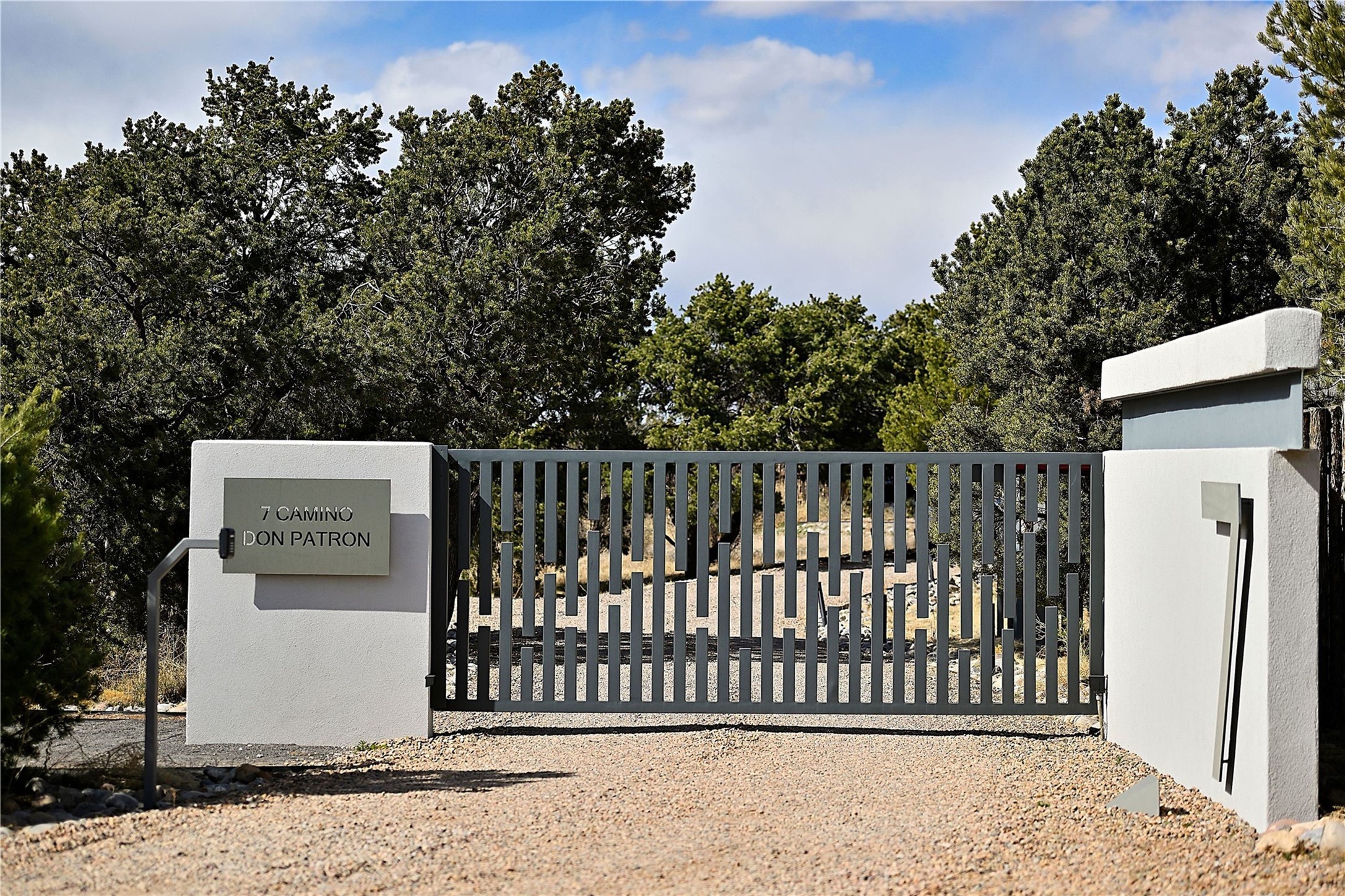 Wind your way along lovely Tano Rd. to this fabulous creatively contemporary estate. The original part of the home was designed by award winning architect, Jeff Harner and built in 2000. In 2018, an addition paid homage to his design, more than doubling the size of the home, but keeping a continuity to the conceptual contemporary creation. Natural light from windows integrate into every part of the home melding its beautifully composed and landscaped exteriors with its exceptional interior spaces. In addition to its pure design aesthetic of sleek and sophisticated living, great attention went into making the home an organizational dream, with ability to store and organize within drawers, cabinetry and closets. This unparalleled home provides an exquisite place to entertain and enjoy life. Quality materials, cabinetry, appliances, fixtures and finishes create one of the most strikingly designed homes in all of Santa Fe.The home has a crisp, light and enchanting feel, with detailed perfection in both design and execution. The rooms are Spacious and versatile. Elegant landscaping and a private gated setting assure views and tranquility. A 2 bedroom guest house was added in 2023 and the adjacent 2.5 acre lot was purchased for added privacy. The lot is offered separately.