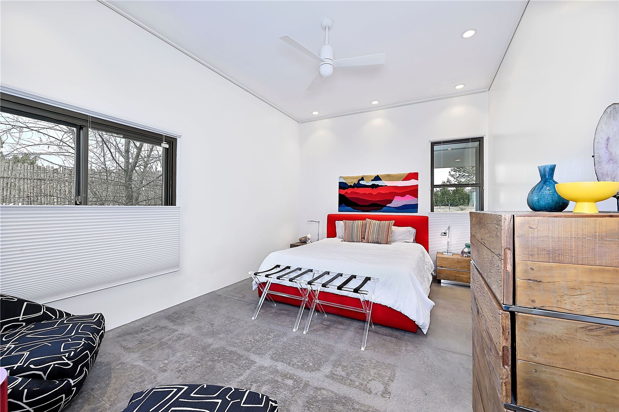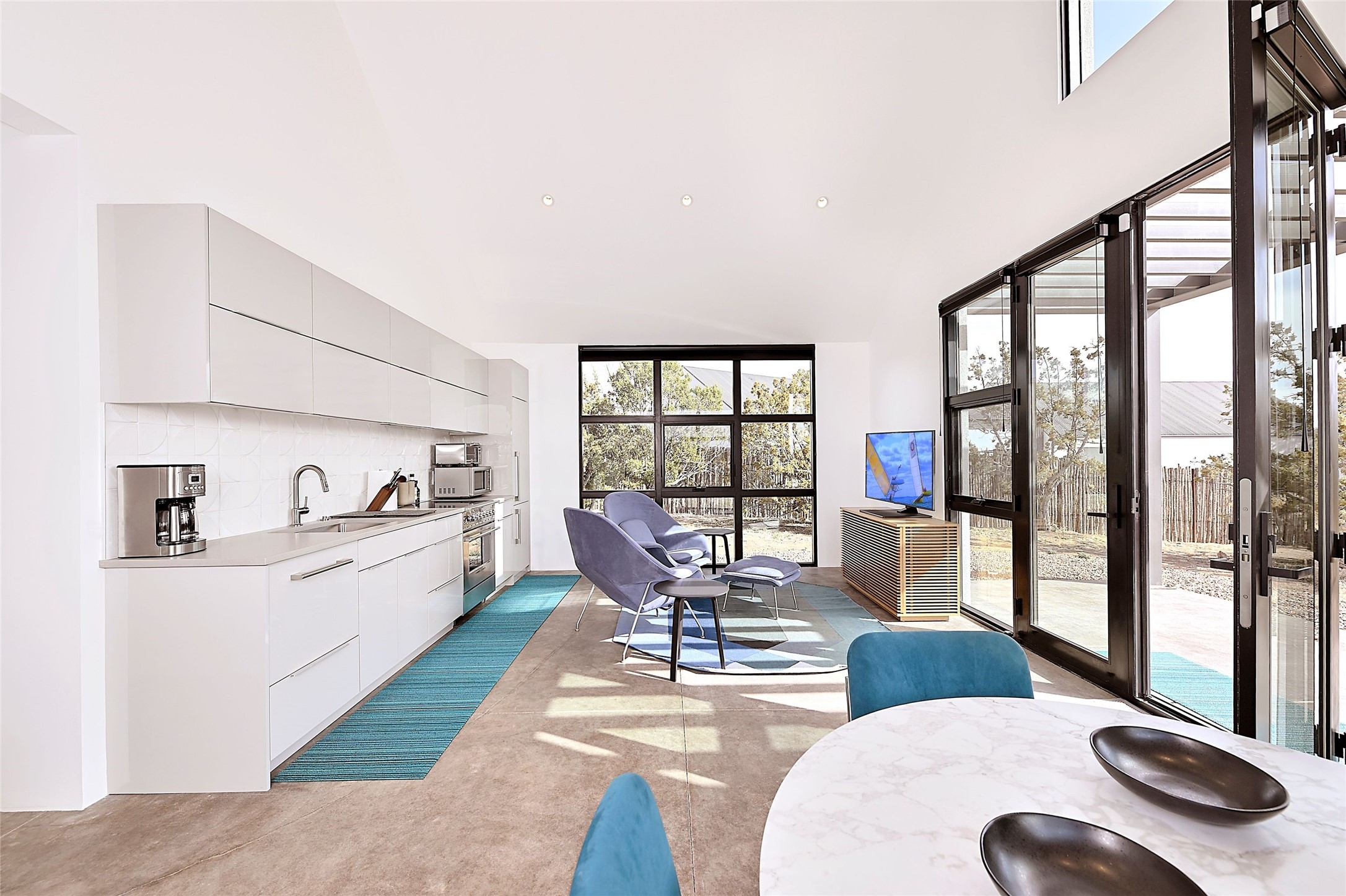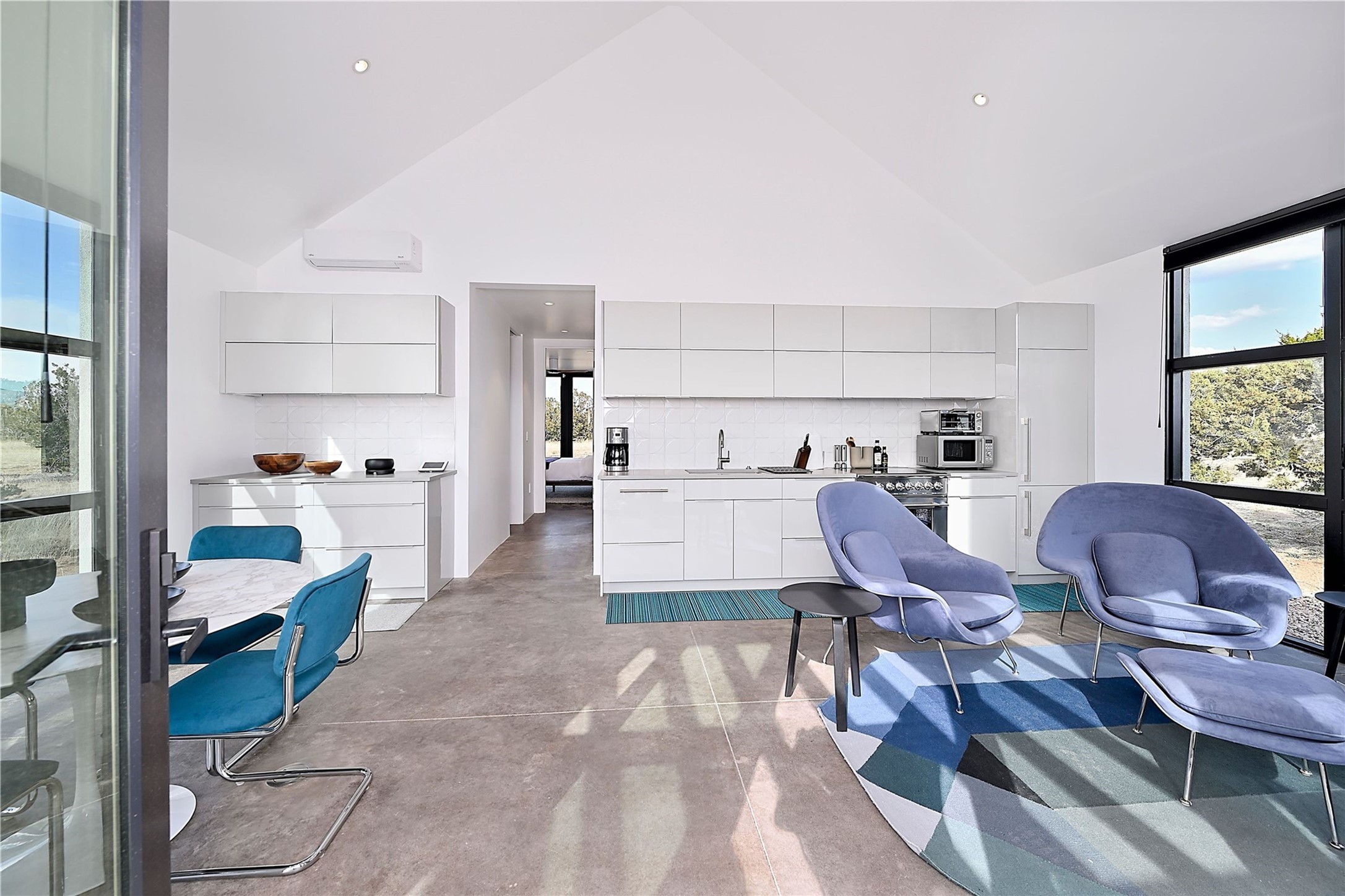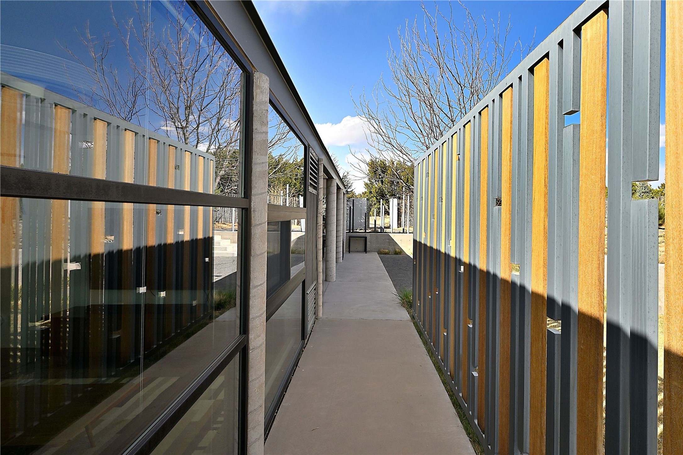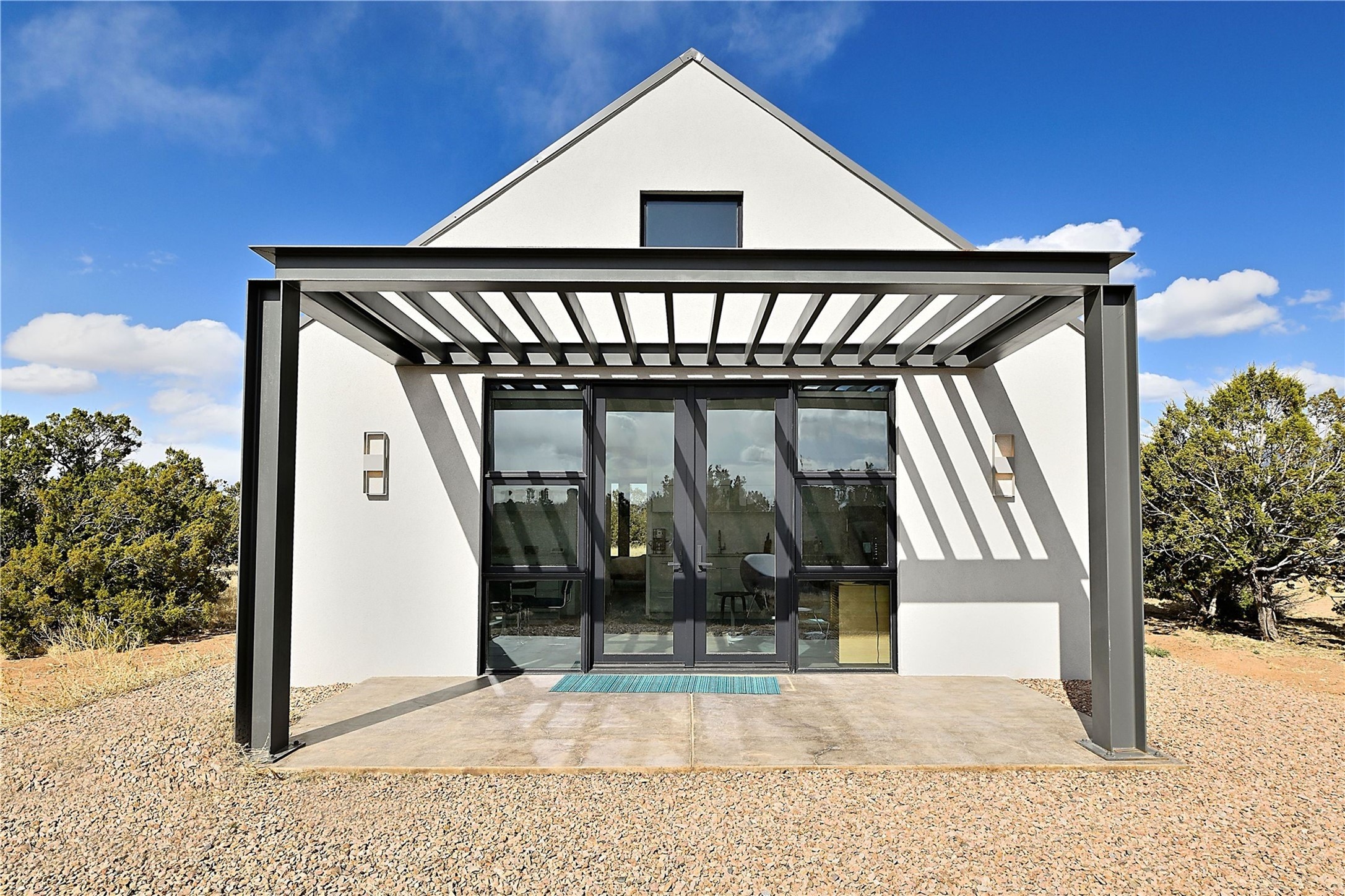 Wind your way along lovely Tano Rd. to this fabulous creatively contemporary estate. The original part of the home was designed by award winning architect, Jeff Harner and built in 2000. In 2018, an addition paid homage to his design, more than doubling the size of the home, but keeping a continuity to the conceptual contemporary creation. Natural light from windows integrate into every part of the home melding its beautifully composed and landscaped exteriors with its exceptional interior spaces. In addition to its pure design aesthetic of sleek and sophisticated living, great attention went into making the home an organizational dream, with ability to store and organize within drawers, cabinetry and closets. This unparalleled home provides an exquisite place to entertain and enjoy life. Quality materials, cabinetry, appliances, fixtures and finishes create one of the most strikingly designed homes in all of Santa Fe.The home has a crisp, light and enchanting feel, with detailed perfection in both design and execution. The rooms are Spacious and versatile. Elegant landscaping and a private gated setting assure views and tranquility. A 2 bedroom guest house was added in 2023 and the adjacent 2.5 acre lot was purchased for added privacy. The lot is offered separately.