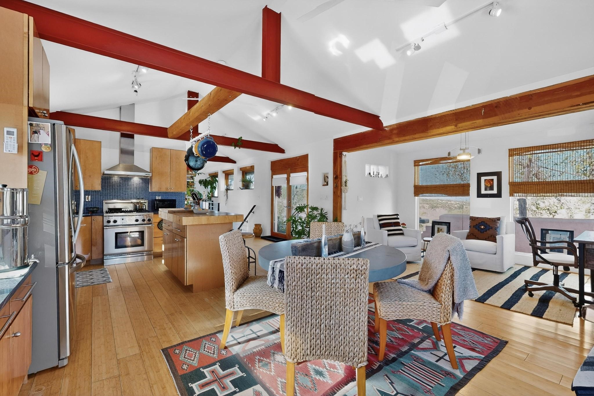 Nestled in the scenic, tree-covered hills of Chupadero. Enjoy this tastefully eclectic hideaway just 18 minutes from downtown Santa Fe. This home is flooded with natural light and spectacular views in every direction. Minutes from Rancho Encantado, Tesuque Village Market and El Nido. This is a home you must come and experience!