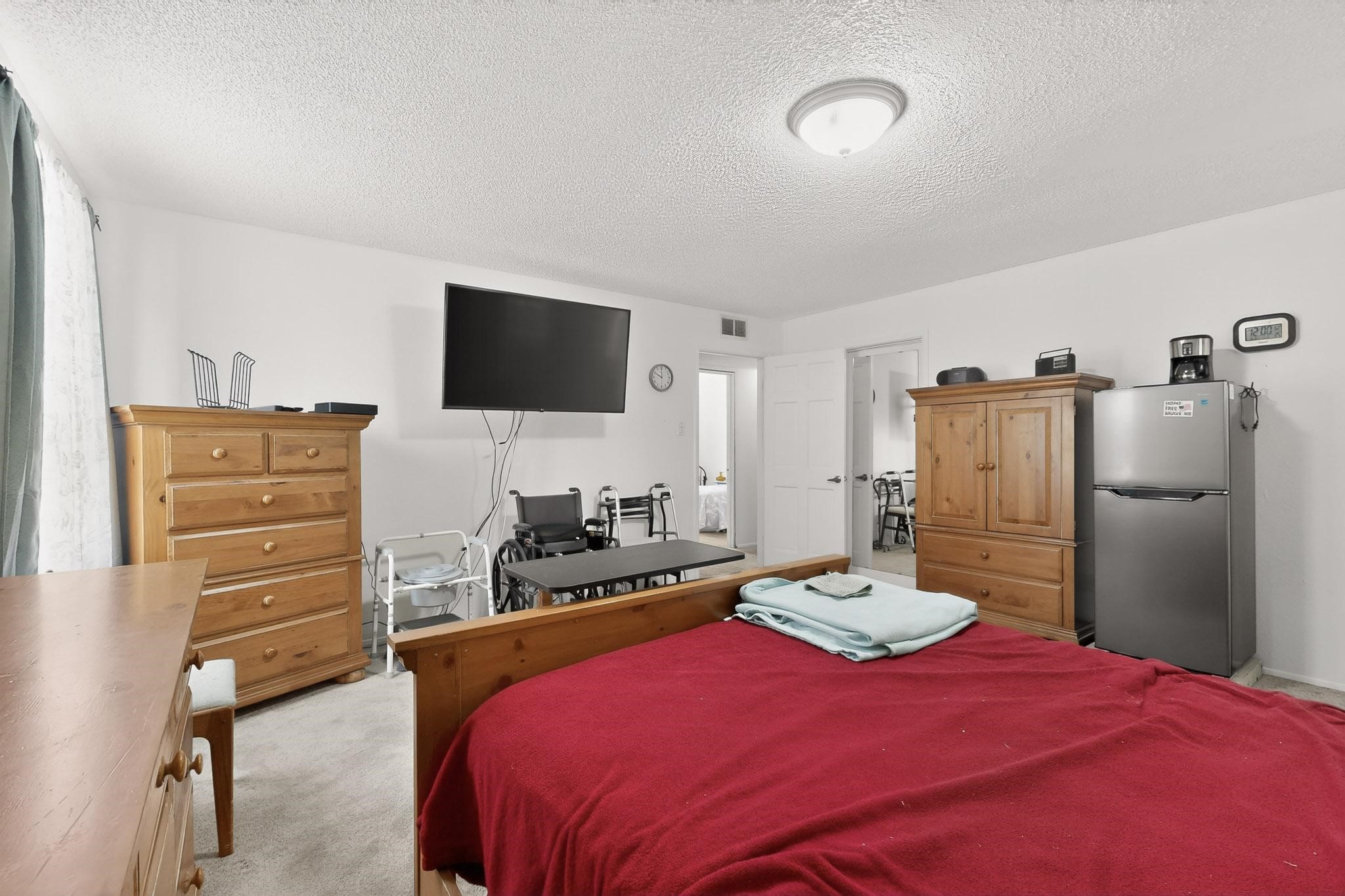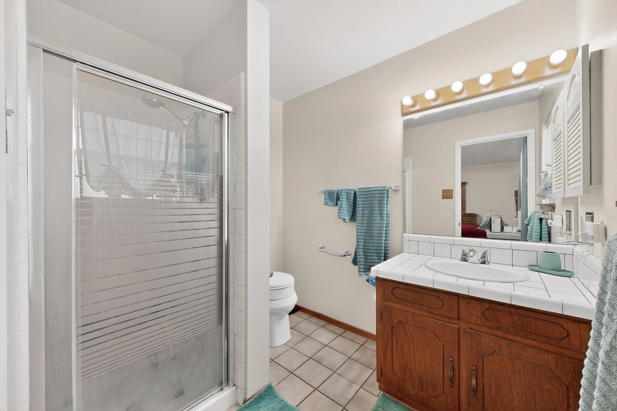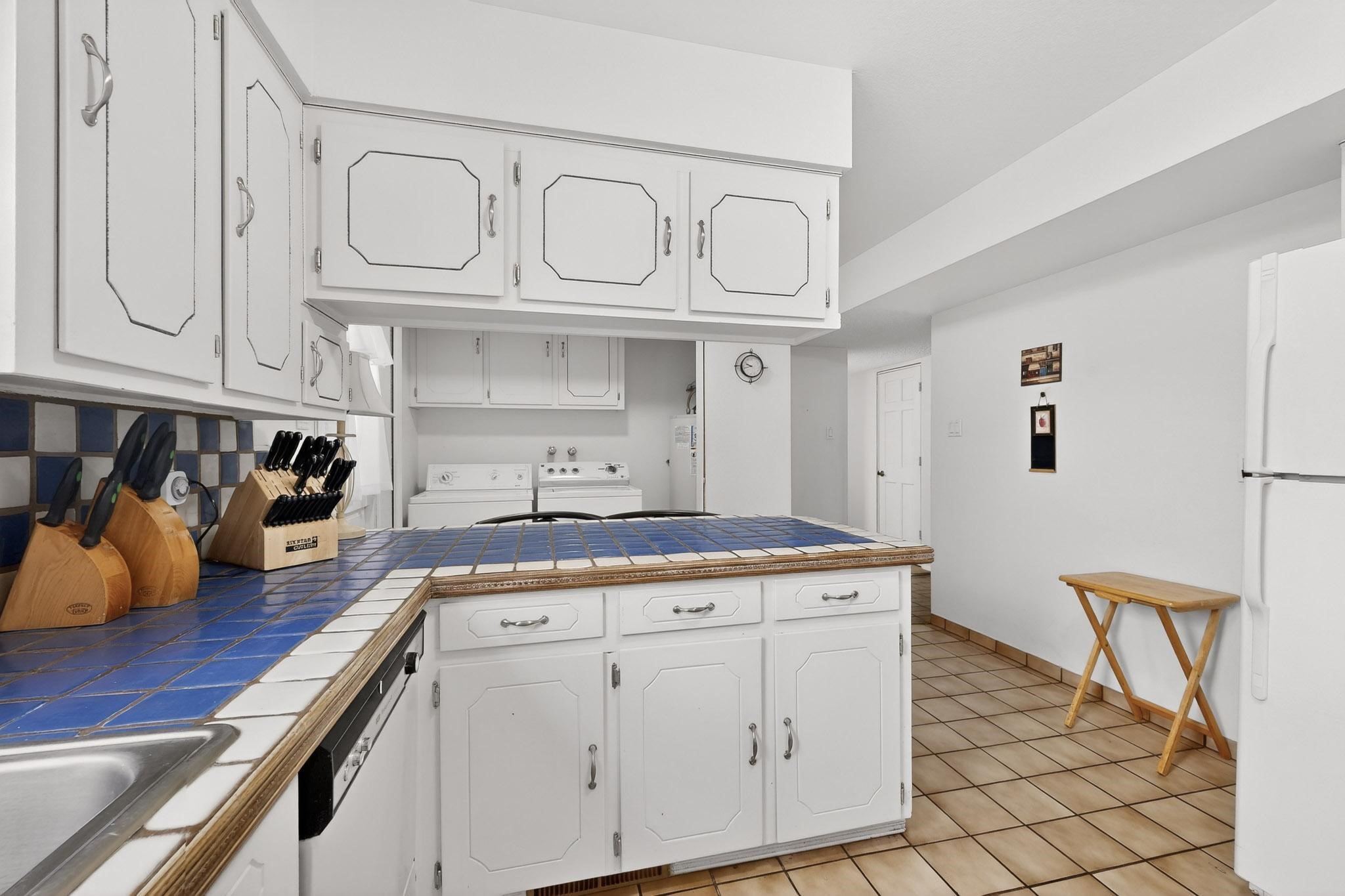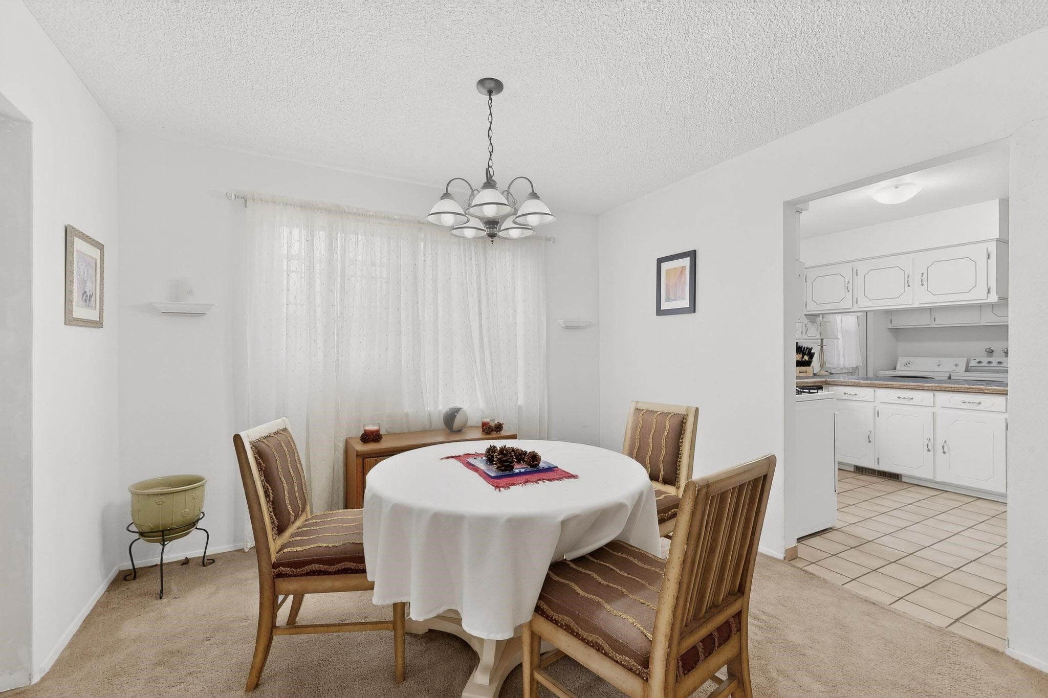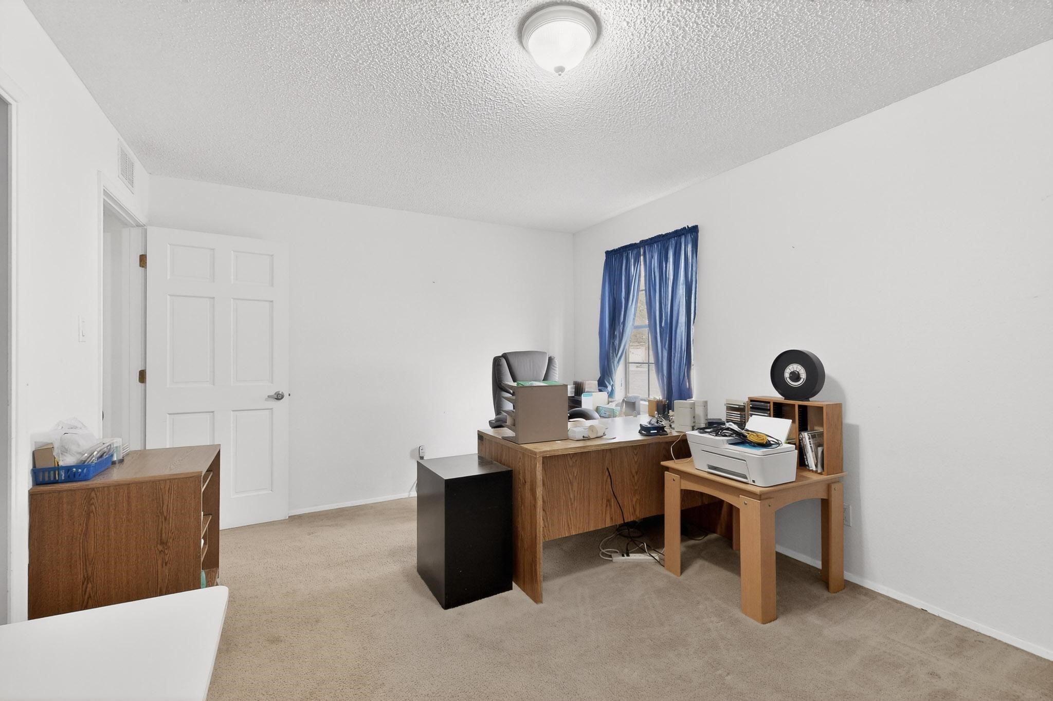 Spacious single level home on large 1/3rd acre corner location in well established Via Caballero II subdivision. This contemporary pueblo style 3 bedroom, 2 bath home features a large living room and a secondary family room with a corner kiva fireplace for cosy winters. There is a formal dining room, a breakfast bar and nook in the country kitchen, and a patio door leading out to the portal and garden ideal for summer and winter entertaining. The main bedroom suite is separated from the guest bedrooms by a hallway for privacy. One of the guest bedrooms was set up for an office. The home has some interior popcorn ceilings that may contain some asbestos which was customarily used at the time of construction. A large 2 car garage also includes a separate boiler for heat-condition unknown, and plenty of storage. There is also a precautionary lead paint addendum although the home was built later than 1978. This home has been much loved and is waiting for a new owner to bring it up to date and to it's former glory.