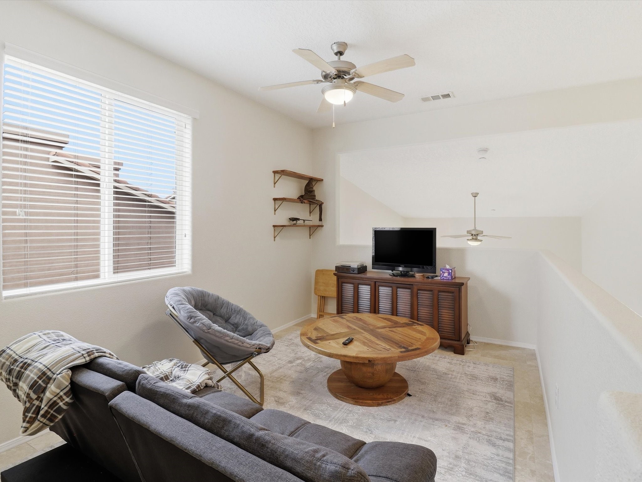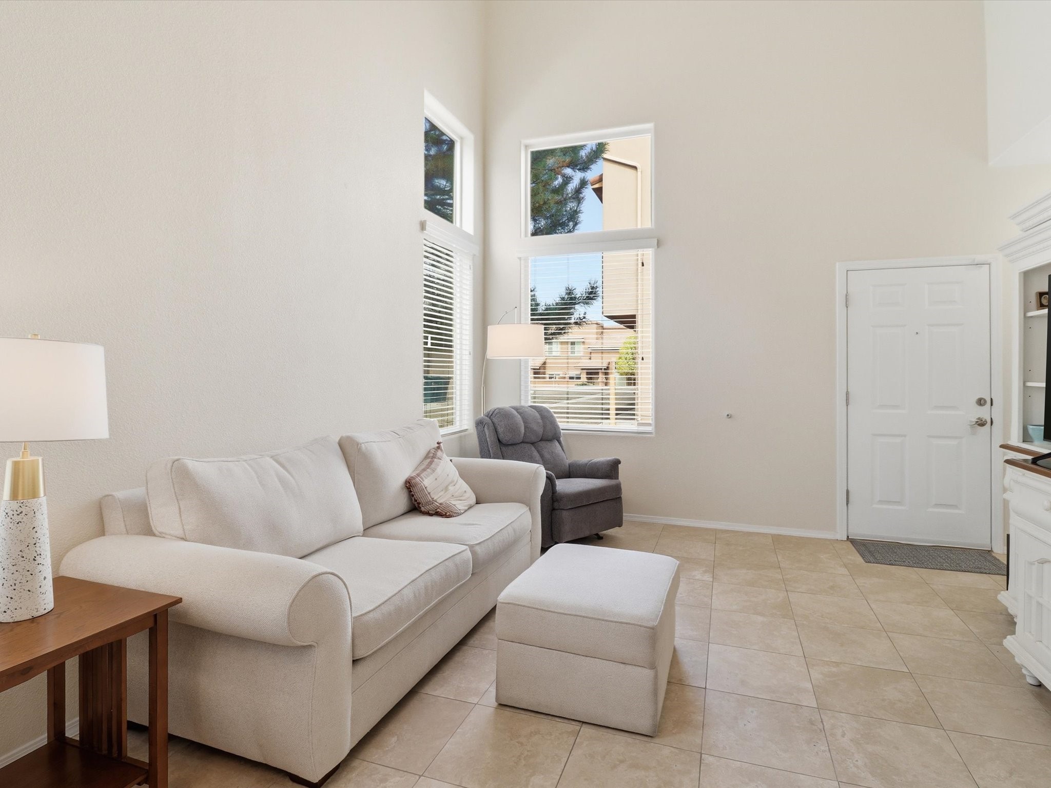 Whether you're seeking the perfect starter home or a stylish lock-and-leave retreat, this sun-drenched two-story condo offers comfort, convenience, and modern flair.Built in 2011, this 2-bedroom, 2-bath sanctuary features soaring ceilings and abundant natural light streaming through well-placed windows, creating a bright and airy atmosphere throughout. The thoughtfully designed floor plan includes a main-level primary suite for easy living, while the upper level offers a second bedroom, full bath, and a versatile loft--ideal for a home office, workout space, or additional living area.The open-concept living space flows seamlessly, creating an inviting environment for both relaxing and entertaining. The well-appointed kitchen is a standout, featuring plentiful cabinets, ample workspace, and a large pantry--perfect for any home chef. Travertine tile adds warmth and timeless appeal throughout the home.The generous primary suite offers a peaceful retreat with a full ensuite bath and walk-in closet. Additional highlights include carpet and travertine flooring, forced air heating with central refrigerated air, and a finished two-car garage with direct entry and interior access.All appliances convey, including the dishwasher, range/oven, refrigerator, washer, and dryer--making this a truly turnkey opportunity.Tucked away on a quiet cul-de-sac, this home offers a serene setting while remaining conveniently located near restaurants, shopping, and parks. Enjoy easy access to Highway 599 for commuters, and nearby San Isidro Village Park provides a wonderful space for outdoor enjoyment with playgrounds and open grassy areas.A rare combination of style, functionality, and location--this home is ready to welcome you.