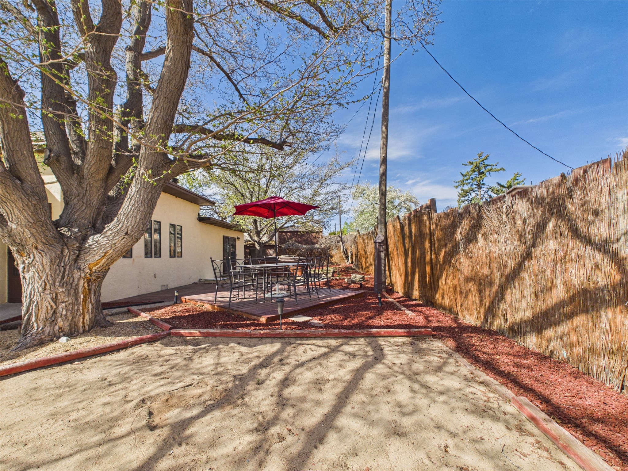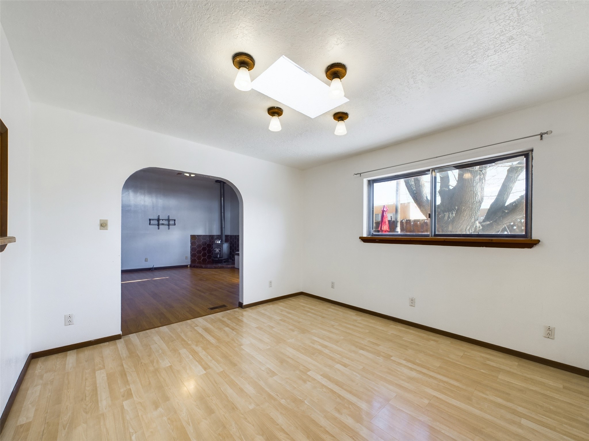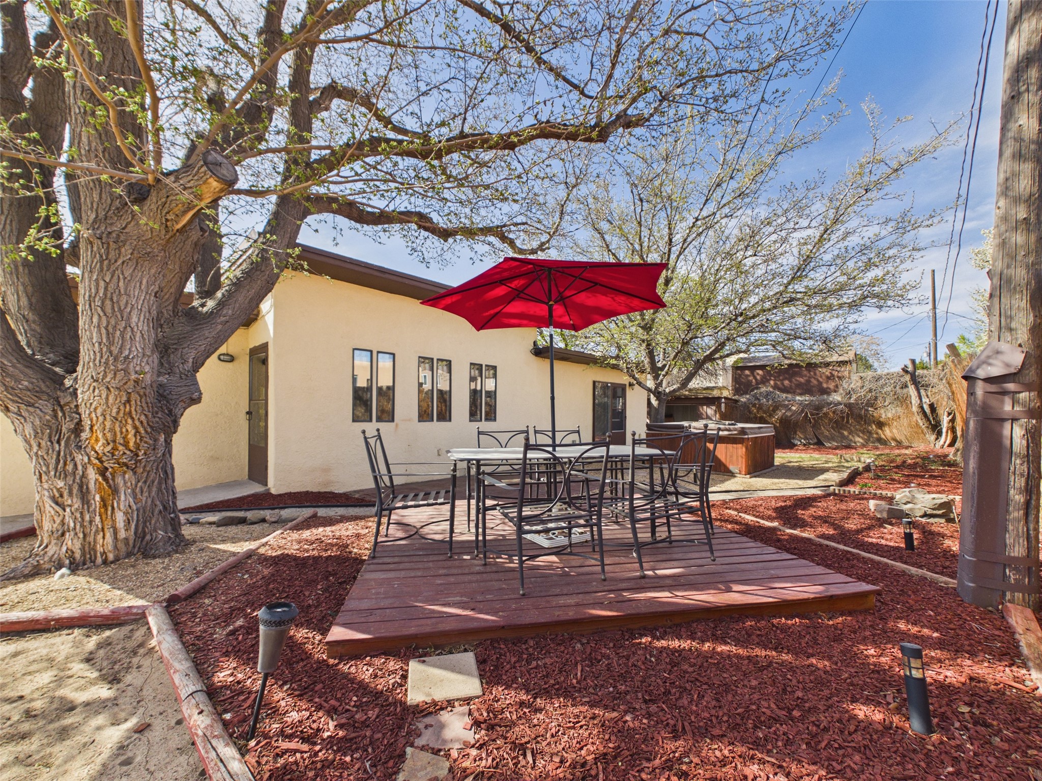 Charming 4-bedroom, 2-bath Santa Fe home with inviting curb appeal, highlighted by a mature shade tree and classic Southwestern character. Step inside to a bright, welcoming living space with abundant natural light, warm wood floors, and a cozy wood-burning stove--perfect for everyday comfort. Forced air heating and evaporative cooling ensure year-round ease, plus new carpet in the primary bedroom.A versatile converted garage adds valuable bonus space--ideal for a home office, playroom, hobby space, or second living area.Enjoy outdoor living in the recently landscaped backyard featuring a patio, private hot tub, and plenty of room to relax or gather. The expansive driveway and side yard offer ample off-street parking and added convenience.Centrally located near shopping, dining, and Santa Fe's vibrant cultural amenities, this home offers a wonderful blend of comfort, space, and location.Some photos may be virtually staged.