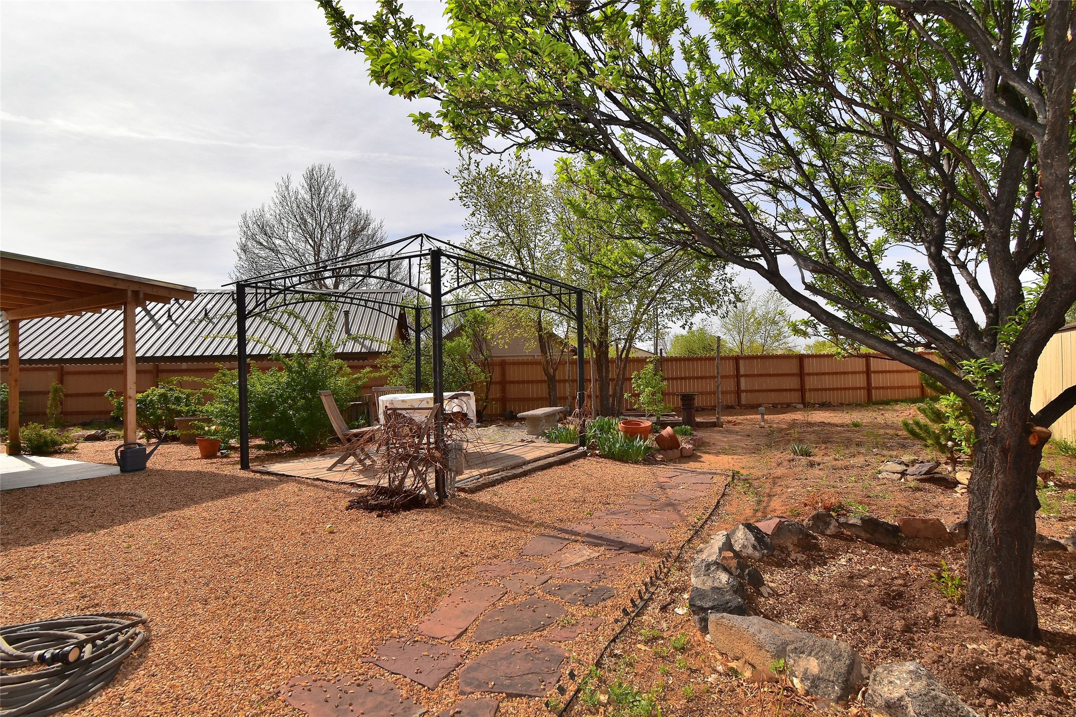 A hidden gem just blocks from a park and the scenic River Trail, this charming 3-bedroom, 2-bath home offers comfort, character, and access to some of the area's best outdoor amenities. With 1,257 square feet of heated living space on an 8,712-square-foot lot, the property strikes a perfect balance between cozy living and outdoor enjoyment.Built in 1998, the home features classic Southwestern touches, including a warm and inviting kiva fireplace that anchors the living area. Radiant heat ensures efficient, comfortable winters, while two evaporative coolers provide seasonal relief--one dedicated to the main en-suite bedroom and another in the hallway (ready for a simple motor replacement).The kitchen has been thoughtfully updated with newer appliances, including a range/oven just one year old, a refrigerator/freezer only six months old, and a dishwasher that has never been used. Fresh stucco adds to the home's curb appeal, while the TPO roof comes with approximately 12 years remaining on its warranty, offering peace of mind for years to come.Step outside to a beautifully landscaped yard filled with fruit trees, roses, and a variety of shrubs and perennials. A covered patio and pergola create ideal spaces for outdoor dining or relaxing, complemented by a charming flagstone pathway that ties the outdoor living areas together.An oversized one-car garage provides ample storage and flexibility, rounding out this well-maintained property that blends comfort, functionality, and Southwest charm--all in a location that invites you to enjoy the outdoors--the River Trail, with hiking and biking, a lovely park--just moments from your doorstep.