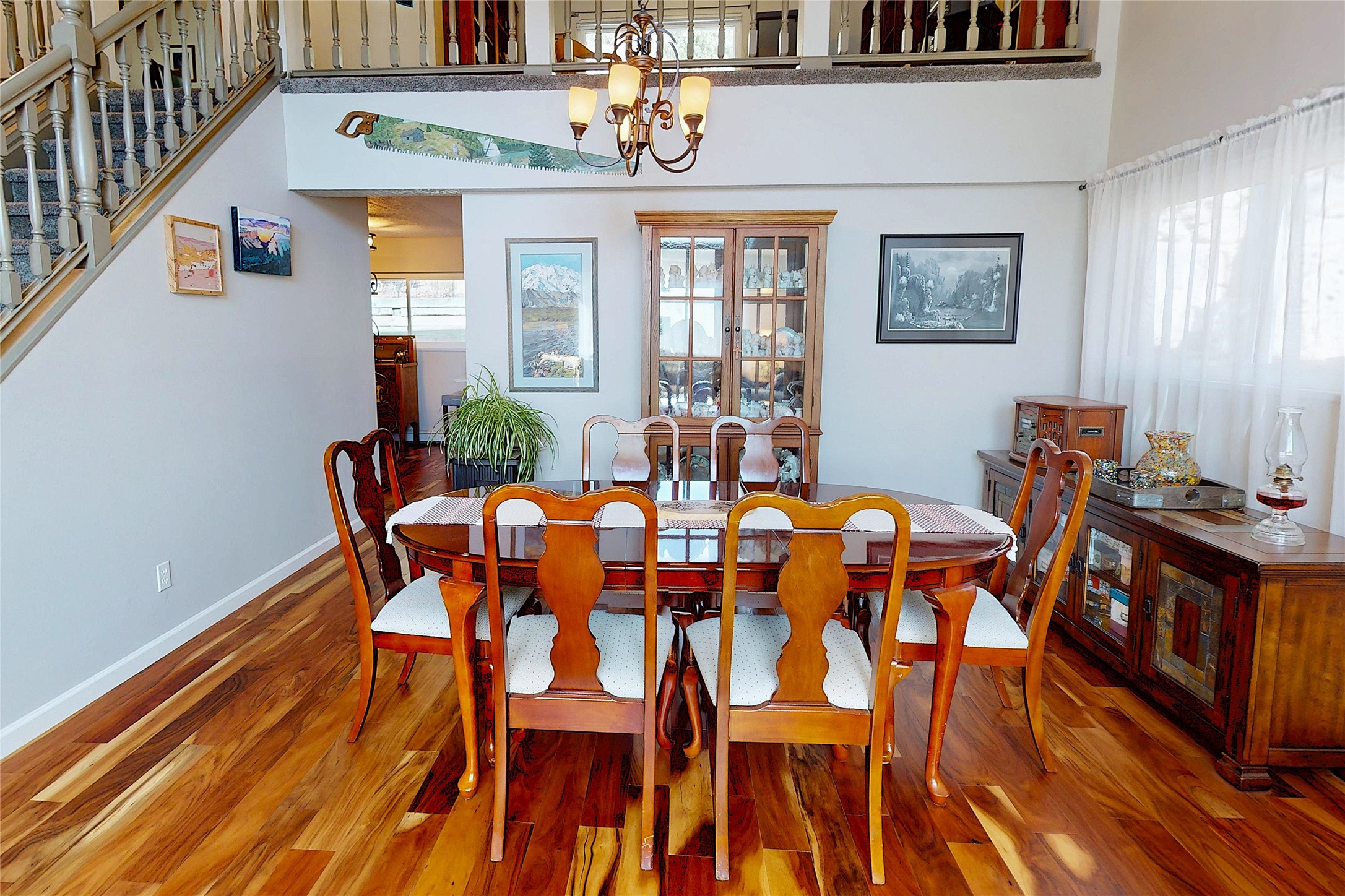 Located near the end of North Mesa, this beautifully maintained two-story home offers a thoughtful blend of comfort, efficiency, and flexible living space. With three bedrooms plus a versatile loft, the floor plan easily adapts to your needs, whether as a home office, reading retreat, workout area, or multi-use space. The light-filled main level features soaring south-facing windows that bring in warmth and natural light throughout the day, an ideal setup for both comfort and energy efficiency. Beautiful new wood flooring runs throughout the first floor, adding warmth and a clean, modern feel. The updated kitchen offers ample storage and opens seamlessly to the family room, where a cozy pellet stove creates the perfect gathering space during cooler months. Formal living and dining areas provide additional room for entertaining or everyday living. Upstairs, the inviting primary suite includes an updated bath with a beautifully finished shower. Two additional bedrooms, a full bath, and the spacious loft complete the upper level. Outside, the yard features easy-care landscaping, towering ponderosa pines, and raised garden beds. Enjoy outdoor living on the patio or relax in the charming gazebo. The two-car garage offers abundant overhead storage. This home also features newer carpet and paint, along with updated bathrooms. Engineered acacia wood flooring was added in 2023, and the kitchen was updated with new counters and cabinets the same year. Windows were replaced in 2018. Conveniently located near the middle school, dog park, horse stables, playground, and tennis courts. With easy access to trails and all that North Mesa offers, this home is ready for you to move in and enjoy.