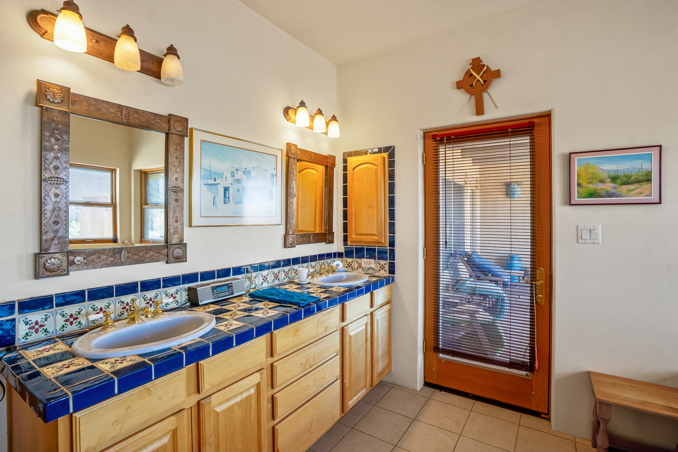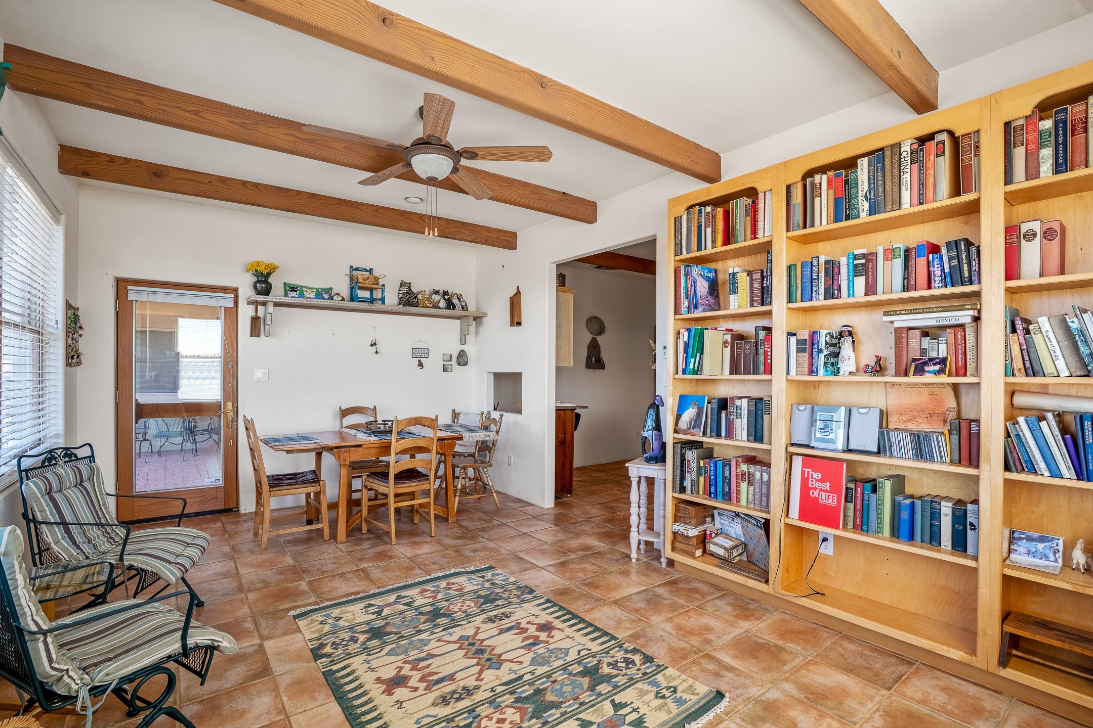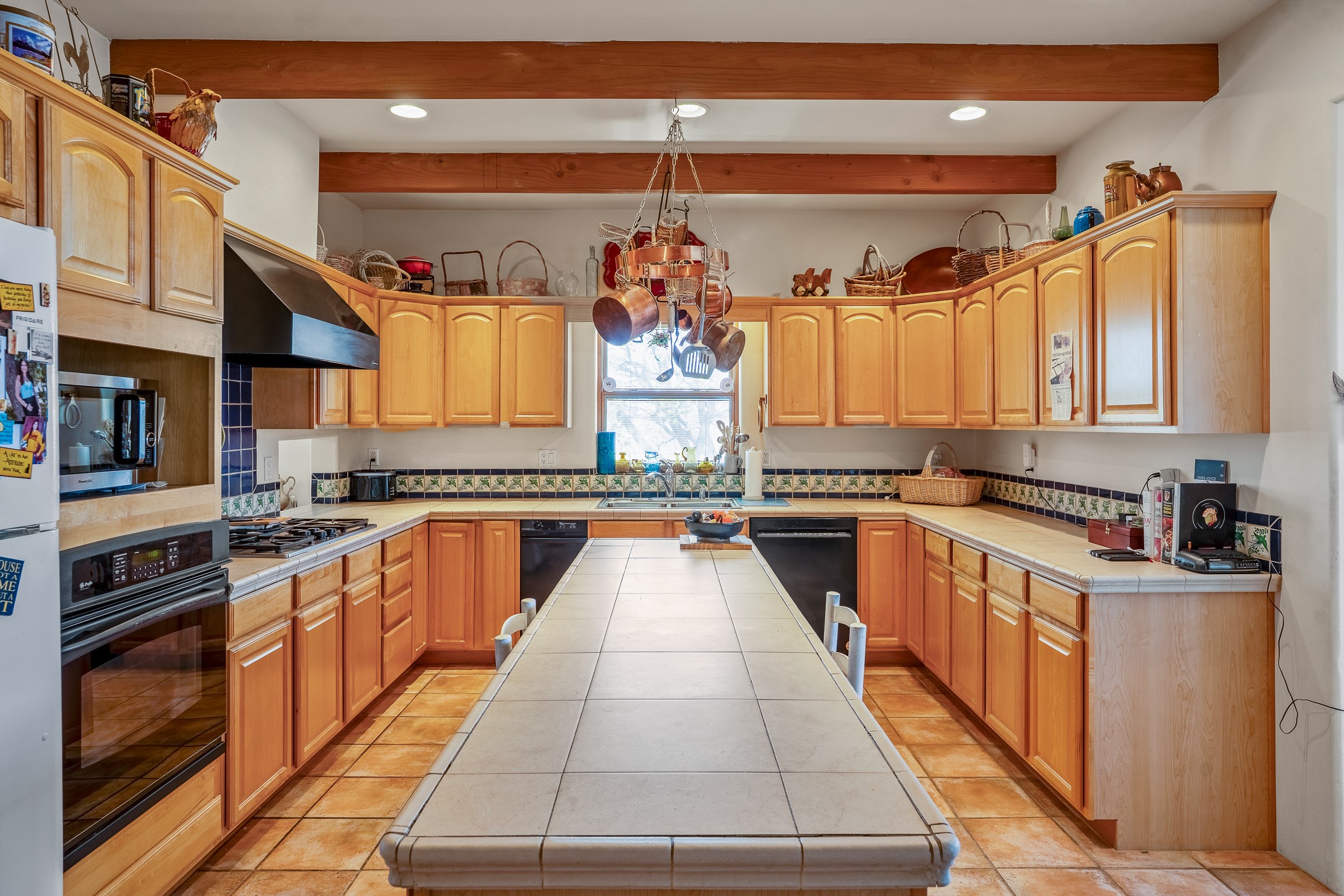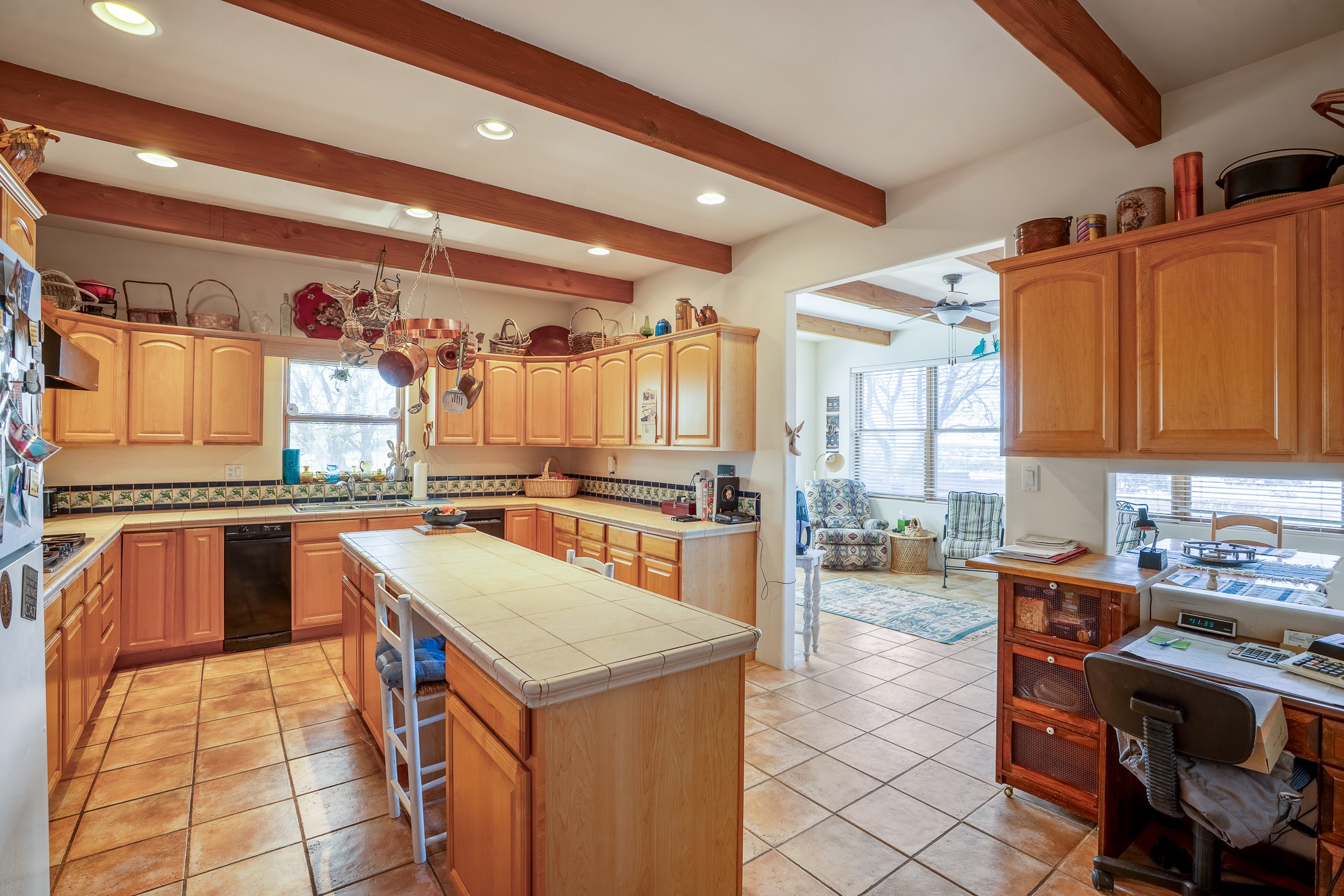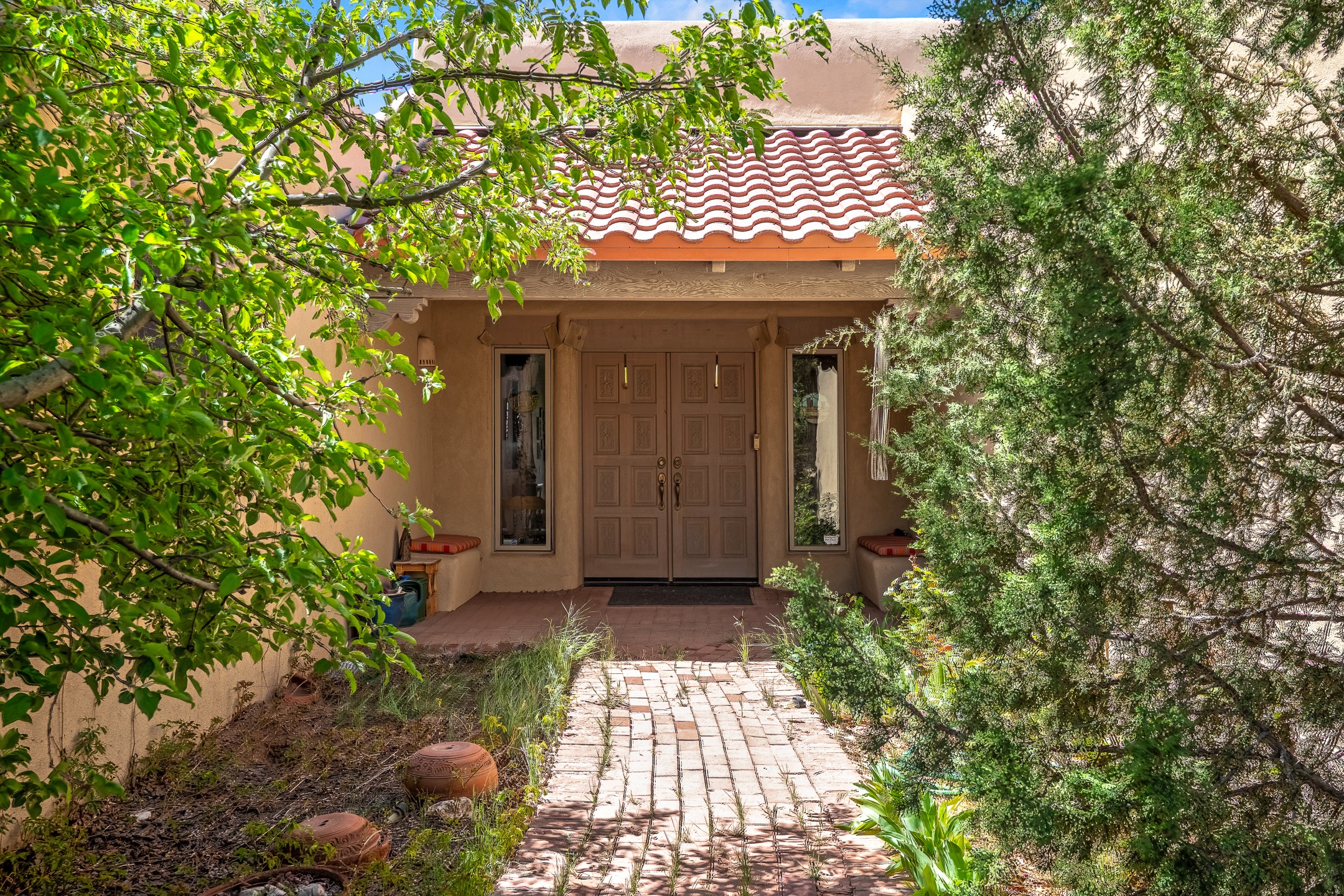 Experience unparalleled Southwestern living on five pristine acres in the exclusive Tierra de Casta area. This expansive estate offers over 4,000 square feet of meticulously designed living space, blending grand scale with the intimate warmth of traditional New Mexican architecture. Authentic Southwestern Design including High ceilings adorned with rustic vigas, tongue-and-groove accents, and hand-crafted finishes. The Primary Suite is a true retreat featuring a cozy Kiva fireplace, a spa-inspired ensuite with a jetted tub, and a custom walk-in shower. The Versatile Floor Plan Includes 2 add'l bedrooms with private ensuite baths, plus a large flexible den--ideal for a home office, library, or fourth bedroom. Well designed Kitchen with a central island and a dining room featuring an exquisite stamped tin ceiling. A bright sunroom opens to a rear portal, perfect for taking in the legendary New Mexico sunsets and western views. Situated on a lush 5-acre lot, this property provides the privacy and serenity of rural living yet near to all Eldorado Amenities and only a short drive to Santa Fe's historic Plaza. Whether you are entertaining in the grand great room or enjoying the quiet beauty of the high desert, this home is a masterpiece of comfort and quality.
