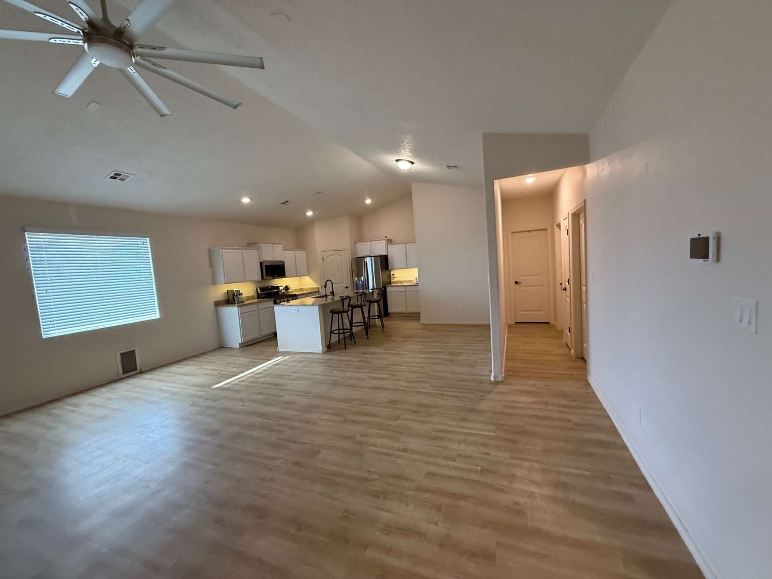 Sandia Estates Airpark (1N1).30 min East of ABQ. On .86 AC lot with space for hangar. Beautiful Open Floor Plan, Cathedral Ceilings 3 bedrooms and 2 Bath, Granite Countertops throughout. Master has bath has Double Sinks, Separate Shower, Soaking Tub, Walk in Closet. Kitchen Features Upgraded Stainless Appliances, 5 stage RO water filter, Breakfast Bar. A Spacious Great Room/Dining Room. 2 car garage, Water filter & Softener. Upgraded Spray Foam Insulation. Laminate Floors Throughout. Back patio, Fenced Back Yard with Dog Run, RV pad with Full Hookups. 8 x 12 Metal Shed.