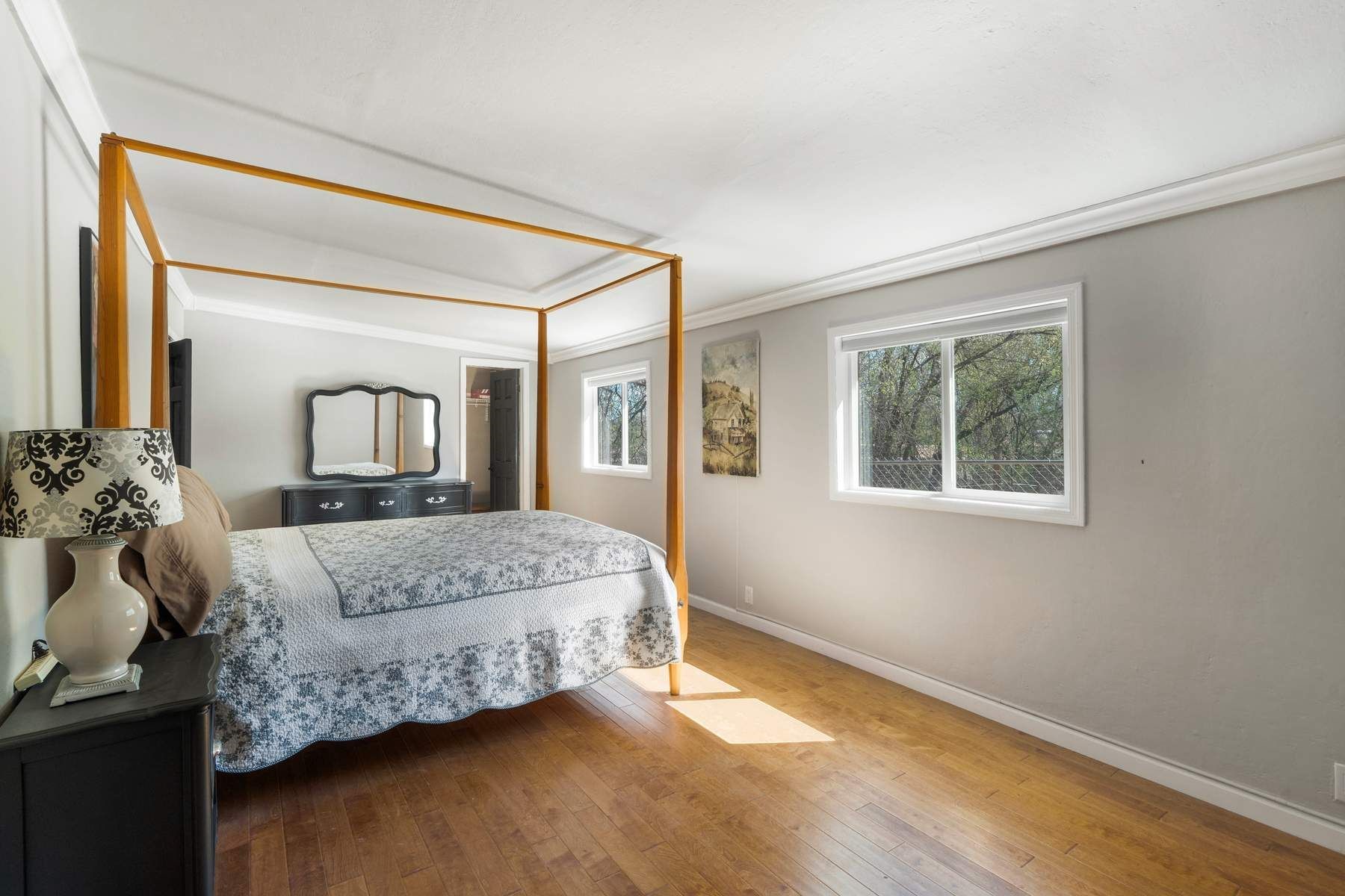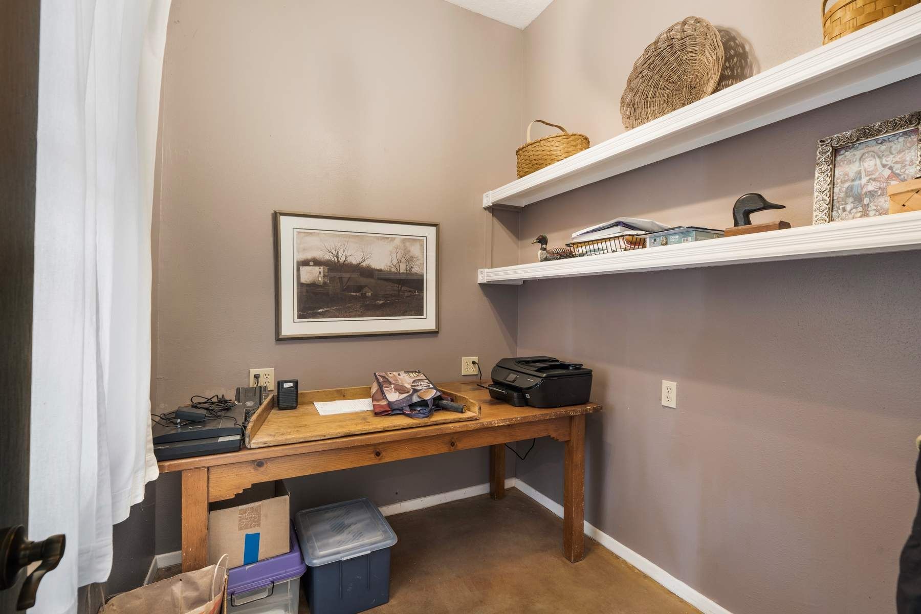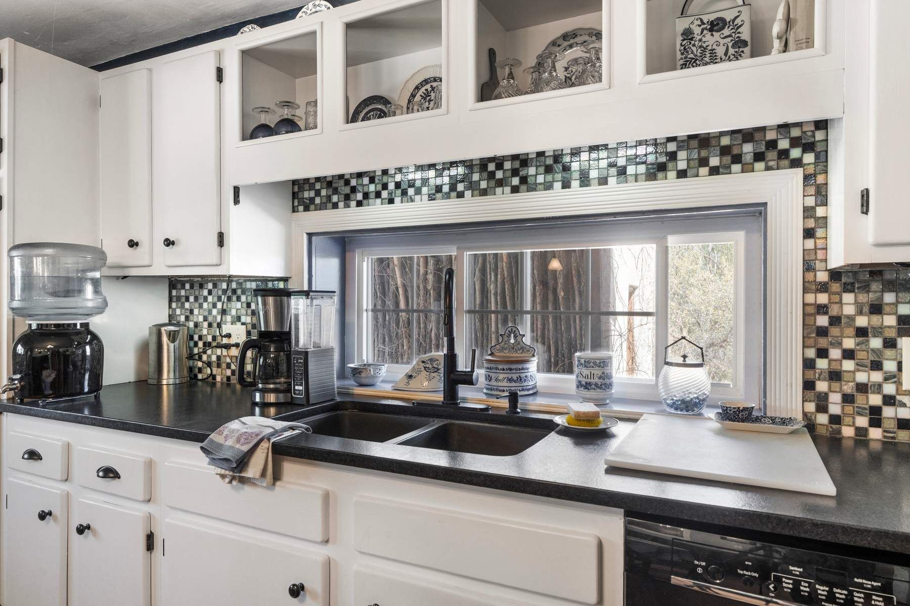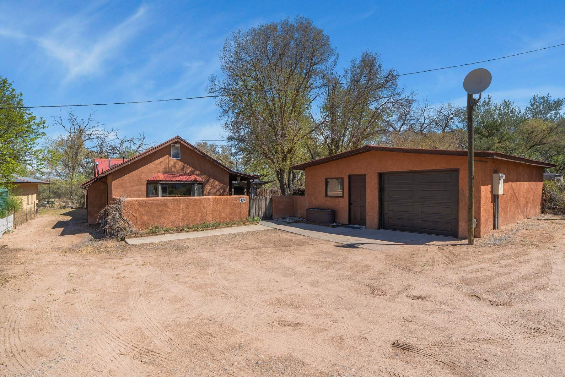 Welcome home to this distinctive single-level home with an acequia running through the property, located in the El Rancho area of Pojoaque. With adobe portions of the home dating back to 1892, this 3-bedroom, 2-bath home with office offers 2,680 square feet of living space on 1.63 acres, blending historic Northern New Mexico character with everyday comfort and functionality. Warm and inviting style details define the home, including wood and coved viga ceilings, brick, wood, and concrete floors (no carpet), bay windows and abundant natural light throughout. The living room is anchored by a fireplace and opens to adjacent dining and flexible living spaces that support both daily living and gathering. The eat-in kitchen is both charming and practical, featuring granite countertops, extensive cabinetry, built-in shelving, and a butler's pantry, with easy flow into the dining area. A separate office provides space for work, studio use, or additional flexibility. Three bedrooms and two bathrooms are thoughtfully arranged within the home, offering comfortable use and separation. Two gas stoves provide warmth and character during the colder months. Outside, the property reflects traditional Northern New Mexico land use, with an acequia running through the parcel, mature trees, and a variety of usable outdoor areas suited for gardening, projects, or outdoor living. The elongated 1.63-acre lot offers flexibility and depth without the maintenance demands of larger acreage. A detached one-car garage with workshop space adds functionality and storage. Located approximately 10 minutes from Pojoaque amenities, 20 minutes to Los Alamos, and 27 minutes to downtown Santa Fe, this lovingly maintained home for 30+ years by the current owner offers quiet rural living in a wonderful community and a welcome combination of historic adobe architecture, usable land, and convenient access.
