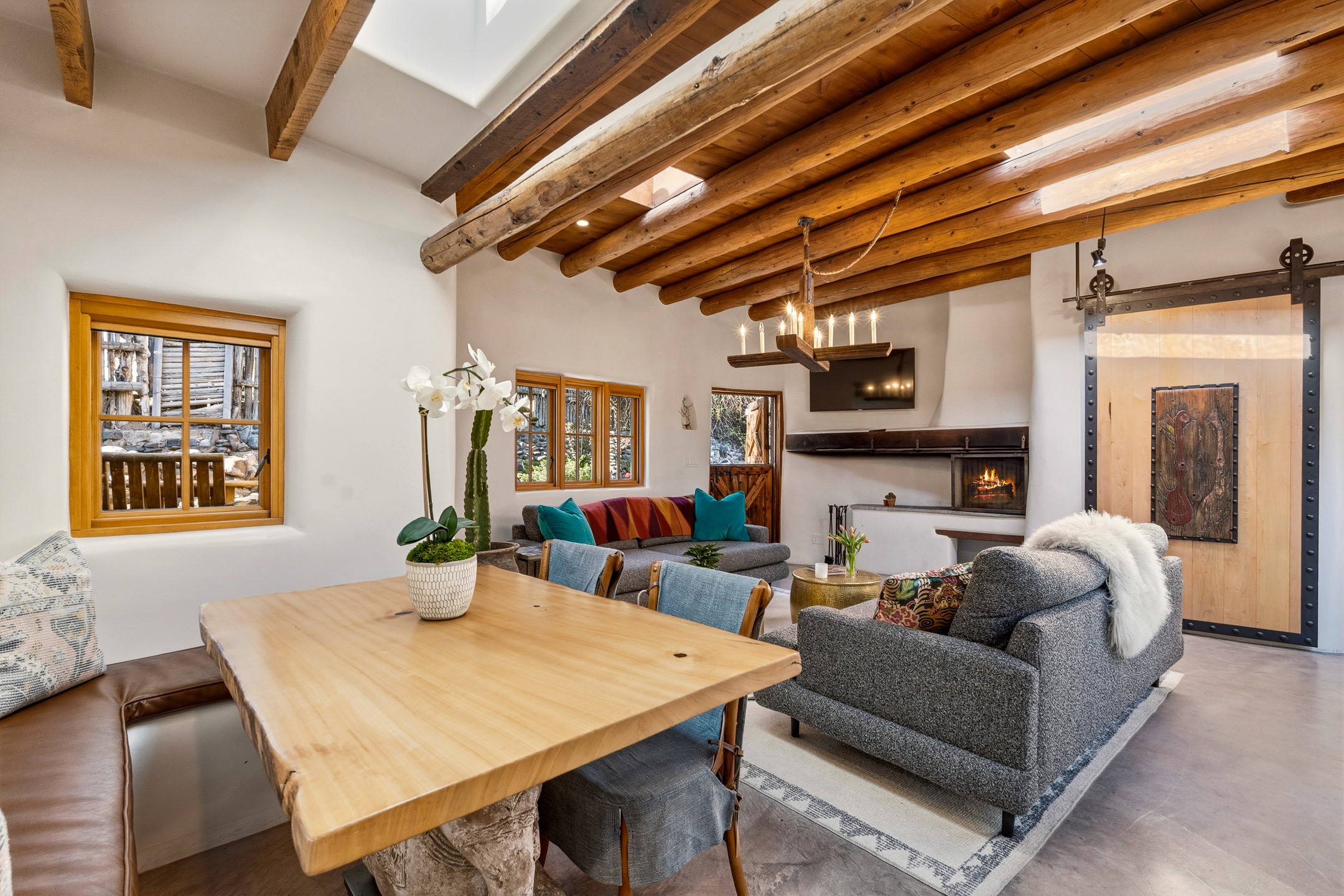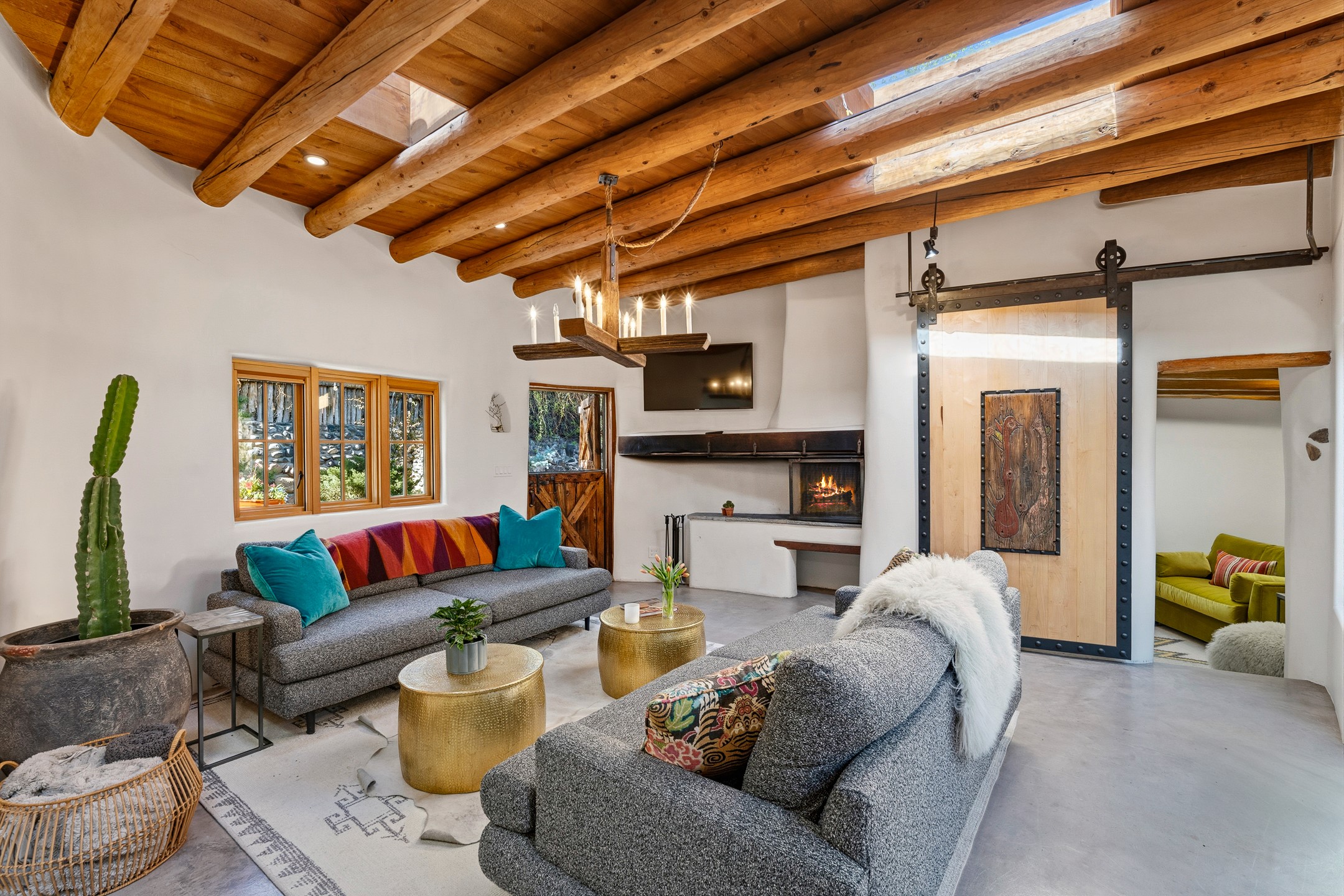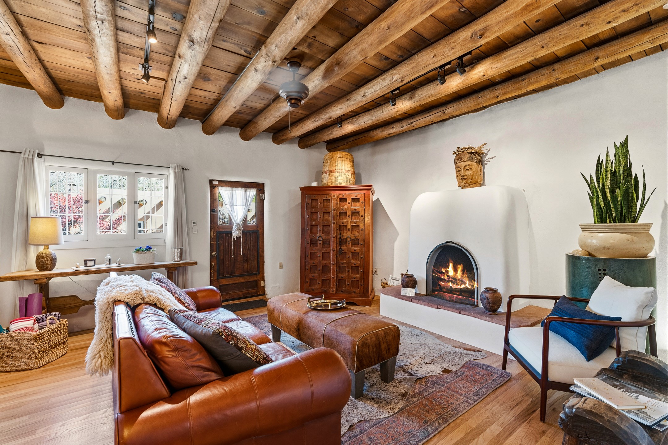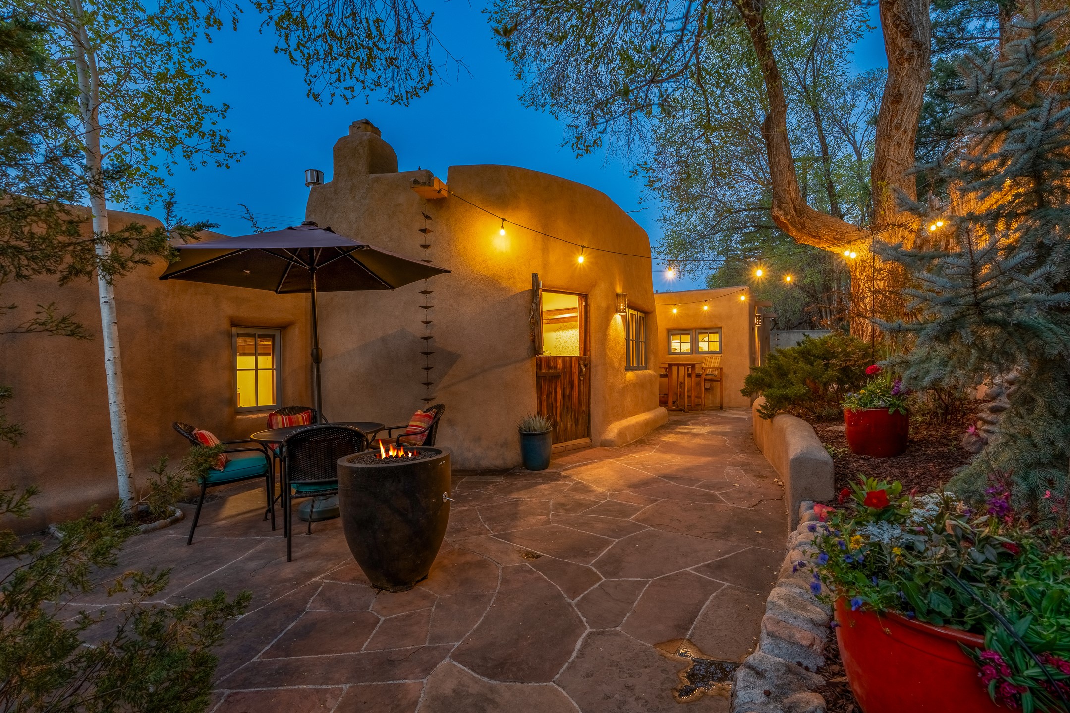 Set along iconic Canyon Road, this exceptional compound includes two beautifully restored residences--Casa Leza Anna and Casa Katalina--each thoughtfully renovated in 2023 to blend Santa Fe's historic charm with a refined, modern aesthetic.Casa Leza Anna, the front residence, is a 1,375 sq. ft. adobe home originally built in 1870. This 2-bedroom, 1-bath home has been meticulously reimagined, preserving its authentic character while introducing contemporary finishes. A private rear courtyard with a flagstone patio offers a quiet, intimate outdoor retreat. Tucked behind, Casa Katalina is a fully renovated 1,567 sq. ft. 2-bedroom, 2-bath guest house with an additional bunk room, providing flexible accommodations. The living room is anchored by a striking shepherd's fireplace, creating warmth and character. Two private outdoor areas, including one with a hot tub, enhance the experience. Currently enjoyed as a pied--terre and a successful vacation rental, the property offers exceptional flexibility. Live in one residence and rent the other, or maximize income potential. Casas Dos Primas is a rare opportunity to own a piece of Canyon Road history, where timeless adobe architecture and modern livability come together in one of Santa Fe's most coveted locations.