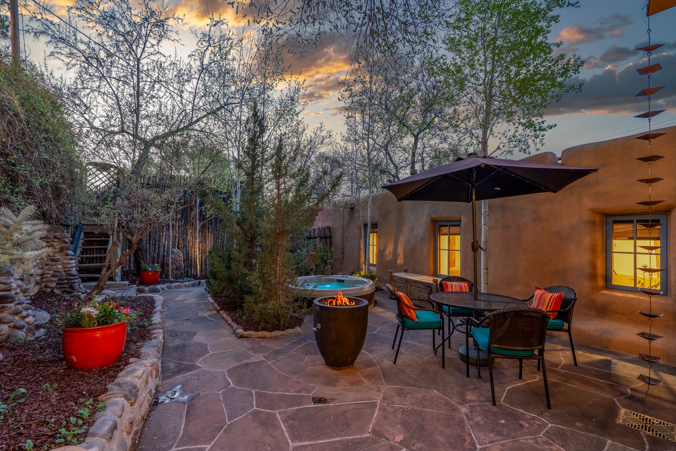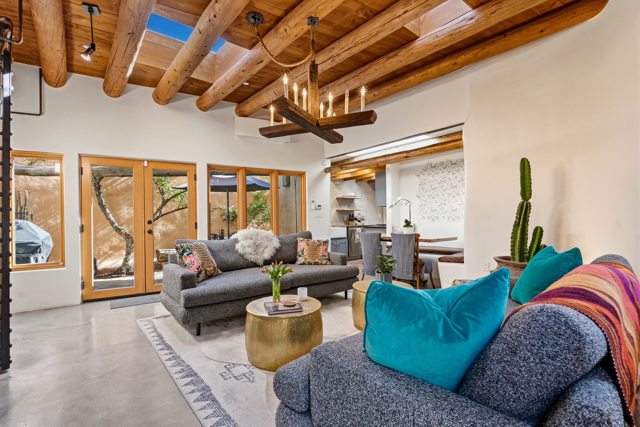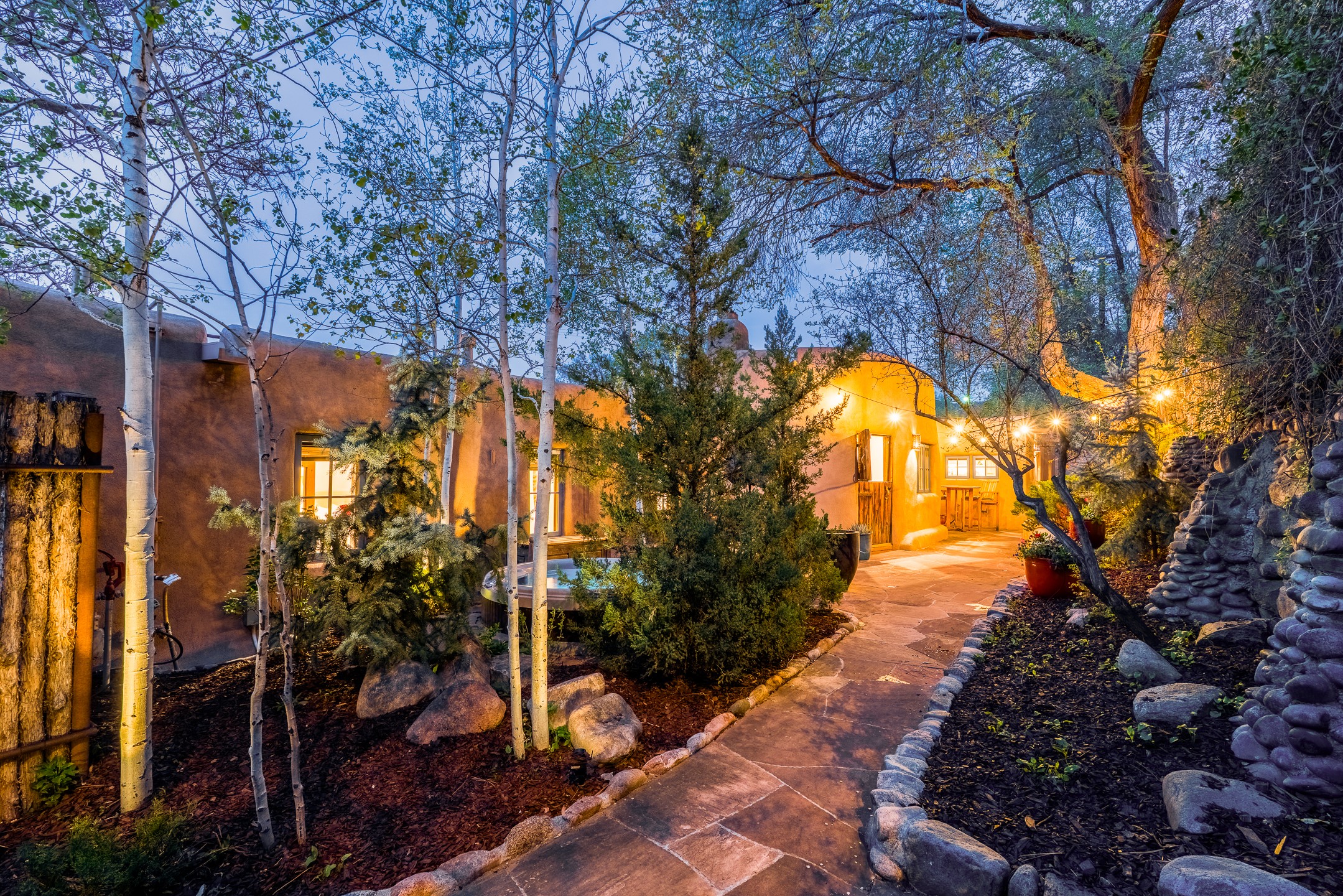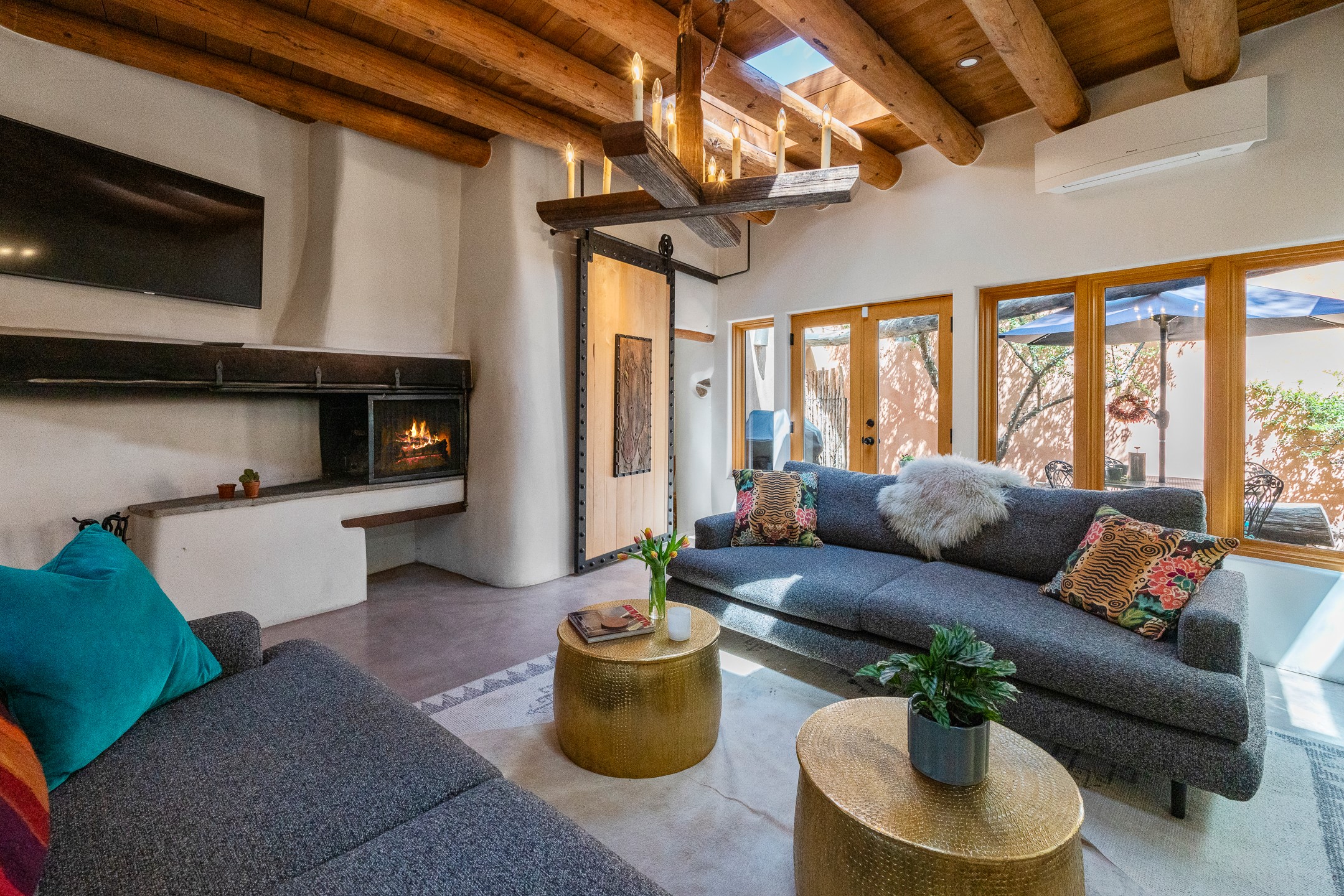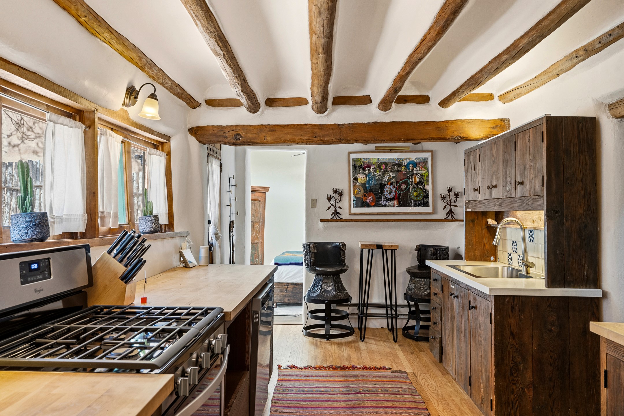 Set along iconic Canyon Road, this exceptional compound includes two beautifully restored residences--Casa Leza Anna and Casa Katalina--each thoughtfully renovated in 2023 to blend Santa Fe's historic charm with a refined, modern aesthetic.Casa Leza Anna, the front residence, is a 1,375 sq. ft. adobe home originally built in 1870. This 2-bedroom, 1-bath home has been meticulously reimagined, preserving its authentic character while introducing contemporary finishes. A private rear courtyard with a flagstone patio offers a quiet, intimate outdoor retreat. Tucked behind, Casa Katalina is a fully renovated 1,567 sq. ft. 2-bedroom, 2-bath guest house with an additional bunk room, providing flexible accommodations. The living room is anchored by a striking shepherd's fireplace, creating warmth and character. Two private outdoor areas, including one with a hot tub, enhance the experience. Currently enjoyed as a pied--terre and a successful vacation rental, the property offers exceptional flexibility. Live in one residence and rent the other, or maximize income potential. Casas Dos Primas is a rare opportunity to own a piece of Canyon Road history, where timeless adobe architecture and modern livability come together in one of Santa Fe's most coveted locations.