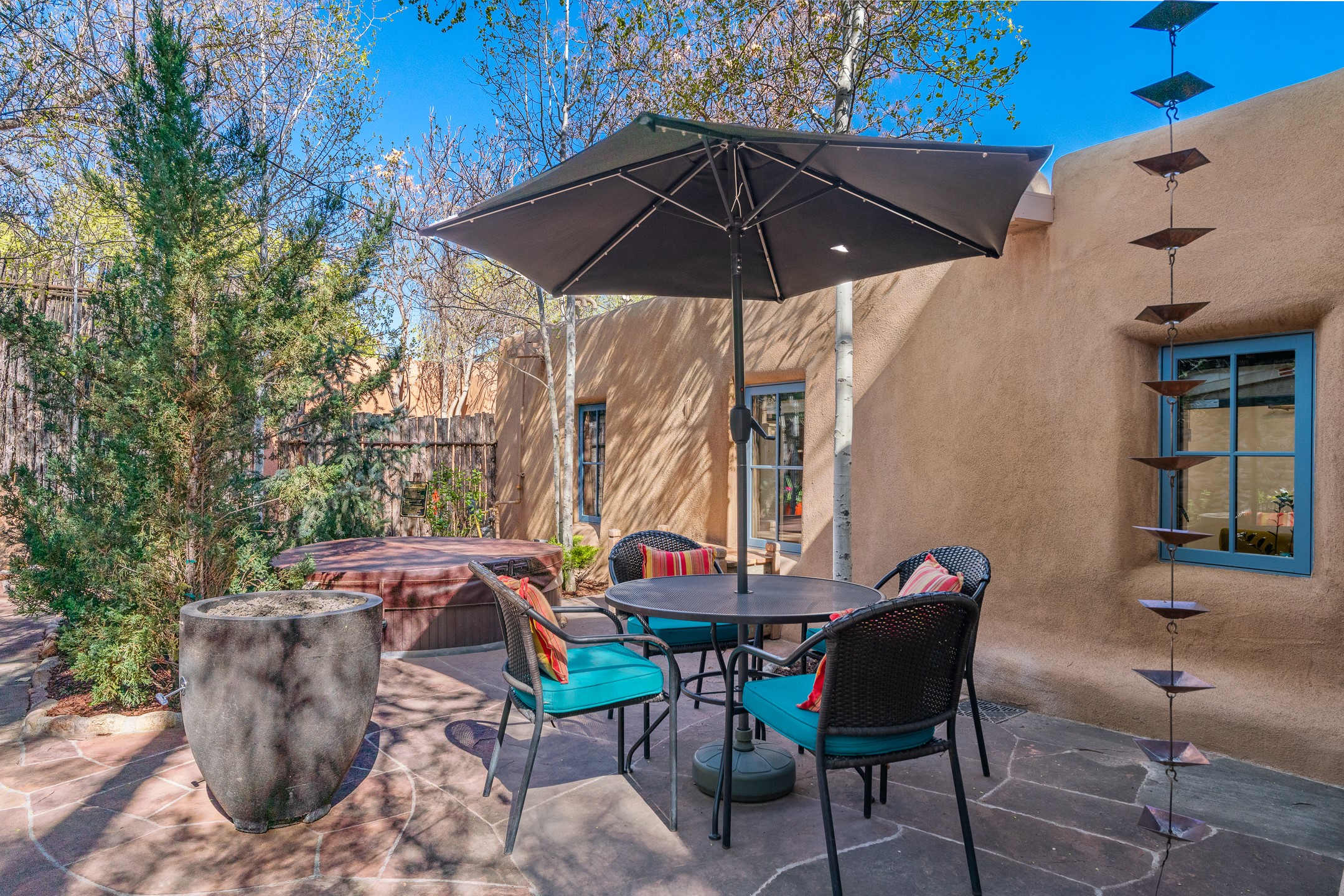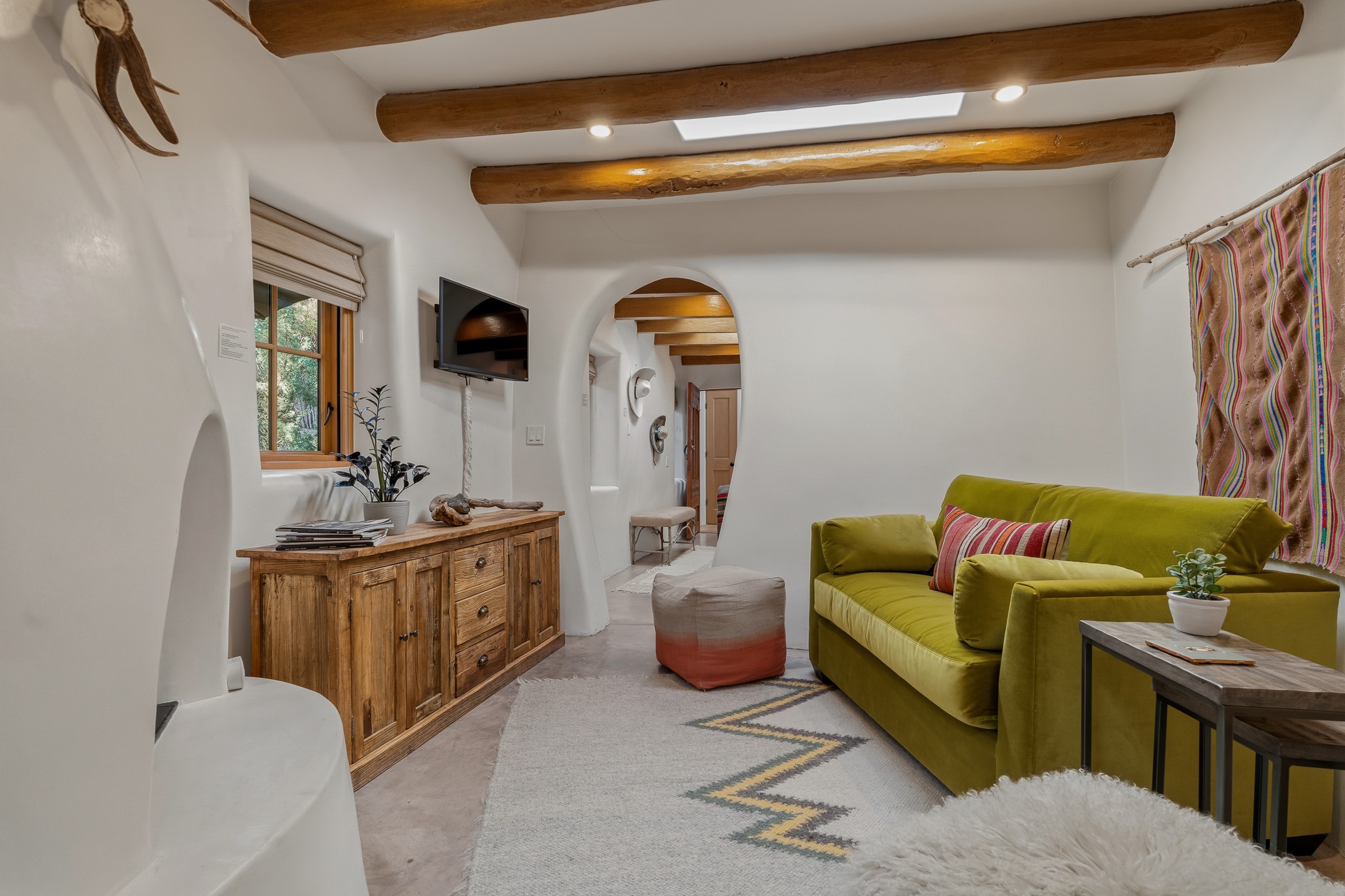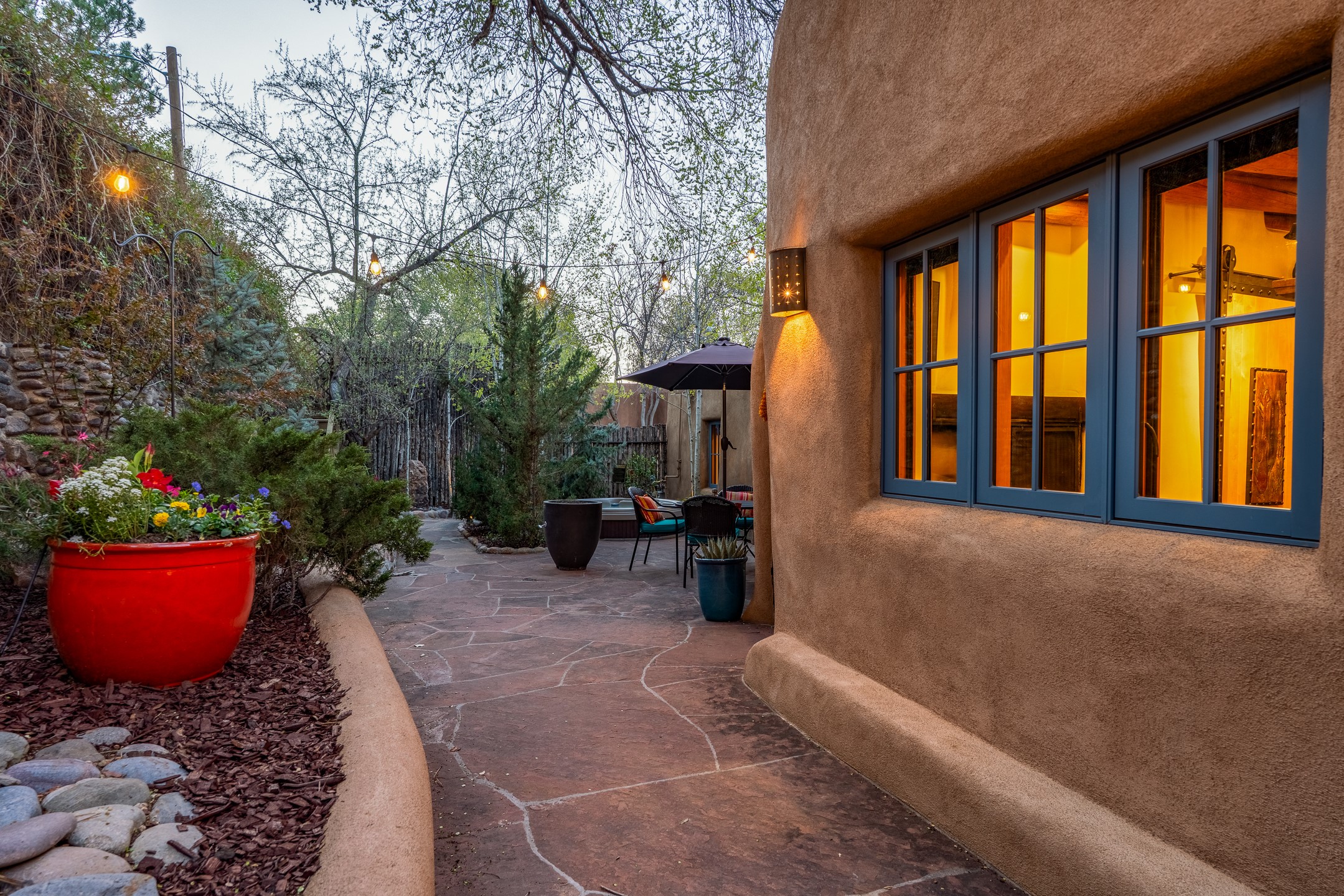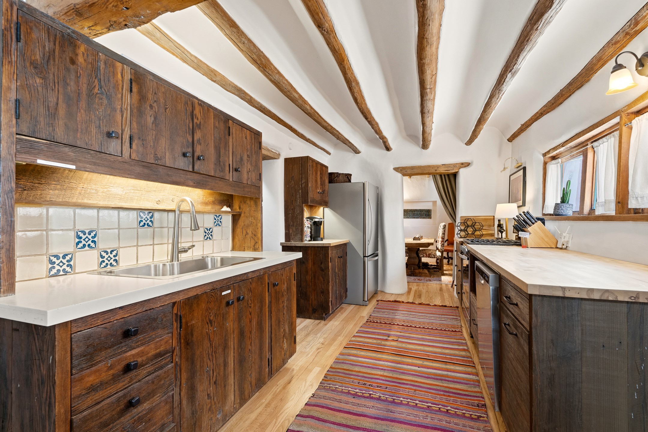 Set along iconic Canyon Road, this exceptional compound includes two beautifully restored residences--Casa Leza Anna and Casa Katalina--each thoughtfully renovated in 2023 to blend Santa Fe's historic charm with a refined, modern aesthetic.Casa Leza Anna, the front residence, is a 1,375 sq. ft. adobe home originally built in 1870. This 2-bedroom, 1-bath home has been meticulously reimagined, preserving its authentic character while introducing contemporary finishes. A private rear courtyard with a flagstone patio offers a quiet, intimate outdoor retreat. Tucked behind, Casa Katalina is a fully renovated 1,567 sq. ft. 2-bedroom, 2-bath guest house with an additional bunk room, providing flexible accommodations. The living room is anchored by a striking shepherd's fireplace, creating warmth and character. Two private outdoor areas, including one with a hot tub, enhance the experience. Currently enjoyed as a pied--terre and a successful vacation rental, the property offers exceptional flexibility. Live in one residence and rent the other, or maximize income potential. Casas Dos Primas is a rare opportunity to own a piece of Canyon Road history, where timeless adobe architecture and modern livability come together in one of Santa Fe's most coveted locations.