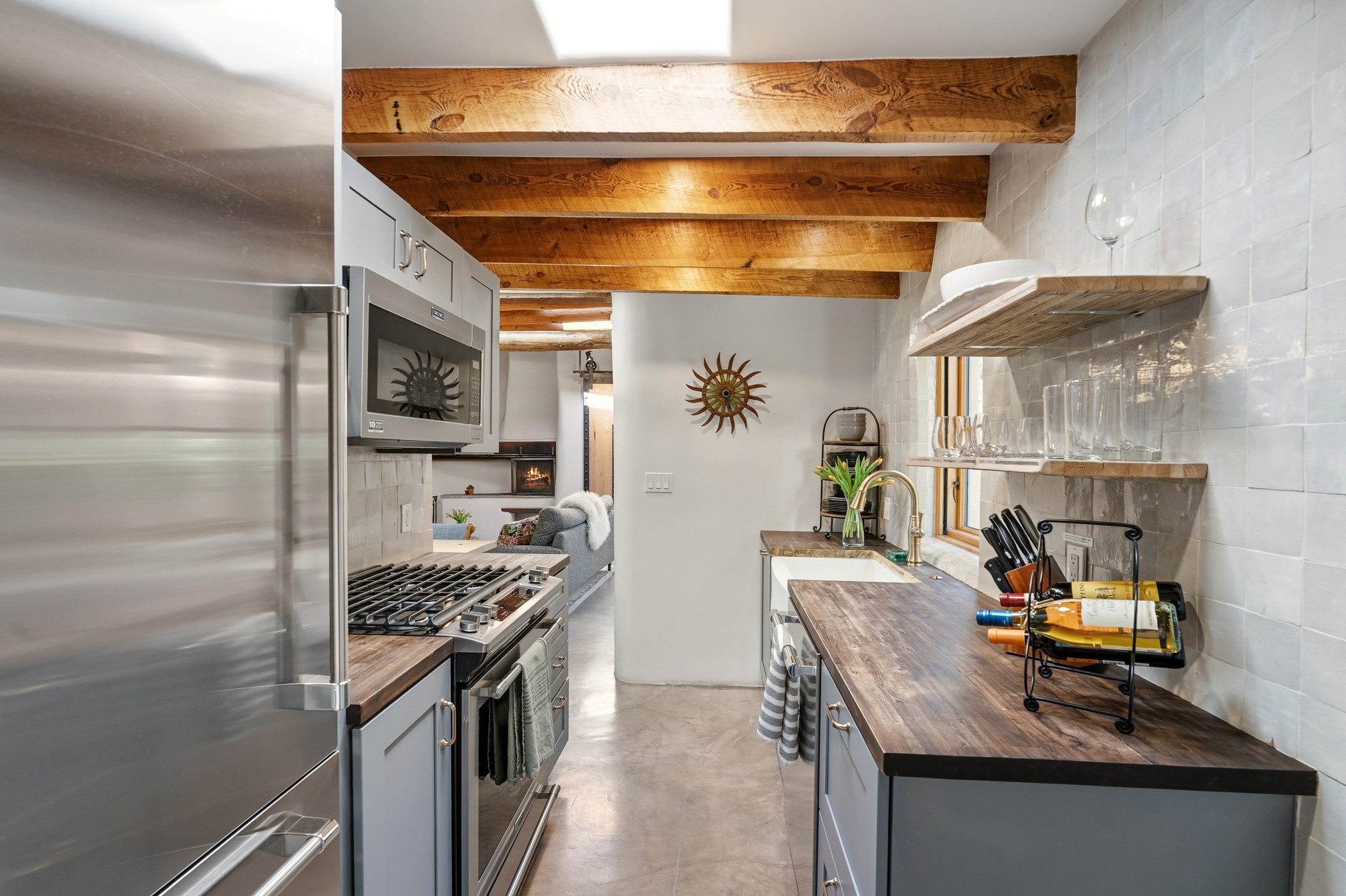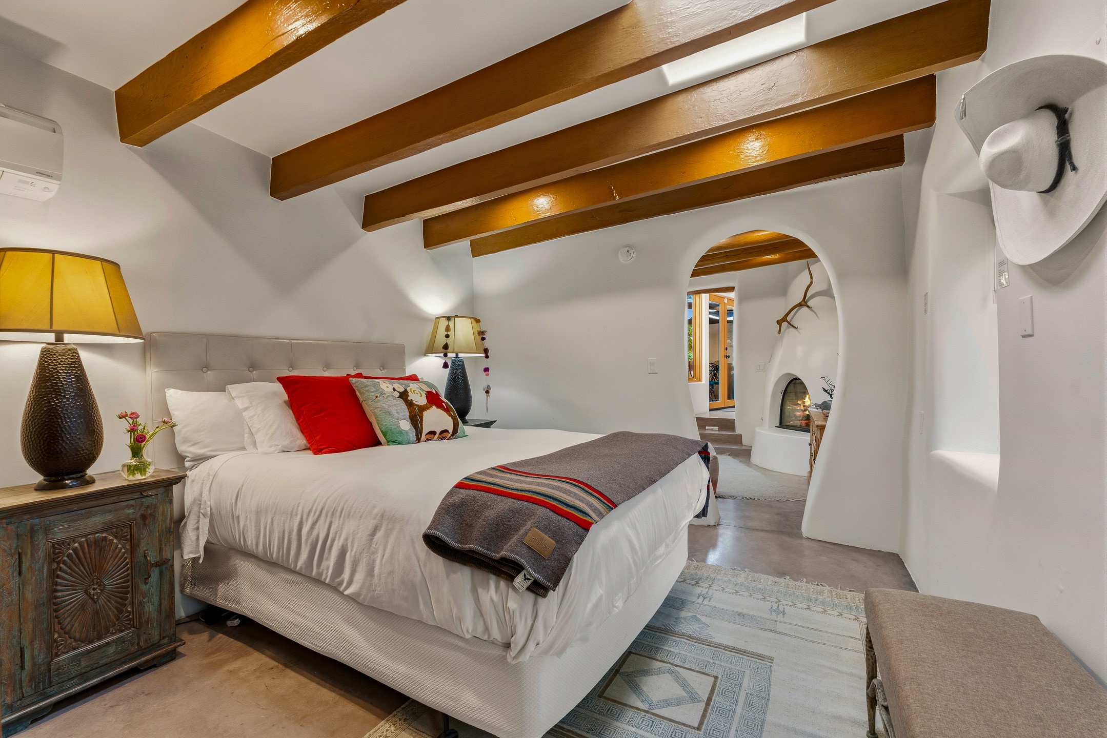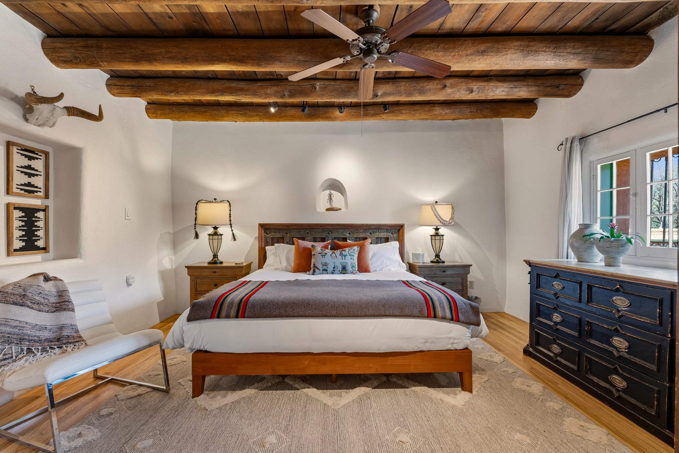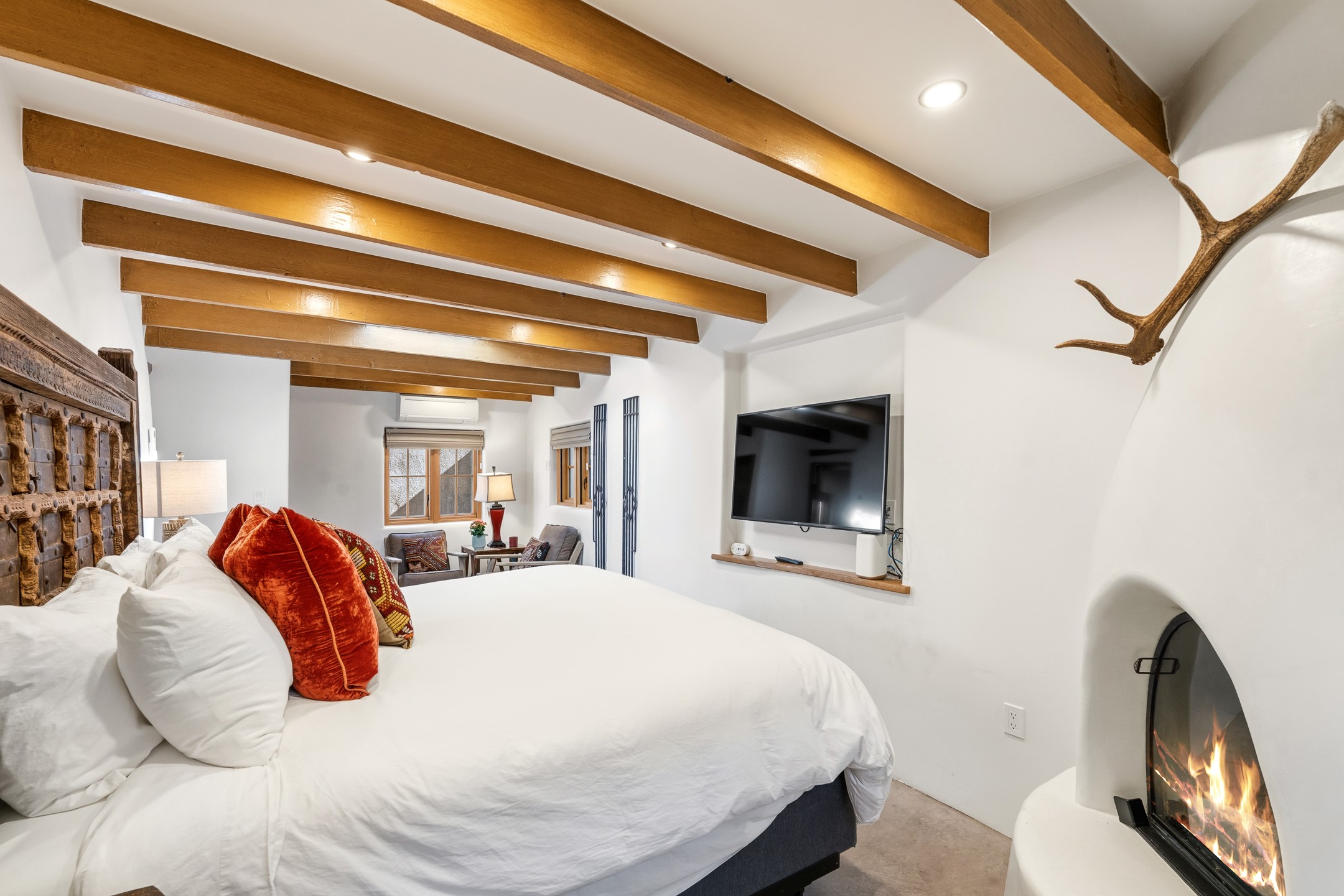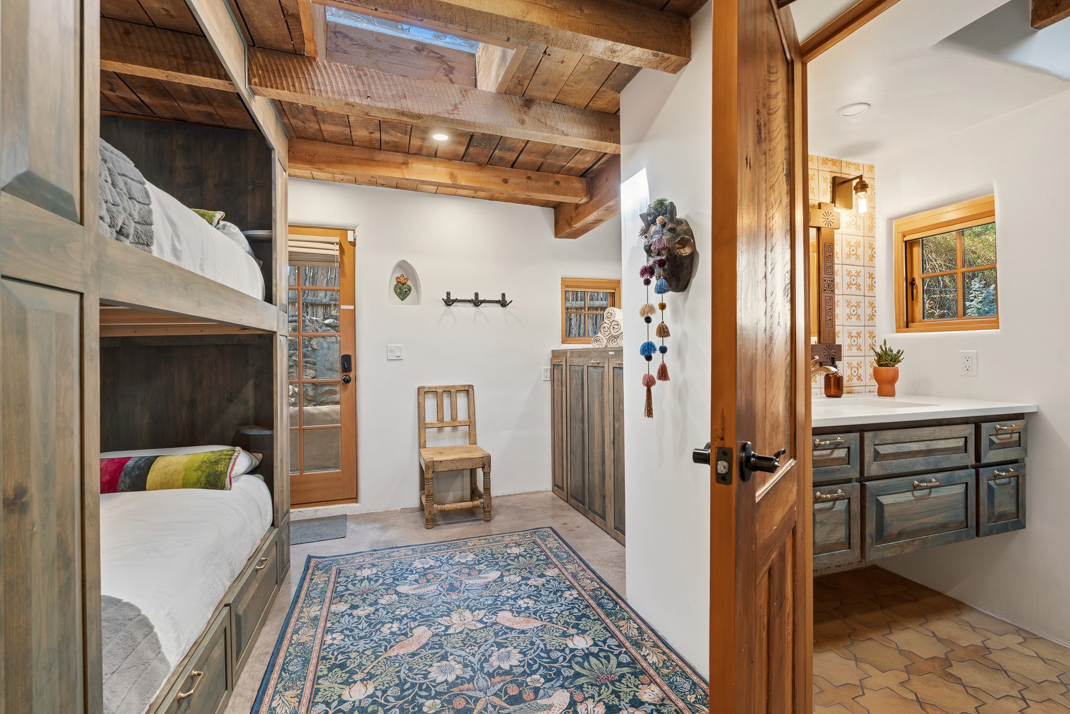 Set along iconic Canyon Road, this exceptional compound includes two beautifully restored residences--Casa Leza Anna and Casa Katalina--each thoughtfully renovated in 2023 to blend Santa Fe's historic charm with a refined, modern aesthetic.Casa Leza Anna, the front residence, is a 1,375 sq. ft. adobe home originally built in 1870. This 2-bedroom, 1-bath home has been meticulously reimagined, preserving its authentic character while introducing contemporary finishes. A private rear courtyard with a flagstone patio offers a quiet, intimate outdoor retreat. Tucked behind, Casa Katalina is a fully renovated 1,567 sq. ft. 2-bedroom, 2-bath guest house with an additional bunk room, providing flexible accommodations. The living room is anchored by a striking shepherd's fireplace, creating warmth and character. Two private outdoor areas, including one with a hot tub, enhance the experience. Currently enjoyed as a pied--terre and a successful vacation rental, the property offers exceptional flexibility. Live in one residence and rent the other, or maximize income potential. Casas Dos Primas is a rare opportunity to own a piece of Canyon Road history, where timeless adobe architecture and modern livability come together in one of Santa Fe's most coveted locations.