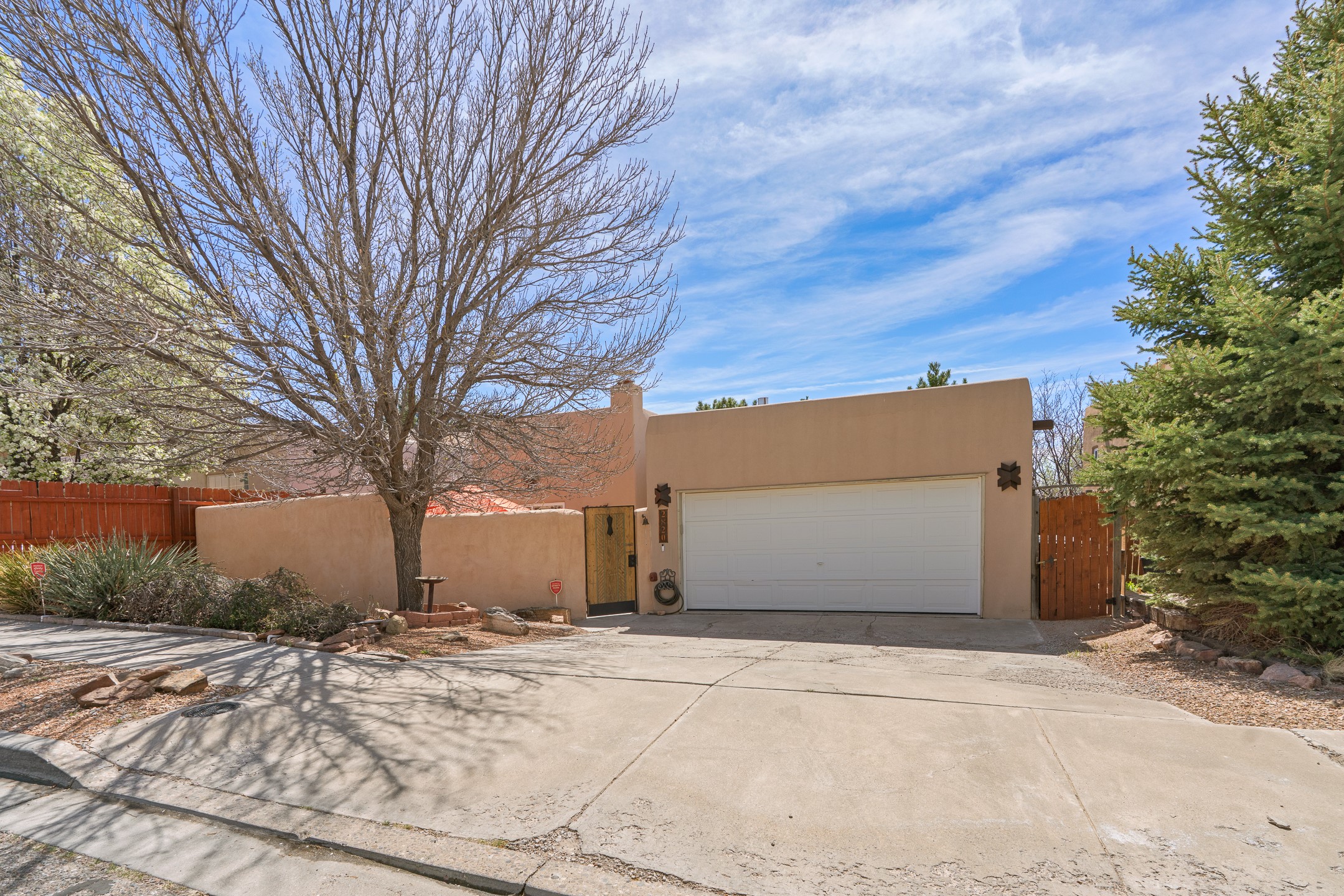 Experience true Santa Fe living in this charming Pueblos Del Sol home featuring 3 bedrooms plus an office/studio and 2 full baths. Southwest character shines throughout -- from the classic kiva wood-burning fireplace and tongue-and-groove ceilings with vigas, to the tile floors with radiant heat that keep the space cozy year-round. The open-concept living area flows seamlessly into a spacious kitchen with a large center island and breakfast seating, perfect for entertaining or family gatherings. Abundant skylights fill the home with natural light, enhancing its warm and welcoming ambiance. Step outside to enjoy mature landscaping, views of the Ortiz and Sandia mountains, perfect for watching iconic NM sunsets. An inviting front courtyard and attached two-car garage complete this charming home in one of Santa Fe's most desirable neighborhoods. A blend of comfort, authenticity, and style -- this Pueblos Del Sol gem offers the best of Santa Fe living.