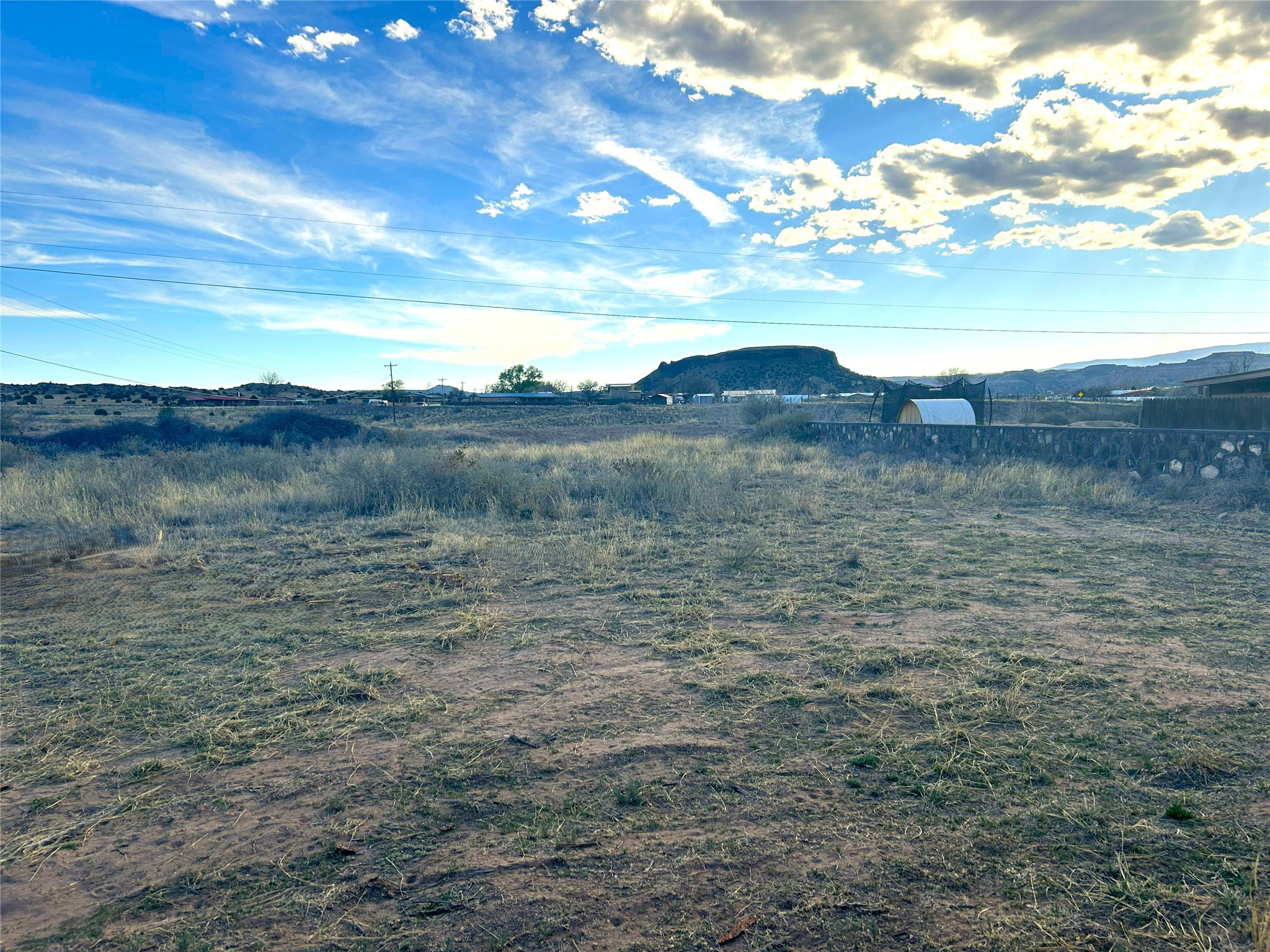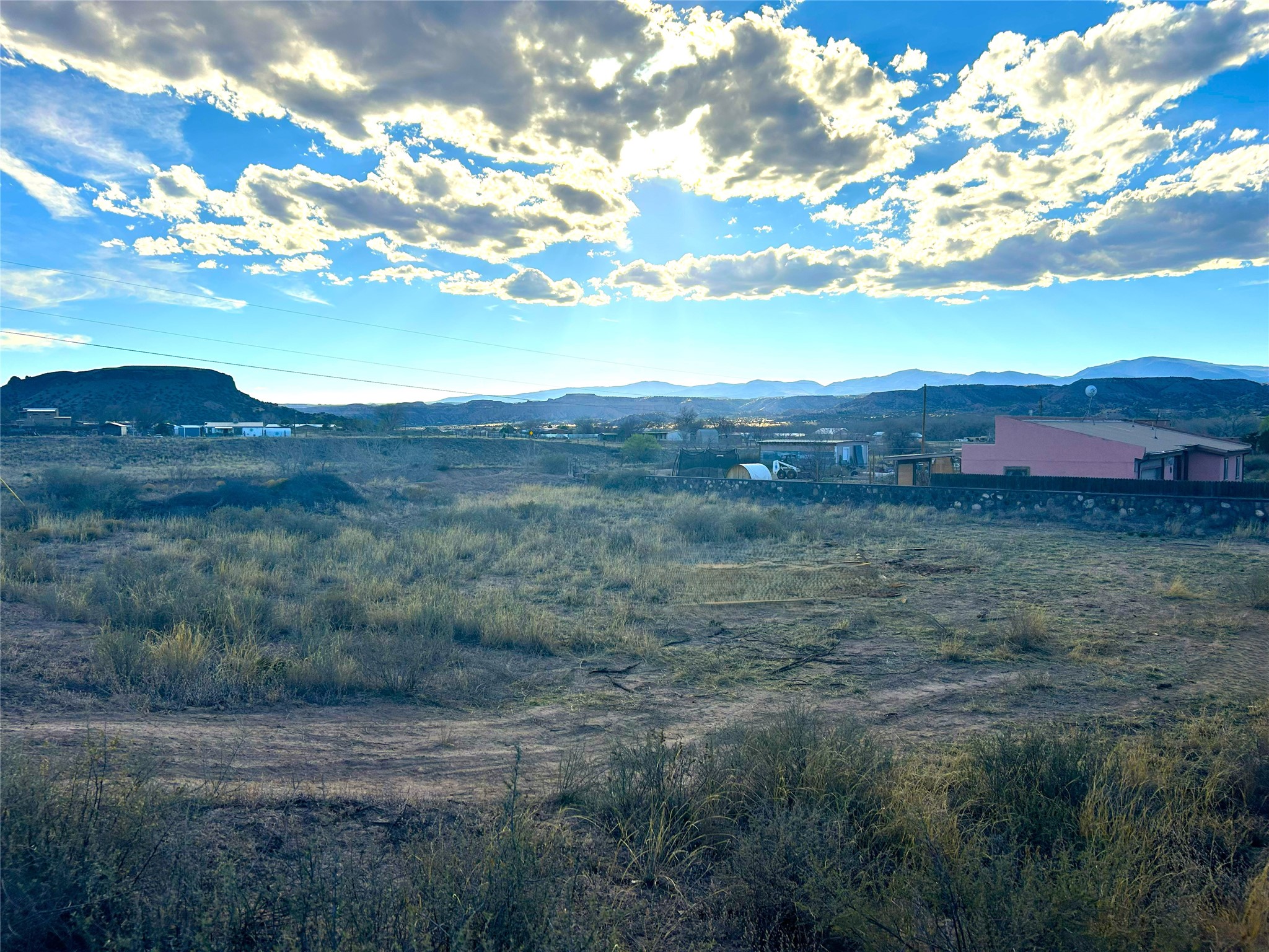 Views for days on .86 acres located just 30 minutes from Santa Fe or Los Alamos. This hidden gem is tucked away in the Rio Grande River Valley, in the peaceful historic farming village of La Mesilla. This parcel is one of the last remaining in the area and boasts direct views of Black Mesa, Pajarito Mountain and the Sangres. In 2026, a wooden privacy fence and cattle gate were installed between the property and the road. The lot is mostly flat with a small step-up on the north-eastern side of the property. From the back of the lot you look out over the Arroyo de los Barrancos to undeveloped Santa Clara Pueblo Land. There is natural gas at the property line, electricity on the lot and a shared well was installed in 2026. The neighborhood is well-established with many custom-built homes. No mobile homes allowed. Don't miss this incredible opportunity to build your dream home on a gorgeous and conveniently located lot in a coveted neighborhood!