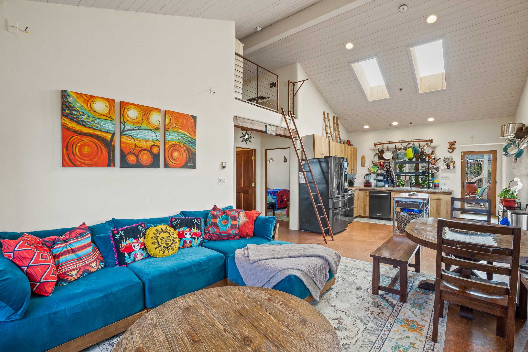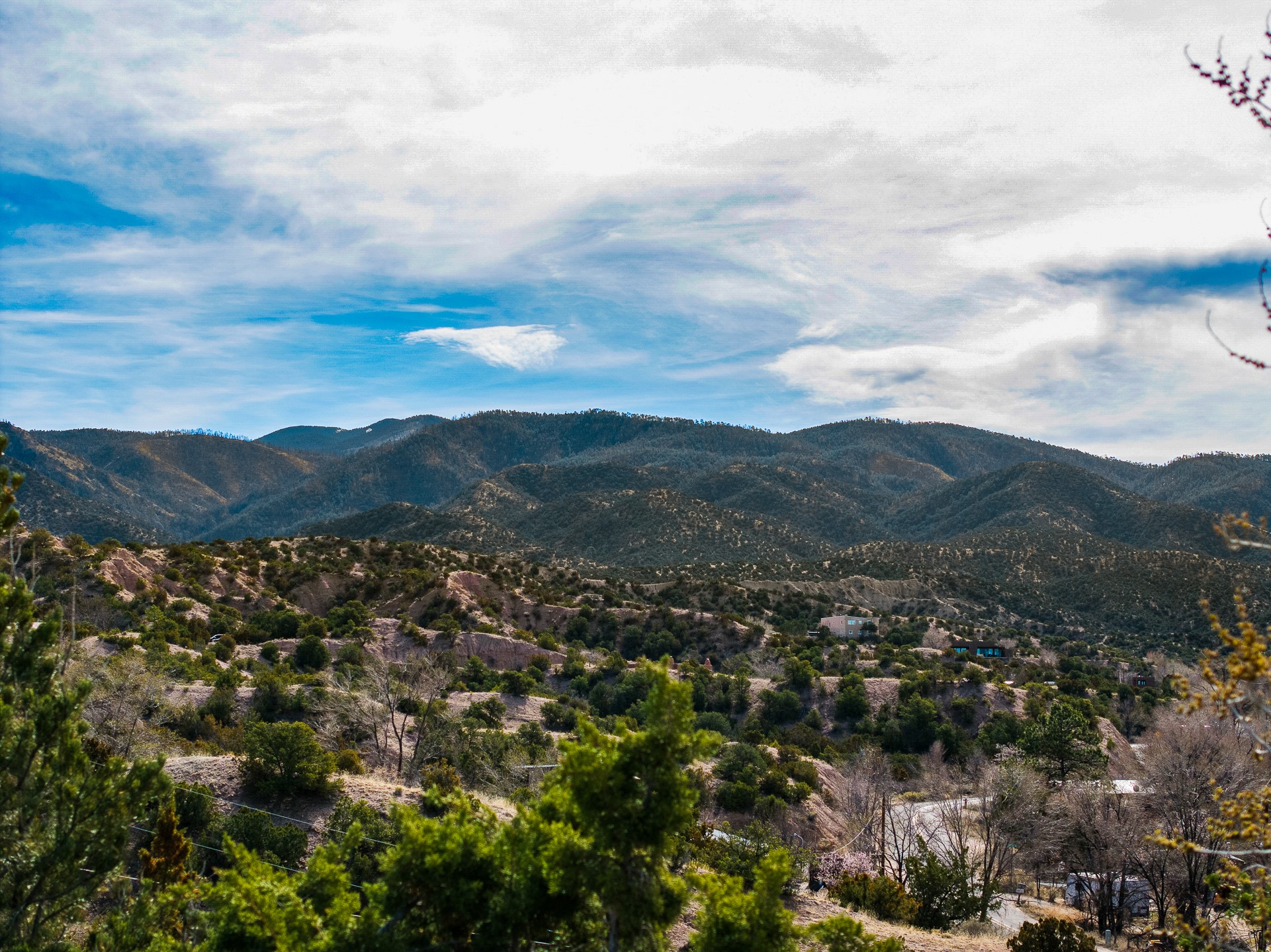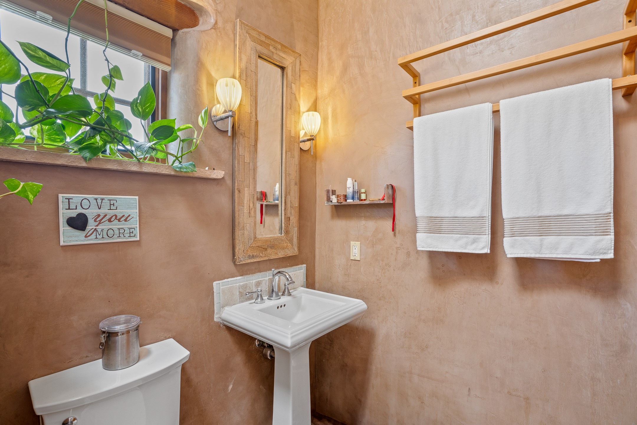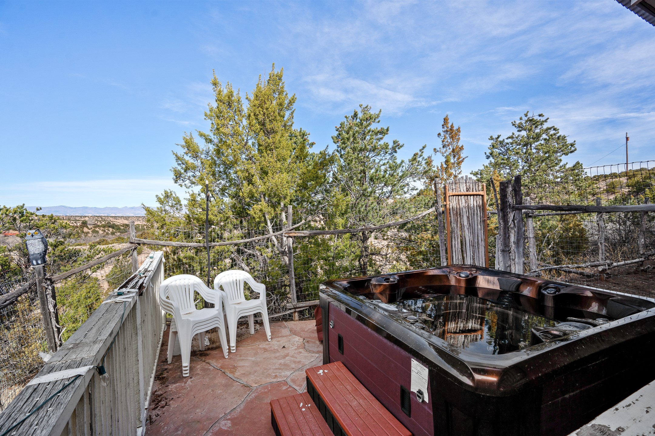 This sanctuary offers authentic Northern New Mexican lifestyle. The adobe main residence (1,500+ sq ft) features curved plaster walls, kiva fireplace, vaulted ceilings with vigas, and flagstone seals. This 3-bedroom, 2-bath, move-in-ready home showcases artisanal craftsmanship, priced to sell. The primary suite includes walk-in closet and spa-like bathroom with rock shower. Guest bath features a clawfoot tub. Recent upgrades include new appliances, tankless water heater, water filtration system, mini-splits, and solar. Close to Four Seasons and Tesuque Village Market, the property offers an office and loft. Adjoining lot available for sale, 6 Vista Del Cuervo.