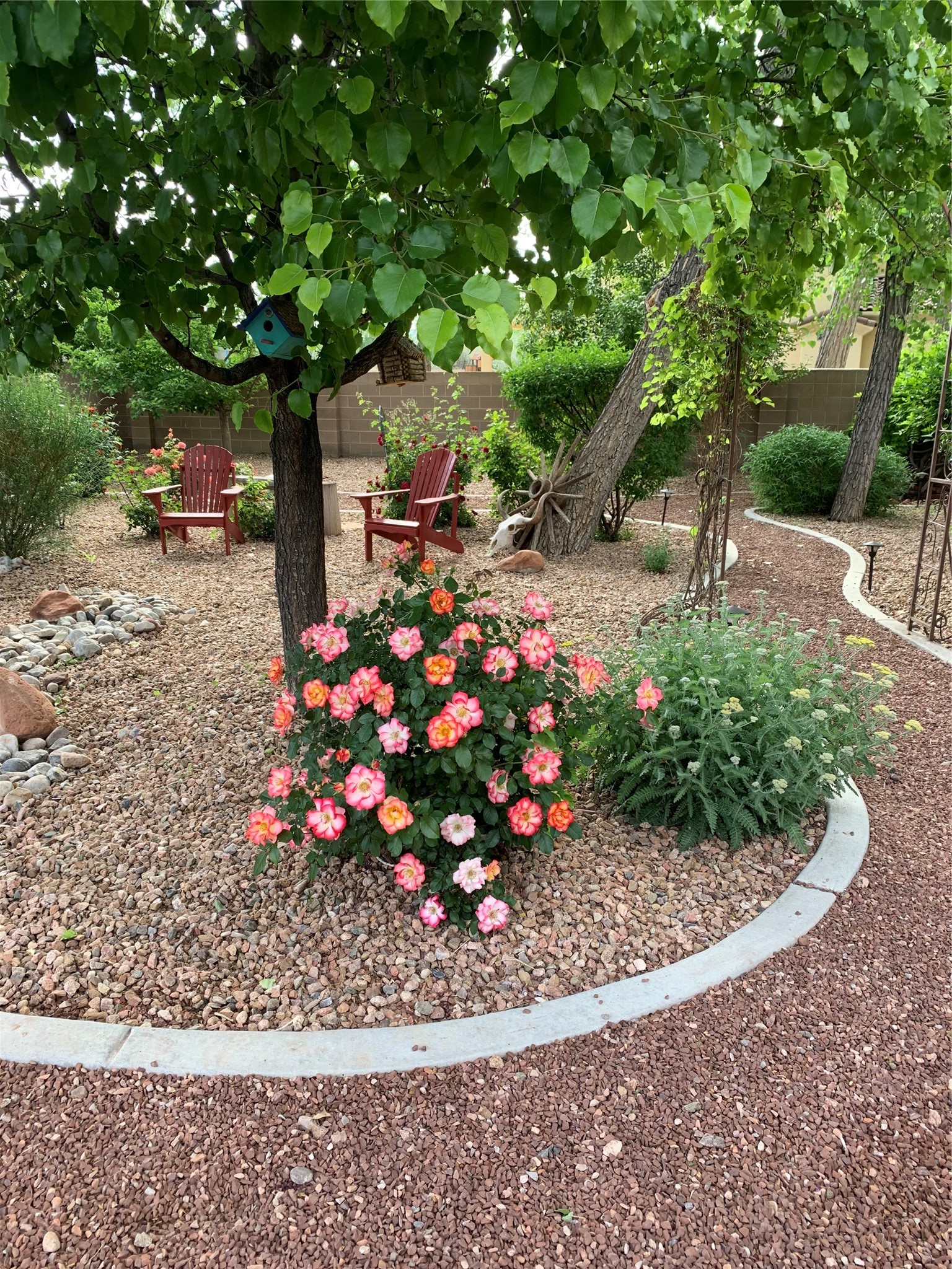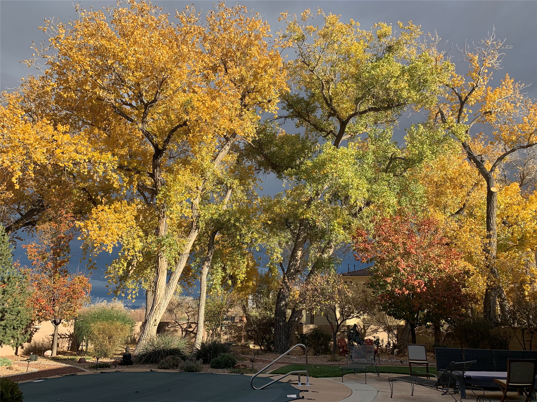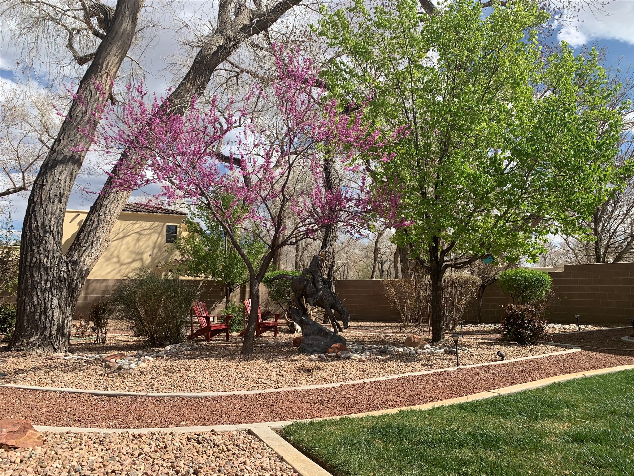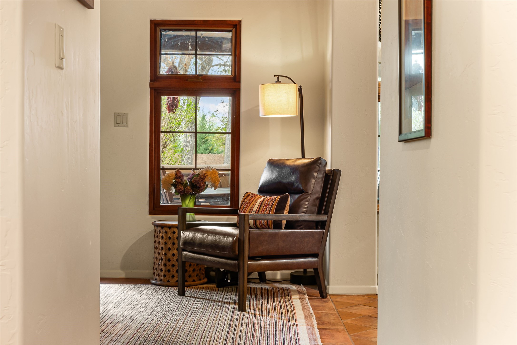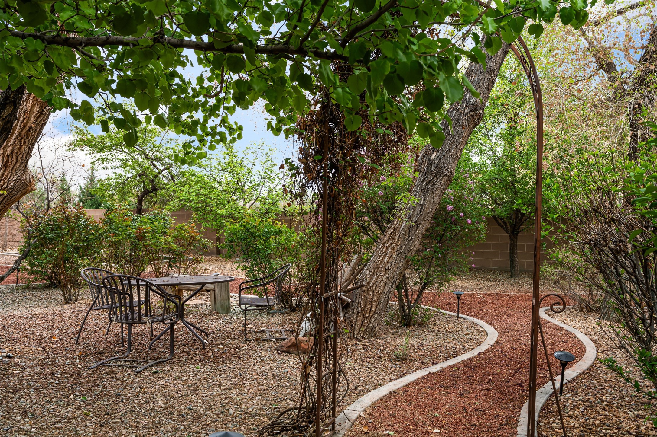 Unparalleled beauty and luxurious style exude not only from the picturesque backdrop of the Sandia Mountains, but also from this stunning custom home built in 2001 located in the gated Bosque Encantado community, a hidden gem near Bernalillo. The home sits on a little over 1 acre with a private irrigation well in place to accommodate the sumptuous landscaping. A heated pool is a focal point of the back yard with plenty of shade from mature trees and gardens, perfect for spring and summer outdoor entertaining. A covered patio, hot tub and outdoor kitchen complete the outdoor space. Inside, the large and open feel of the living and dining areas is dramatically defined by high ceilings with vigas, latillas and accented by lovely kiva fireplaces in the living room and kitchen. The well-appointed chef's kitchen has high-end stainless steel appliances, warm lighting and granite countertops in place. The primary suite is separated from the two secondary bedrooms to ensure privacy. The primary en-suite has a spa-like feel with a large wood-burning fireplace in the bedroom, a soaking tub, spiral shower and walk-in closet with custom cabinets nearby. There is a work out area, in addition to two separate offices, one with a Murphy bed adding versatility for overnight guests. The property itself also has a two-car garage with an additional oversized RV bay with nearby hookup for sewer, water and electricity (30 amp inside and outside). The home has been impeccably maintained with newer mechanicals in place. The location is convenient for those looking for access to nearby shopping, but with exceptional trail access to the nearby Rio Grande Bosque.