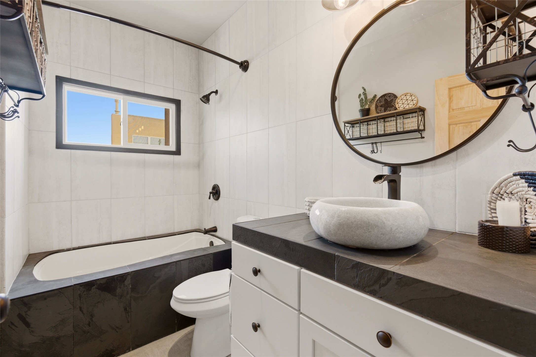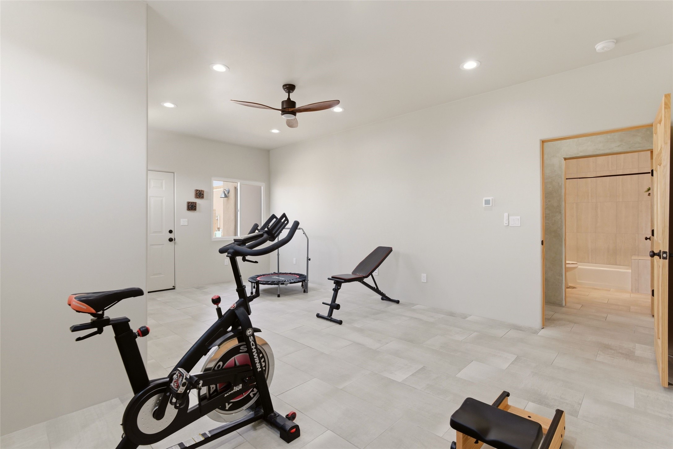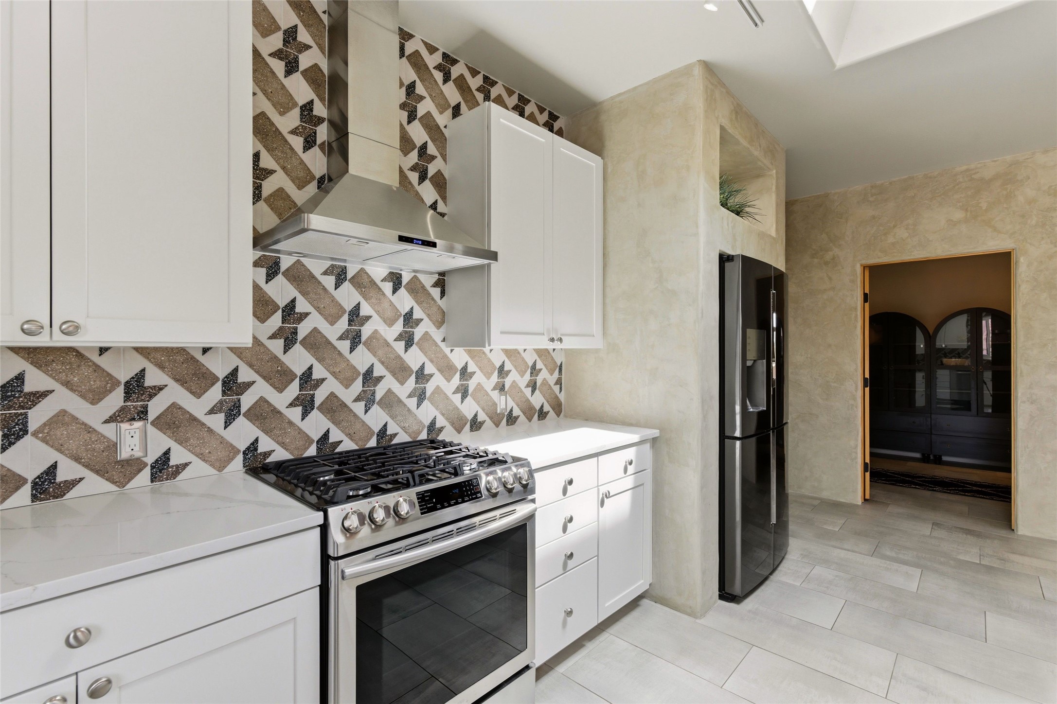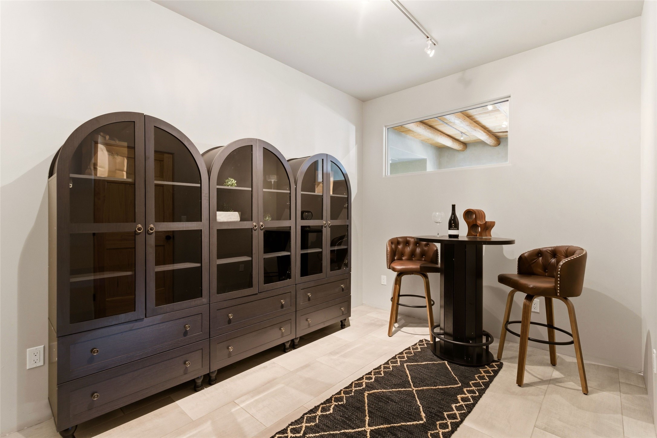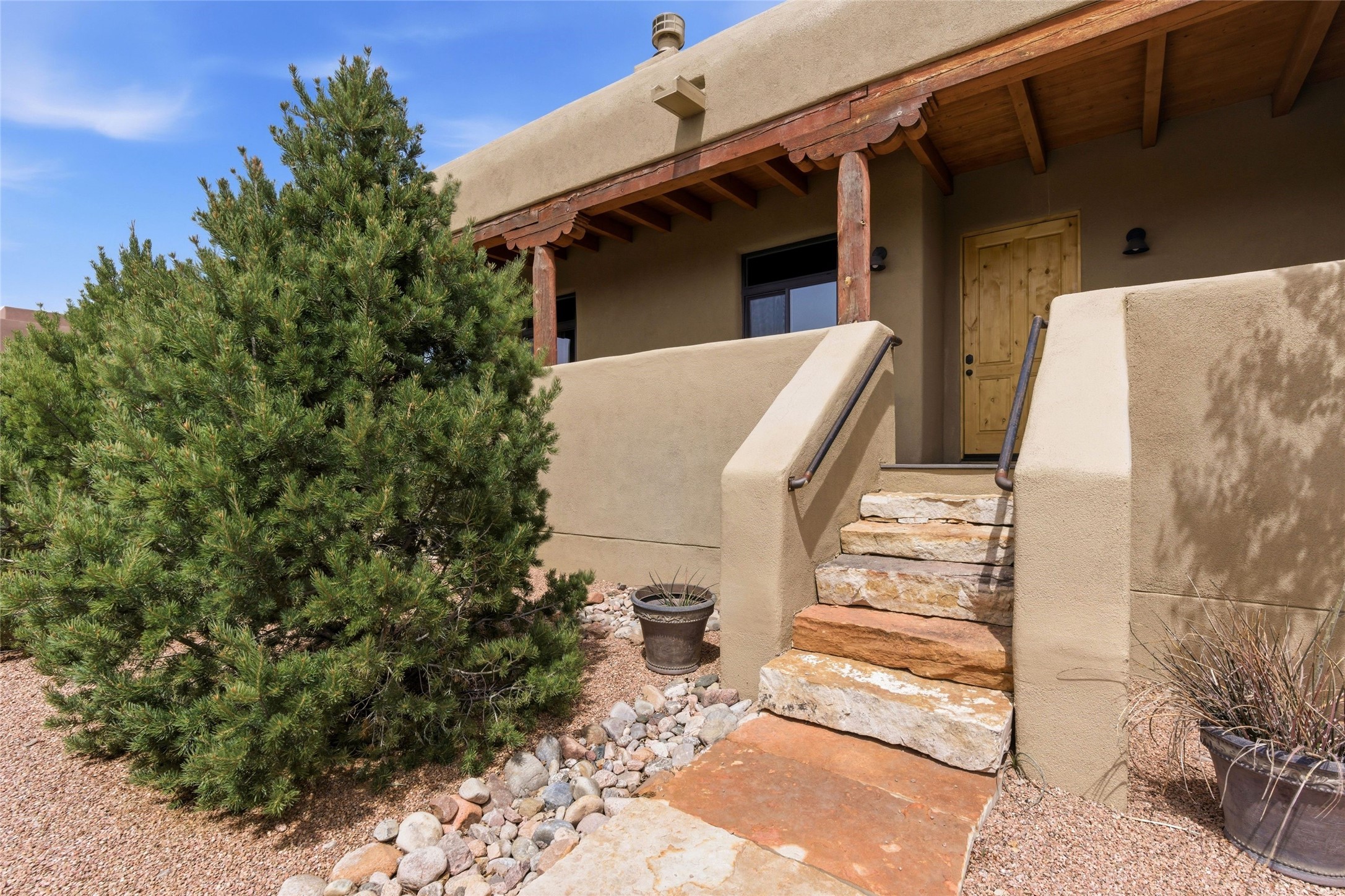 Sophistication meets Santa Fe charm at 32 Calle Lemita, an elegant residence in the coveted Aldea de Santa Fe community. This 3-bed, 3-bath home offers refined living on a 0.16-acre lot with stunning natural light and partial sunset views. The open, airy floor plan highlights soaring ceilings, rich finishes, and seamless flow between living, dining, and kitchen--perfect for stylish entertaining. The expansive living room offers a stacked stone fireplace, high ceilings and traditional Vigas. Plaster walls throughout the main living area. The chef's kitchen boasts premium cabinetry with soft close drawers, generous counter space with quartz countertops, designer tile backsplash and high-end stainless steel appliances. Massive pantry/storage room off the kitchen. The luxurious primary suite offers a spa-inspired bath, one of the most custom walk-in closets you will ever view, plus separate shower and jacuzzi tub. Two additional oversized bedrooms provide versatility for guests or a home office. Laundry room with sink and built-in cabinetry. Whole house radiant cooling/heating system. Adjacent to the heated/cooled 4 car garage is a flex room, perfect for a home gym or studio space. Outdoor living shines with a private enclosed courtyard and elevated patio designed to capture Santa Fe's dramatic sunsets. Lots of wonderful upgrades, such as LED recessed lights, floor to ceiling tile in multiple bathrooms, carved stone sinks and much more. Located approximately 20 minutes from the historic Santa Fe plaza, Aldea de Santa Fe offers exclusive amenities including walking trails, pickleball/tennis/basketball, community gathering spaces, and easy access to fine dining, galleries, and world-class cultural events. This property is ideal as a sophisticated full-time residence or lock-and-leave retreat for discerning buyers seeking style, privacy, and connection to Santa Fe's vibrant lifestyle.
