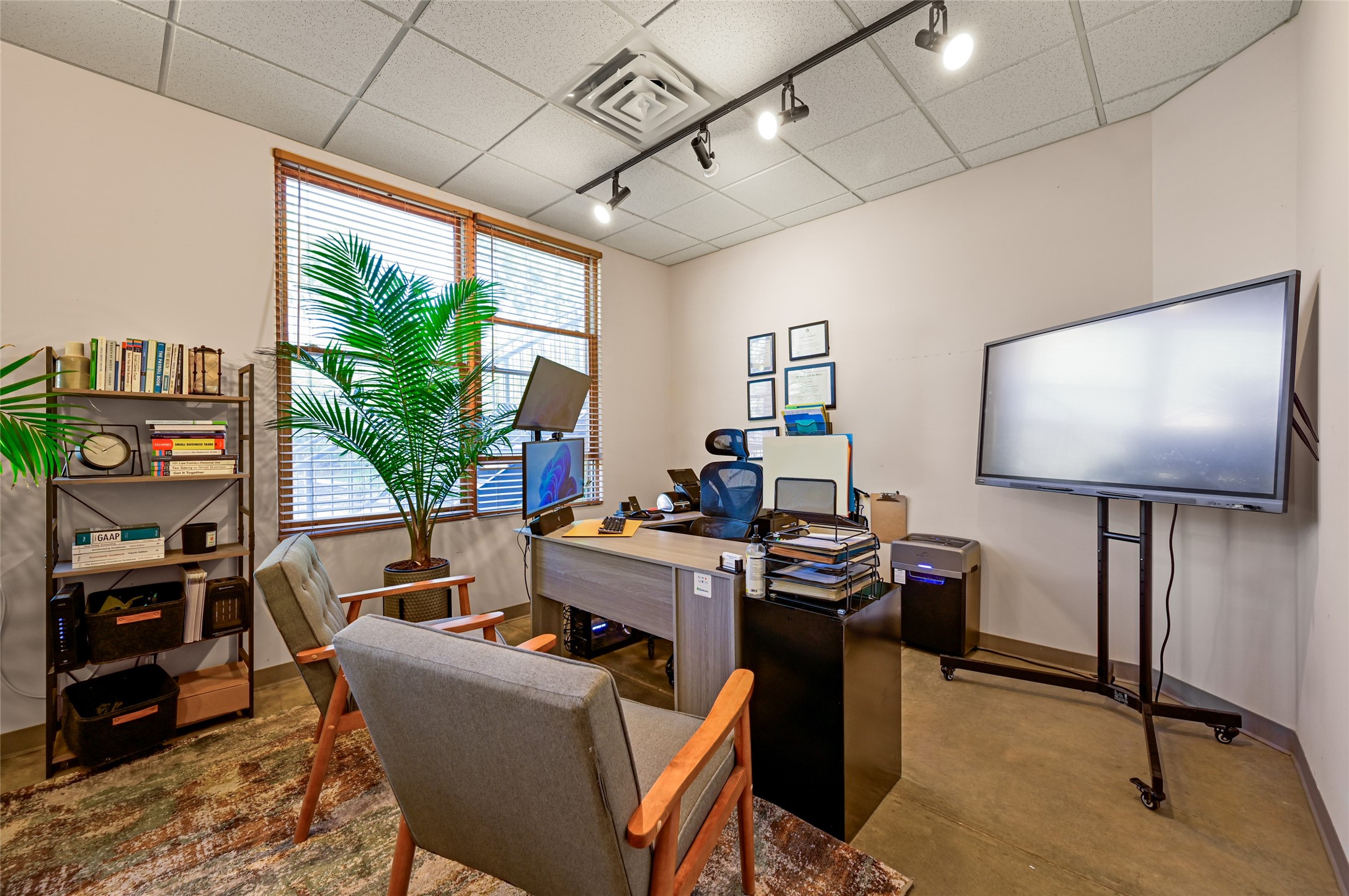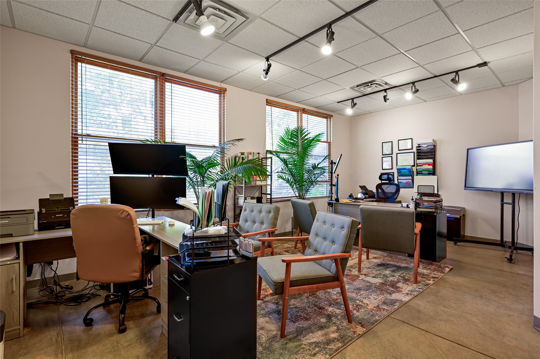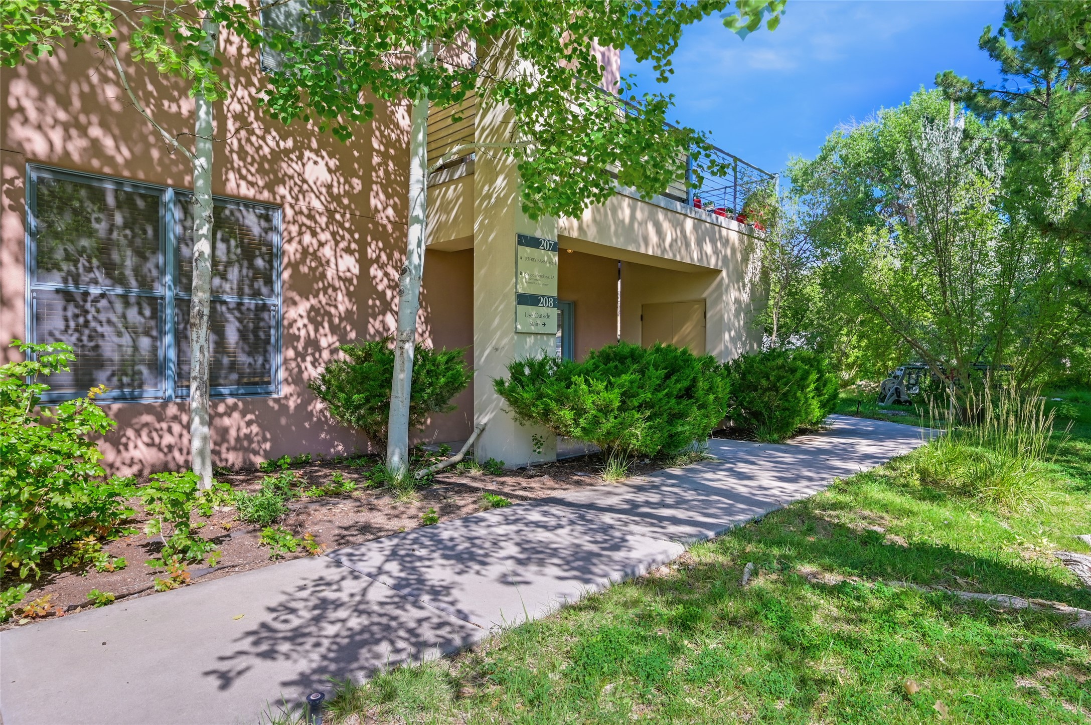 Discover a rare opportunity to own a commercial condo in the highly sought-after Cerrillos Road Lofts--a distinctive live/work community nestled in a private compound with mature trees and lush green space. Currently configured as professional office space, this unit is positioned at the back of the compound, offering both privacy and ample parking. Inside, you'll find three individual offices, each tenant occupied and thoughtfully designed for productivity. The unit enjoys shared access to a welcoming common lobby, a spacious ADA-accessible kitchen, and a ADA-accessible bathroom. Unit C offers the flexibility of a separate, private entrance. Large windows fill each office with natural light, while the creative energy of neighboring artists and professionals enhances the unique character of this vibrant community. Rents and tenant details available upon request. Showings require 24-hour notice.